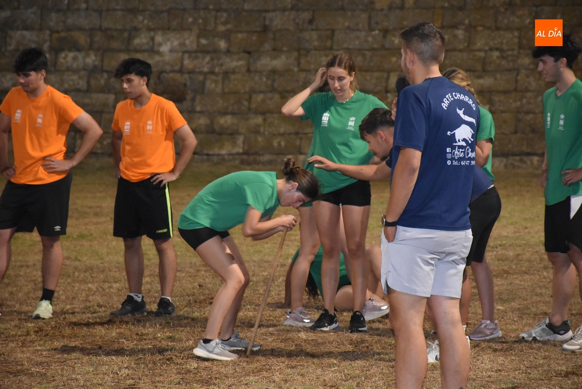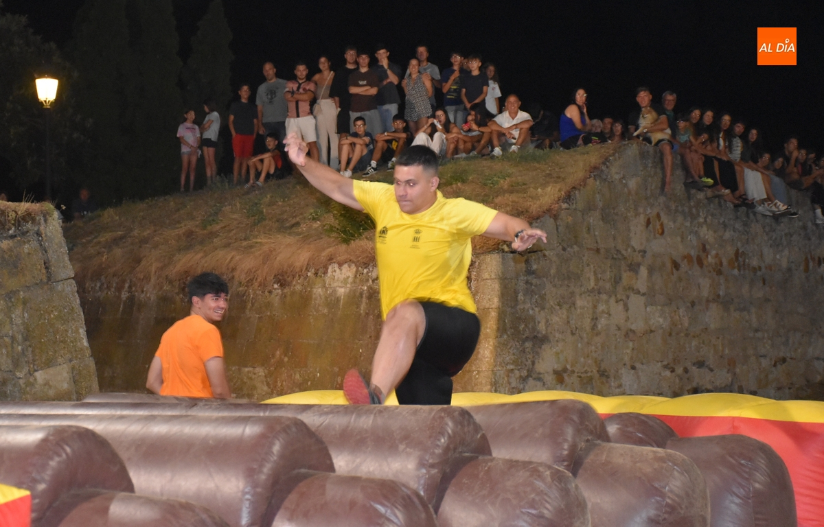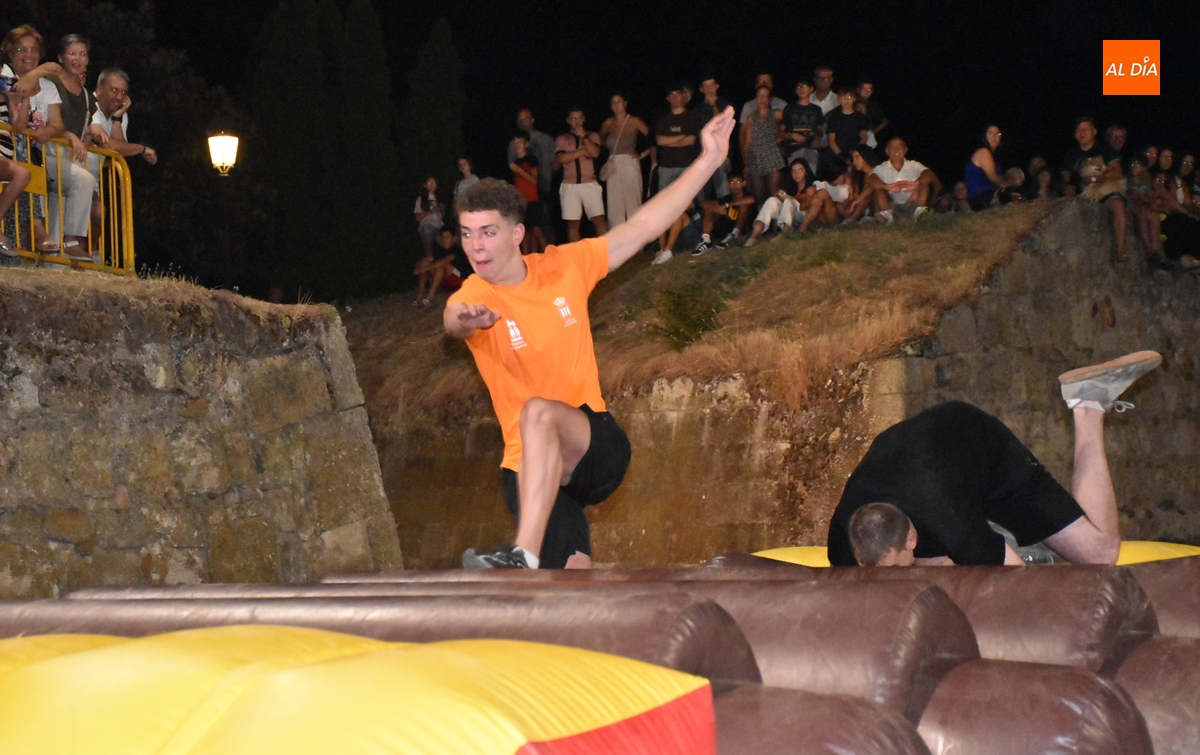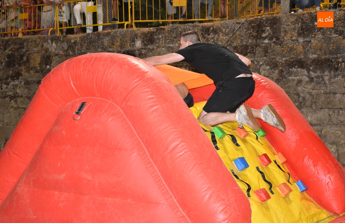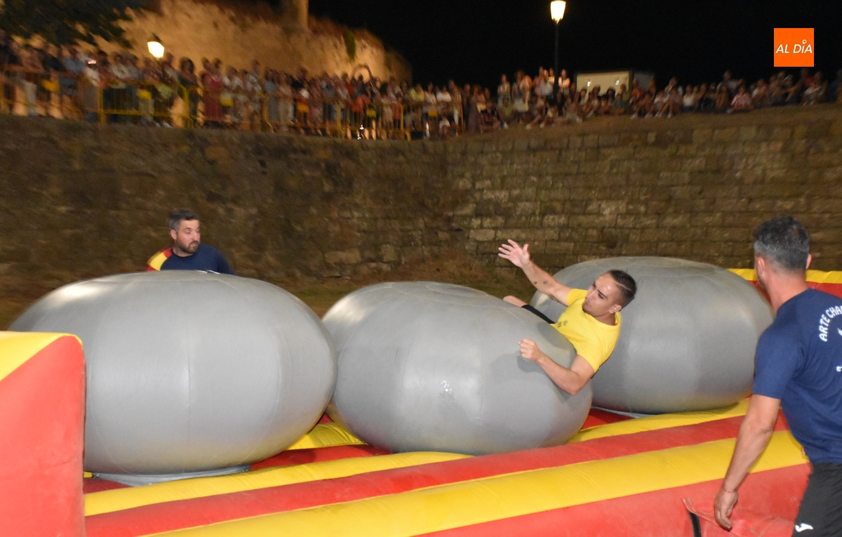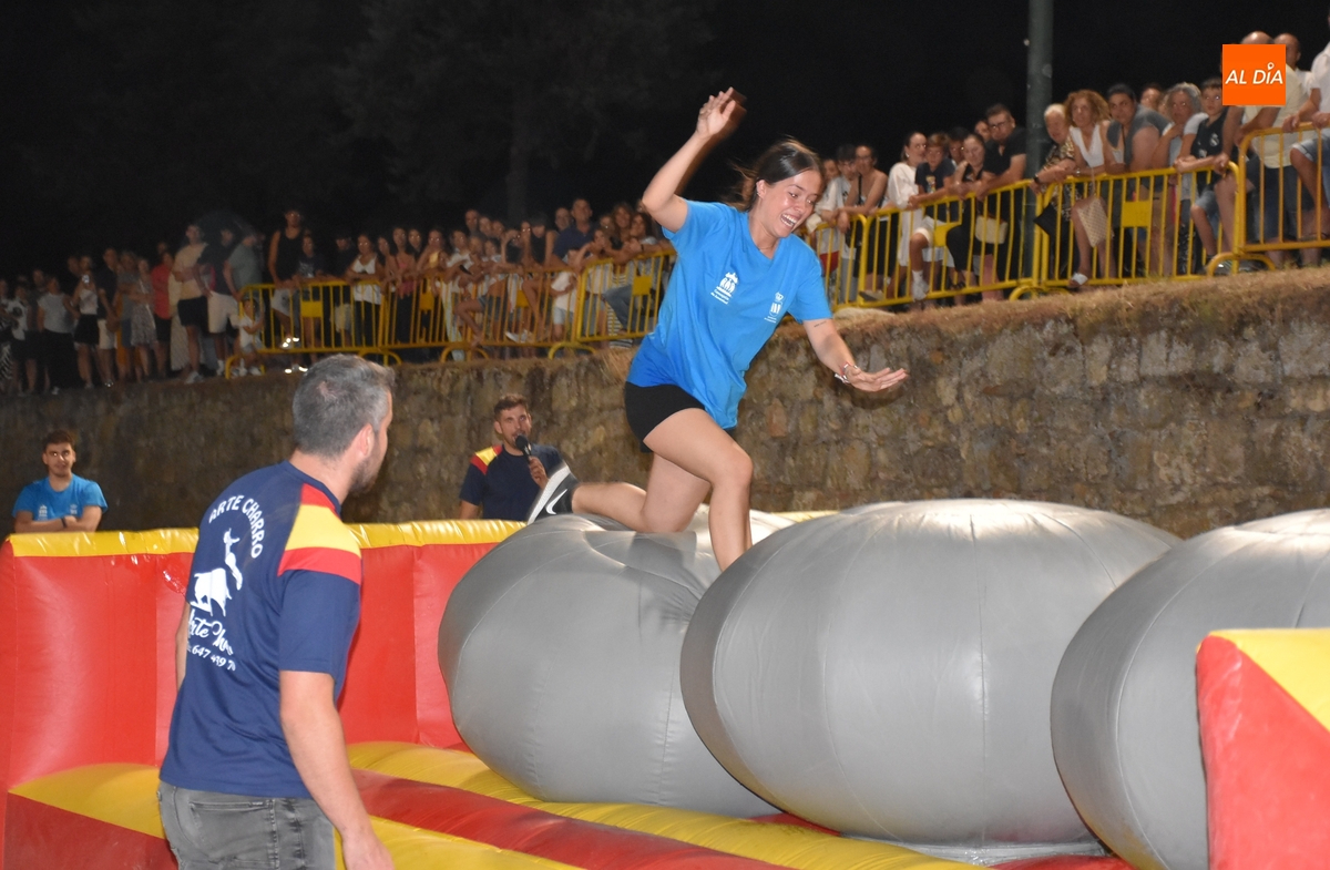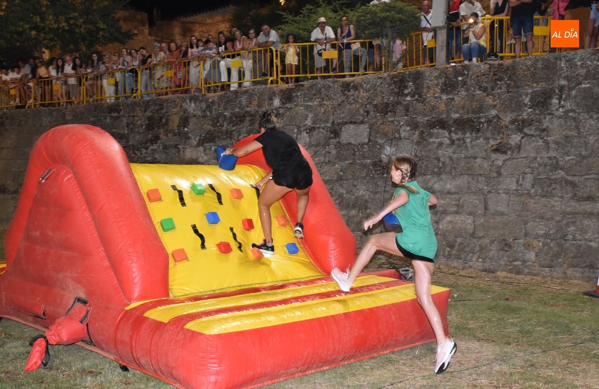 Tras unas palabras de bienvenida de la delegada de Juventud, Ana María Castaño, los equipos hicieron su entrada en el foso desde la Rúa del Sol mientras sonaba la intro de presentación, enfrentándose rápidamente al primer juego, compuesto por tres hinchables que tenían que superar manteniendo la mayor cantidad de agua posible en unos cubos. Tras ello hubo otros dos juegos con hinchables, y otro en el que a ciegas intentaron explotar unos globos colgados de un arco.