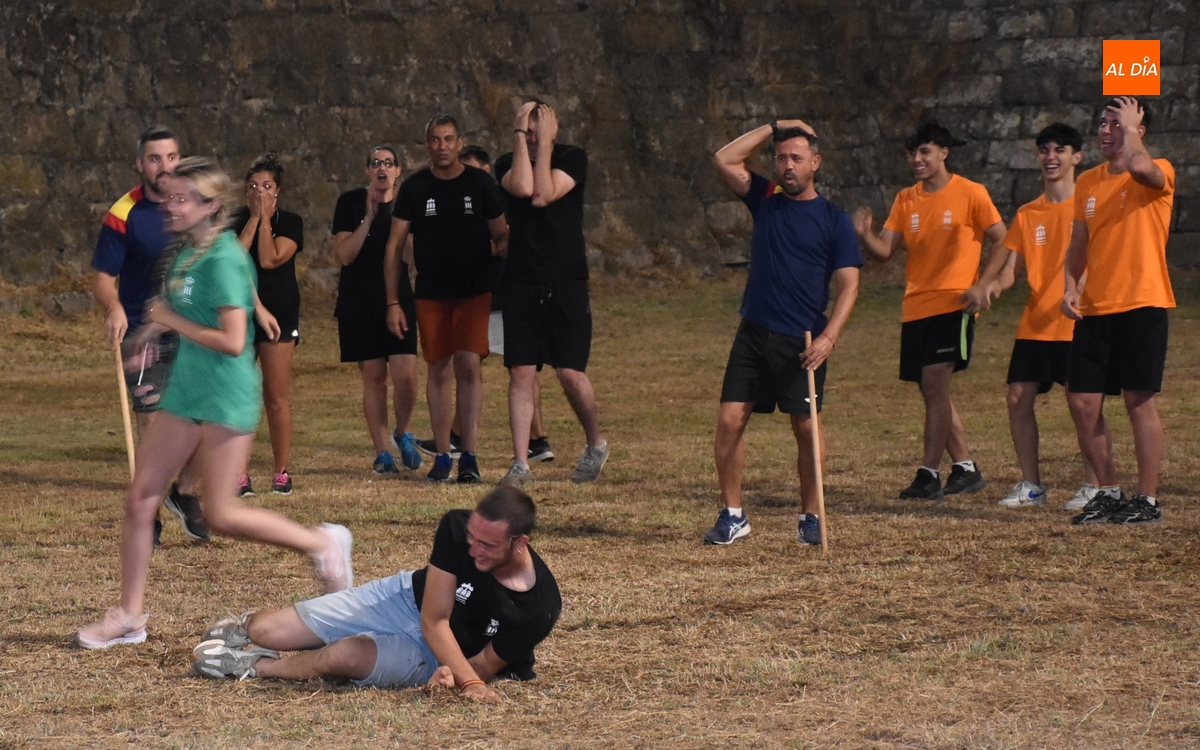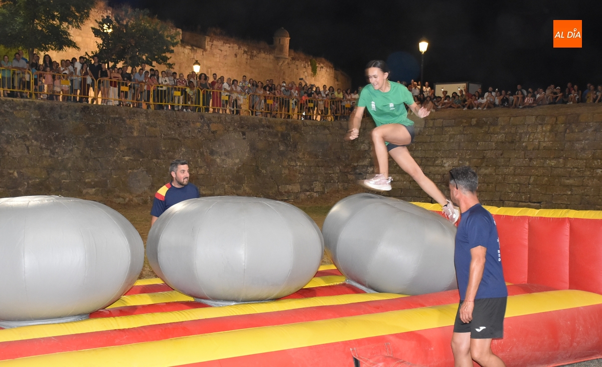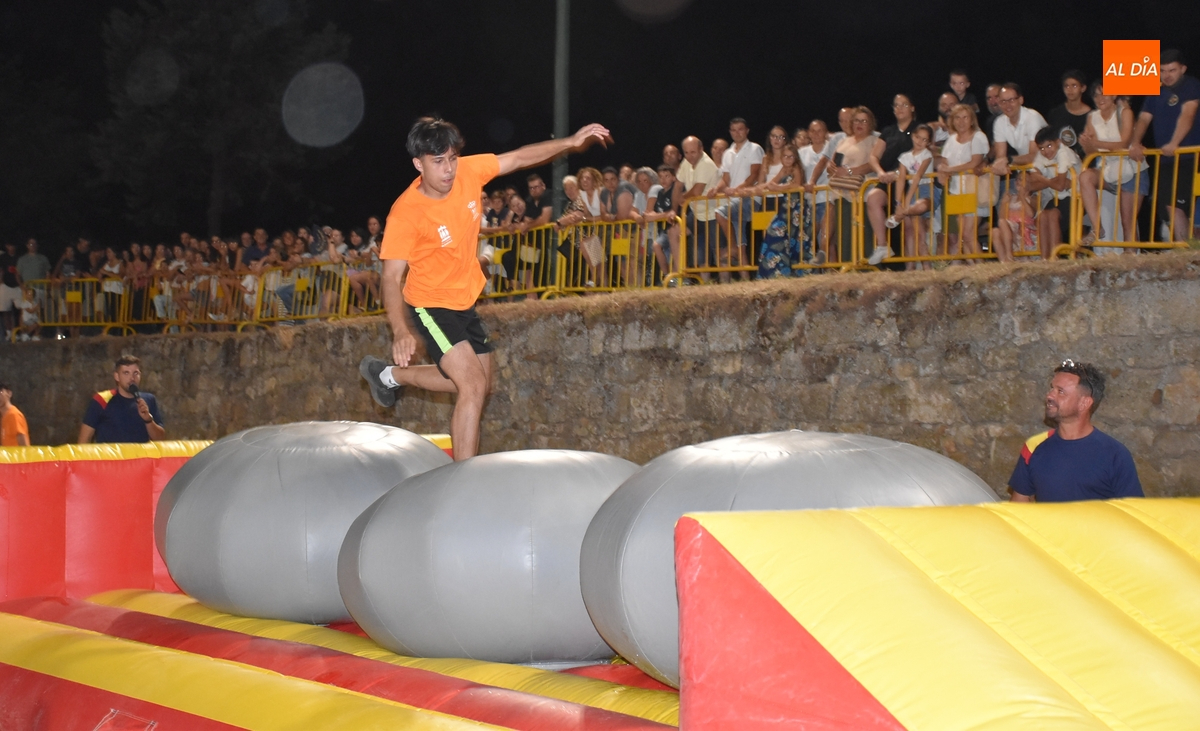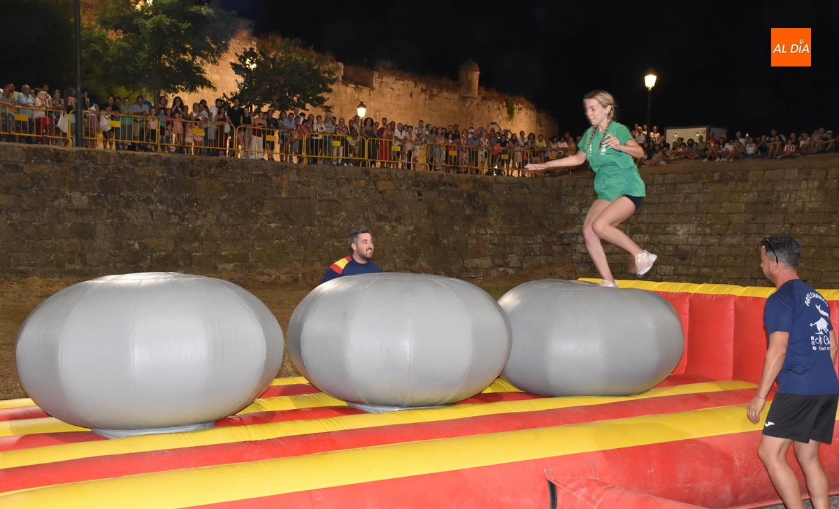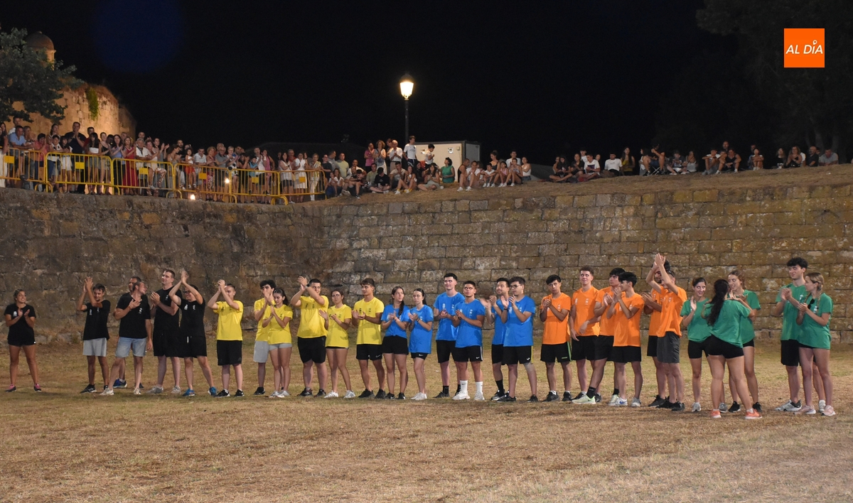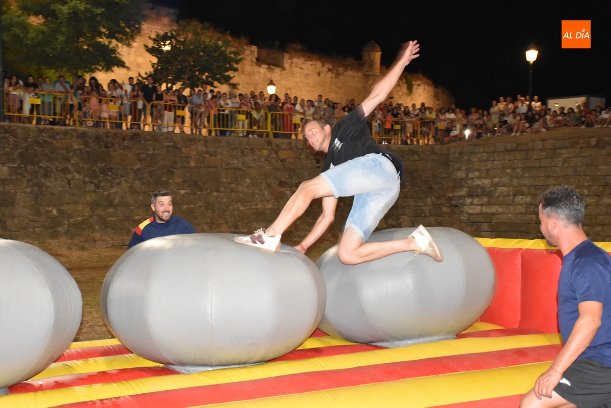 Tras unas palabras de bienvenida de la delegada de Juventud, Ana María Castaño, los equipos hicieron su entrada en el foso desde la Rúa del Sol mientras sonaba la intro de presentación, enfrentándose rápidamente al primer juego, compuesto por tres hinchables que tenían que superar manteniendo la mayor cantidad de agua posible en unos cubos. Tras ello hubo otros dos juegos con hinchables, y otro en el que a ciegas intentaron explotar unos globos colgados de un arco.