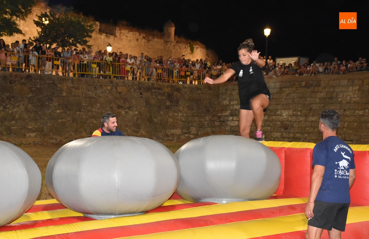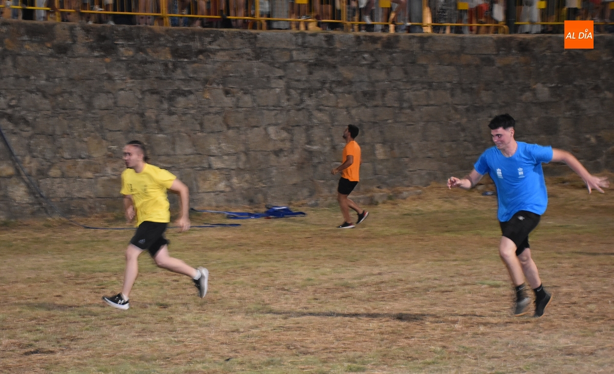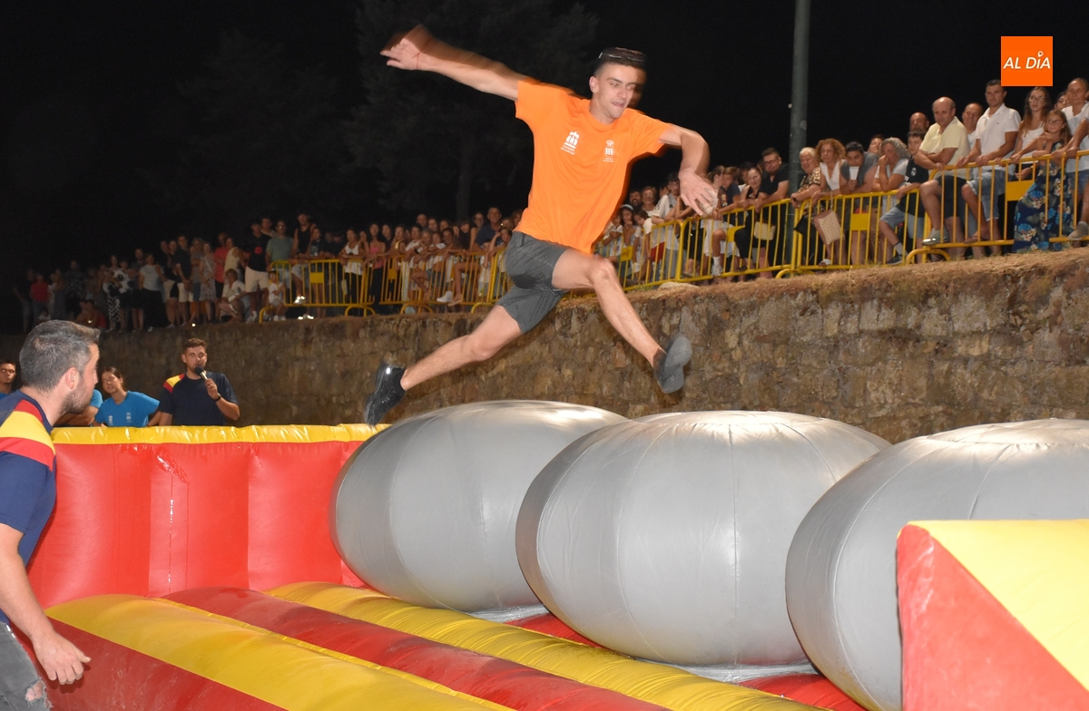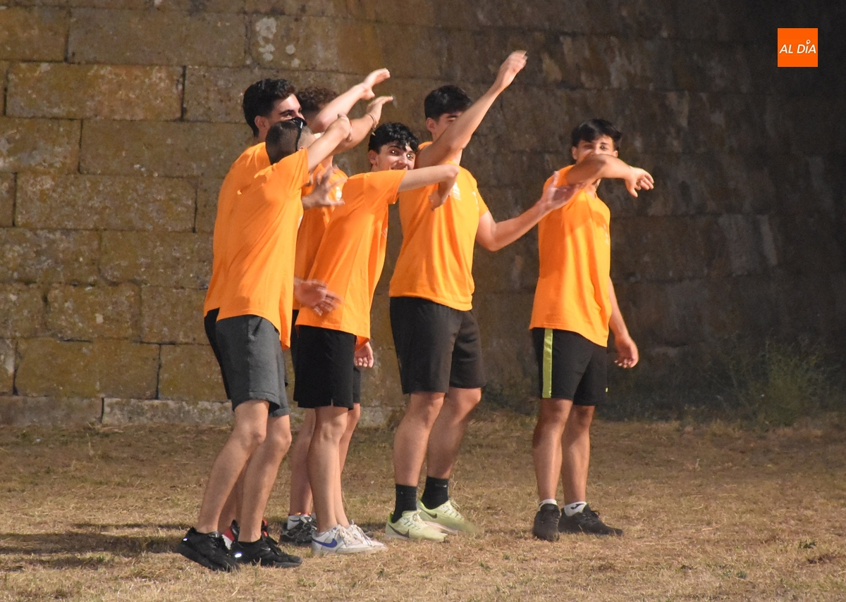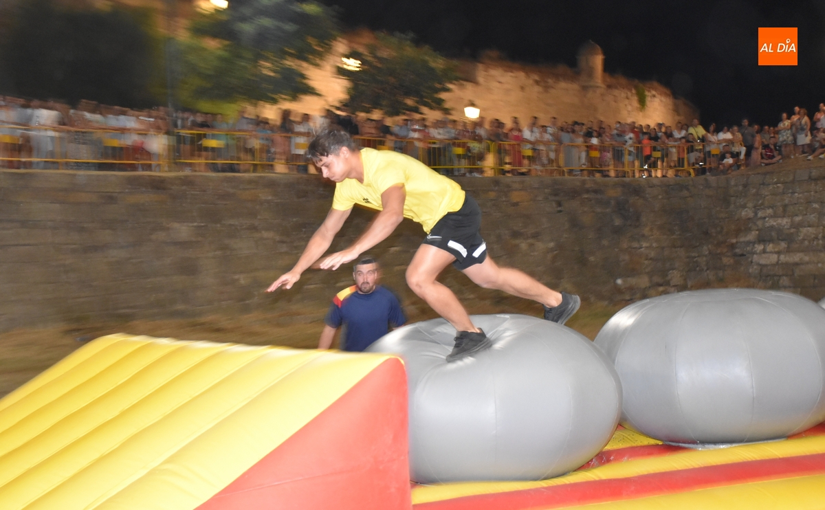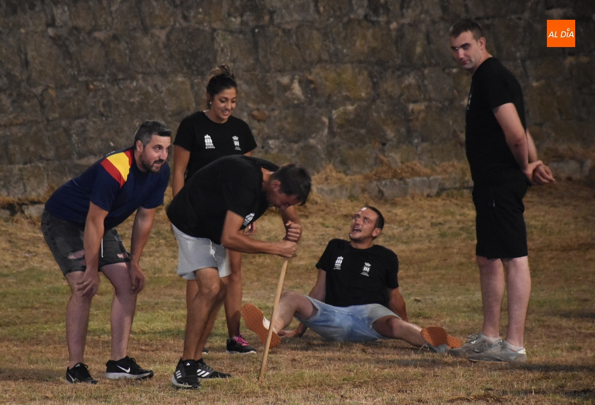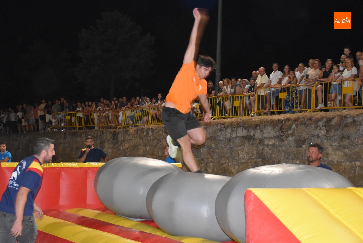 Tras unas palabras de bienvenida de la delegada de Juventud, Ana María Castaño, los equipos hicieron su entrada en el foso desde la Rúa del Sol mientras sonaba la intro de presentación, enfrentándose rápidamente al primer juego, compuesto por tres hinchables que tenían que superar manteniendo la mayor cantidad de agua posible en unos cubos. Tras ello hubo otros dos juegos con hinchables, y otro en el que a ciegas intentaron explotar unos globos colgados de un arco.