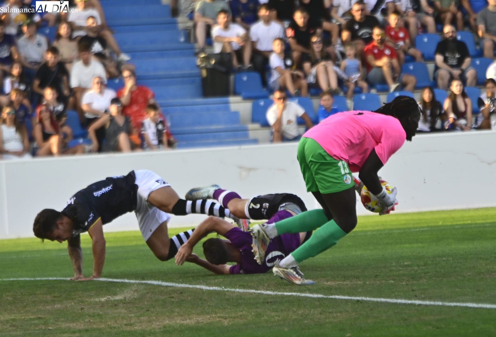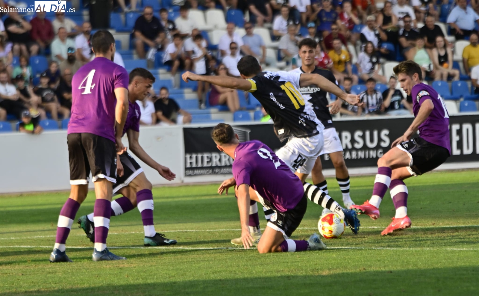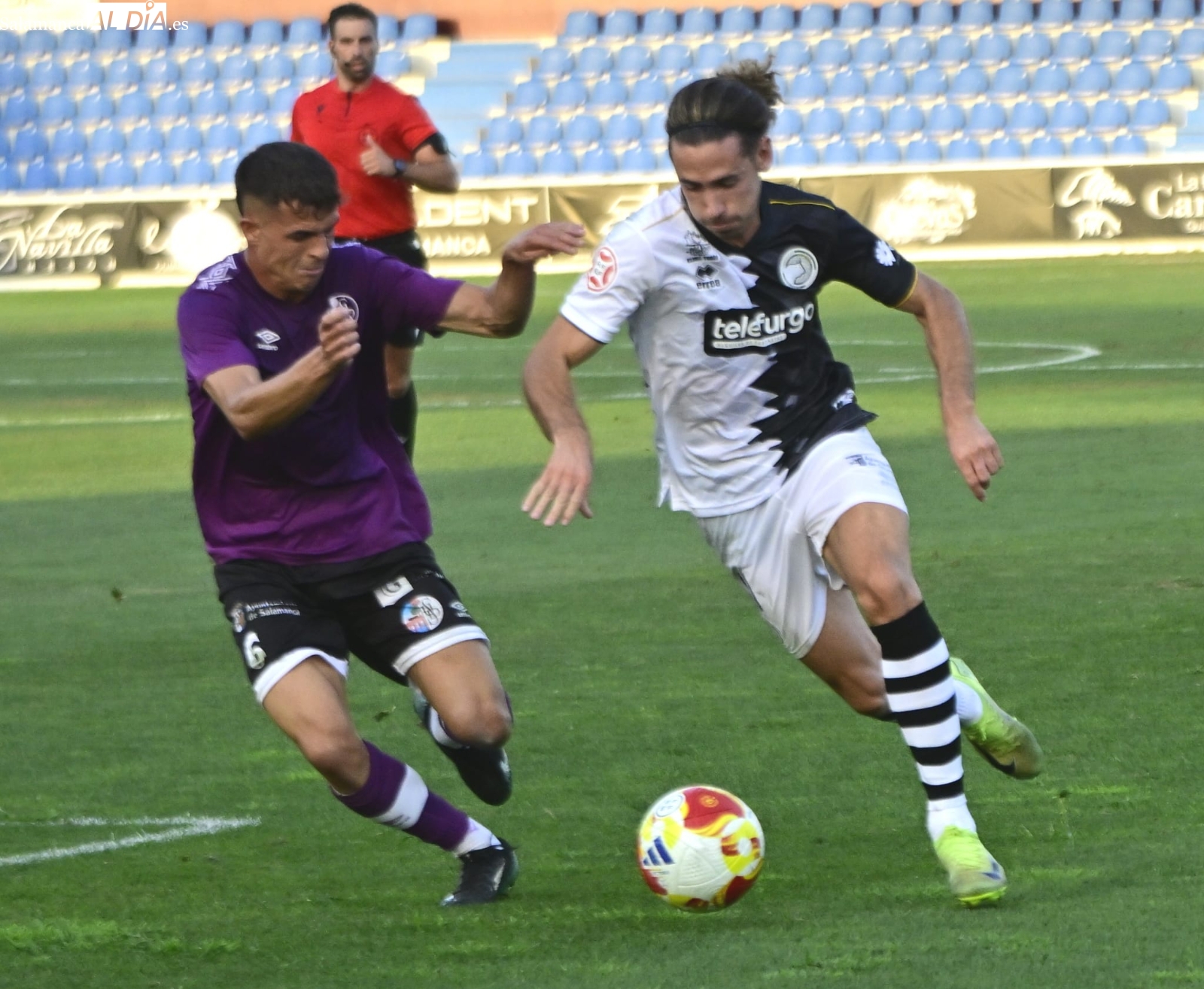 A partir de ahí, dominio del Salamanca UDS con alguna ocasión para Aimar y Mancebo, pero ninguna de ellas ha logrado batir el marco blanquinegro y el duelo ha llegado al descanso con ventaja para los de Oriol Riera, que se ha llevado el susto de una luxación de hombro de Piñán y ha debido ser trasladado al Hospital.