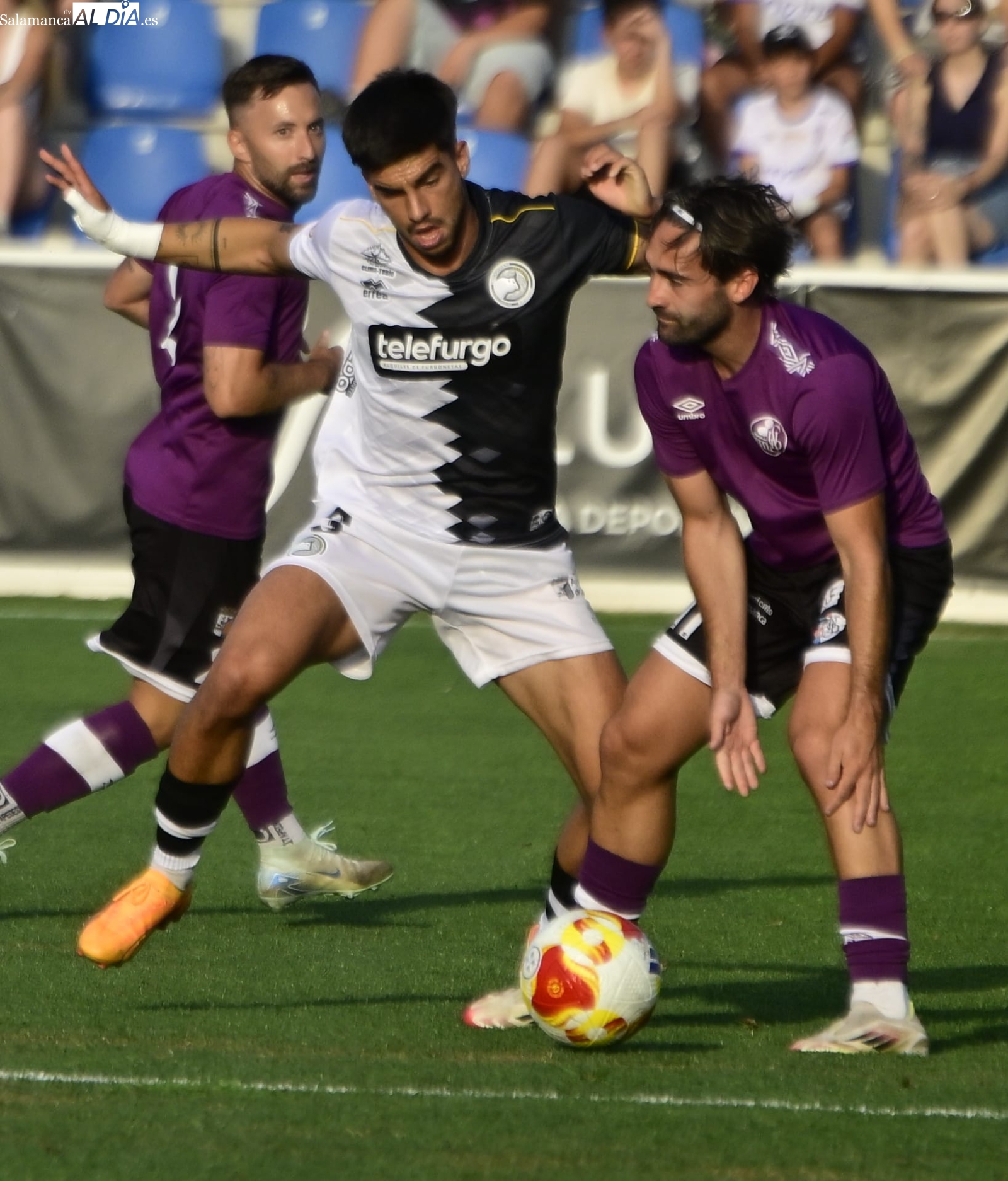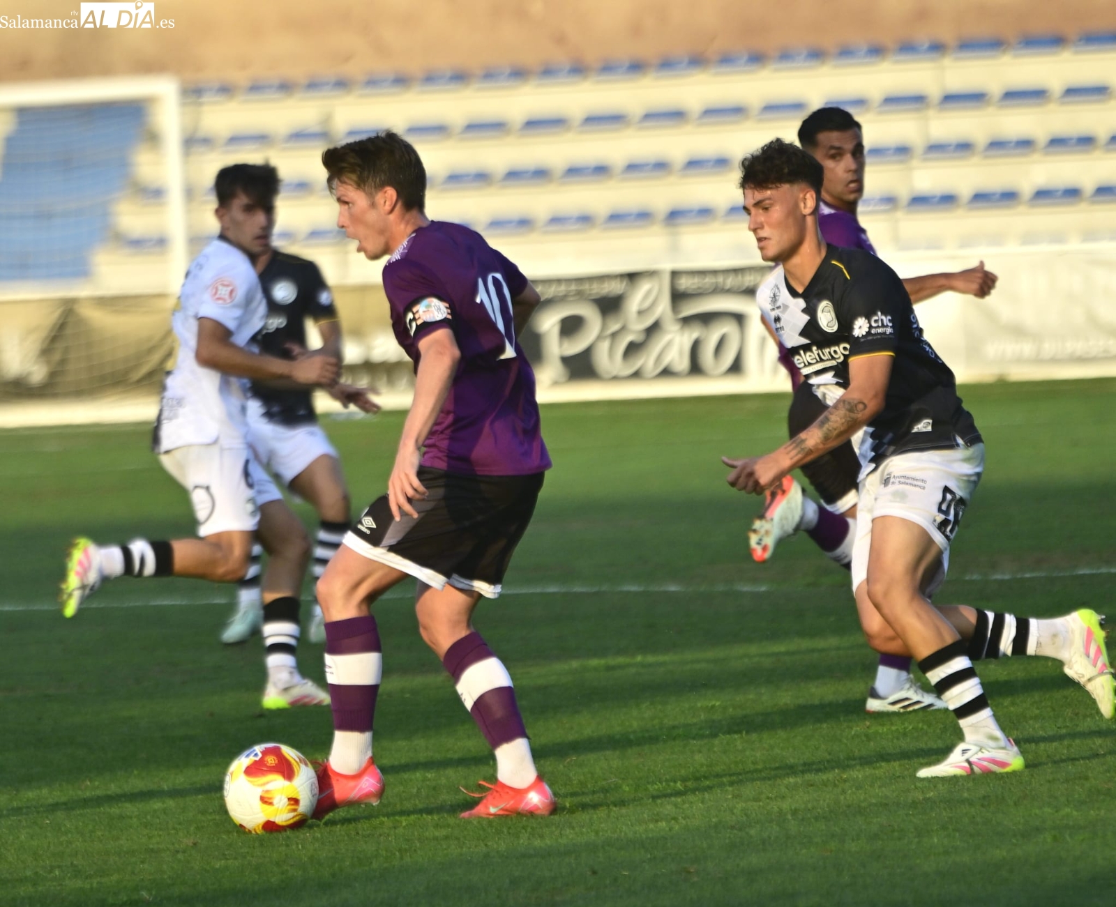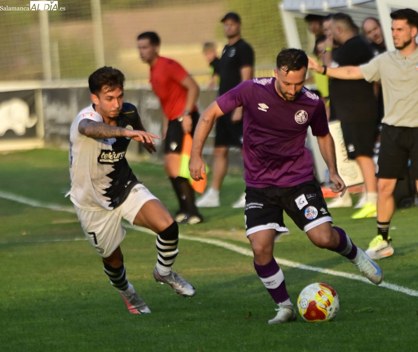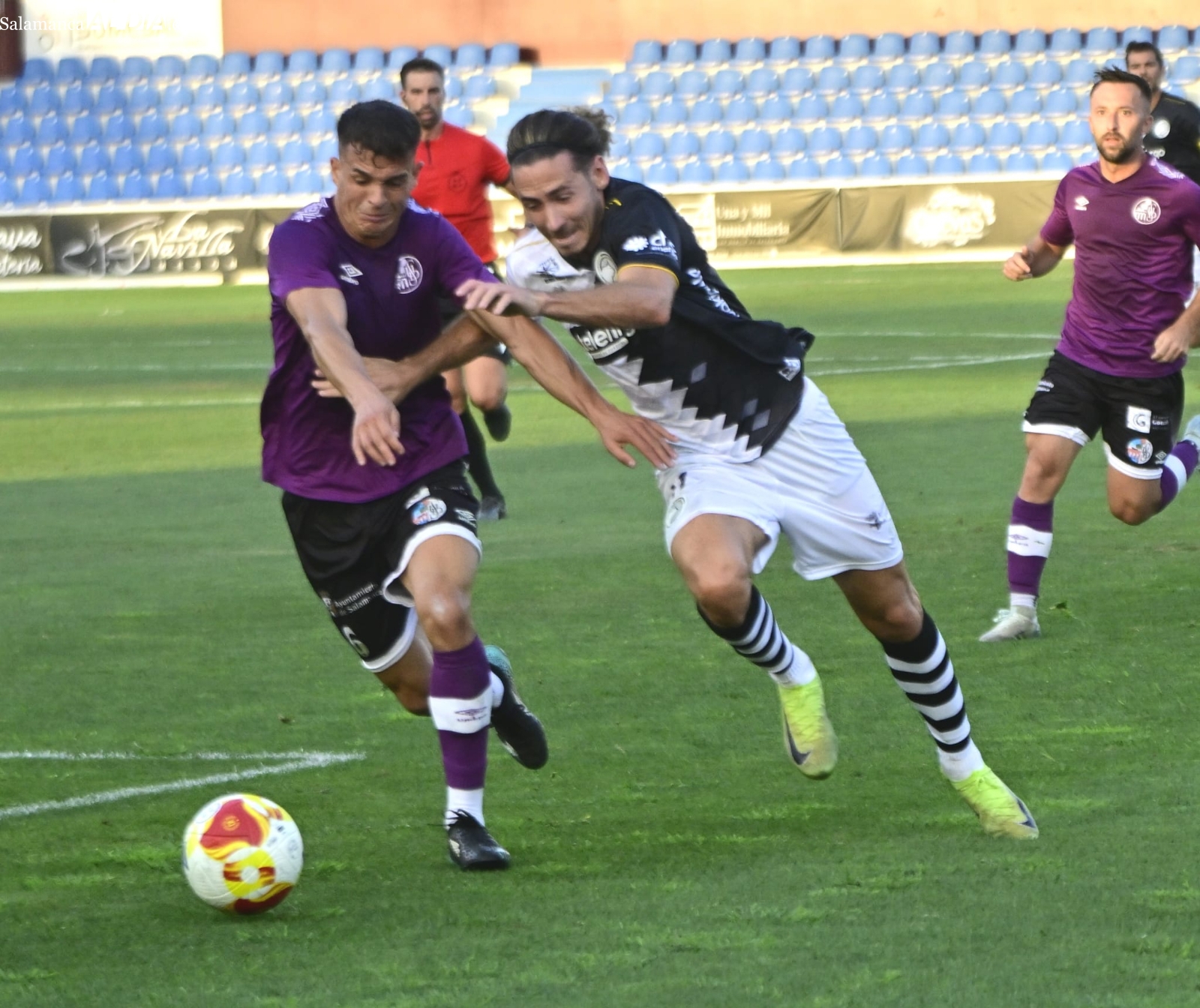 A partir de ahí, dominio del Salamanca UDS con alguna ocasión para Aimar y Mancebo, pero ninguna de ellas ha logrado batir el marco blanquinegro y el duelo ha llegado al descanso con ventaja para los de Oriol Riera, que se ha llevado el susto de una luxación de hombro de Piñán y ha debido ser trasladado al Hospital.