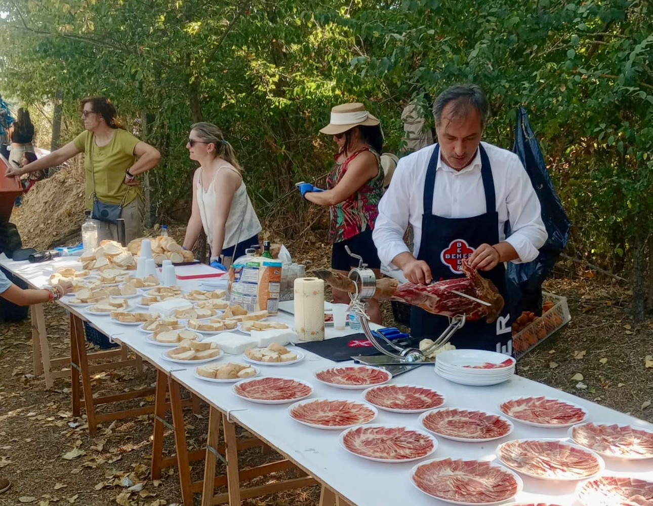 Al llegar al Calentejo esperaba una sorpresa a todos los asistentes, ya que el experto cortador de jamón Javier Pinto preparaba numerosos platos del embutido para disfrutar de un animado almuerzo entre todos los asistentes.