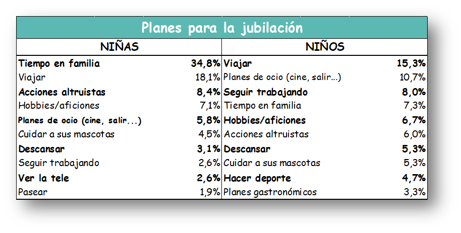 De cara a la jubilación, casi la mitad cree que podrá retirarse entre los 50 y los 69 años, aunque un 11% considera que no se jubilará nunca. Sus planes para entonces son claros: dedicar tiempo a la familia y viajar.