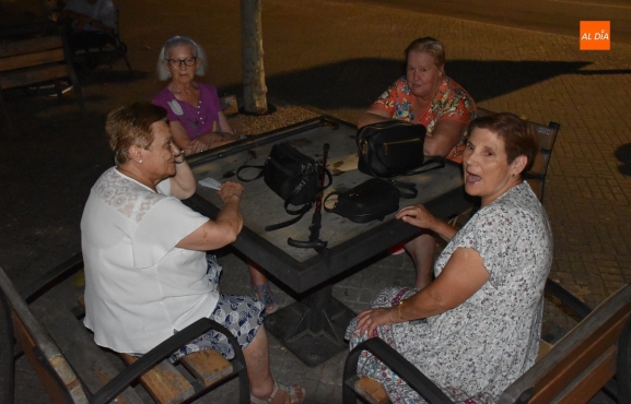 La jornada del domingo volvió a ser de nuevo muy calurosa en Ciudad Rodrigo, lo que hizo que un día más fuese muy esperado el momento del anochecer para a partir de ahí salir a la calle a dar una vuelta por el corazón de la ciudad. Dentro de estas veladas, están registrando una alta demanda el conjunto de mesas situadas junto a la Bibliocaseta (que están en una zona de total penumbra, con lo cual la temperatura es un poco inferior al no darles ninguna luz), pudiéndose encontrar en las mismas grupos de un variado rango de edades.