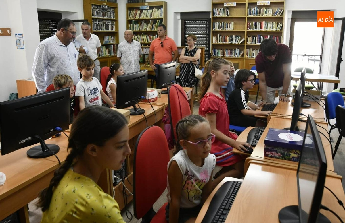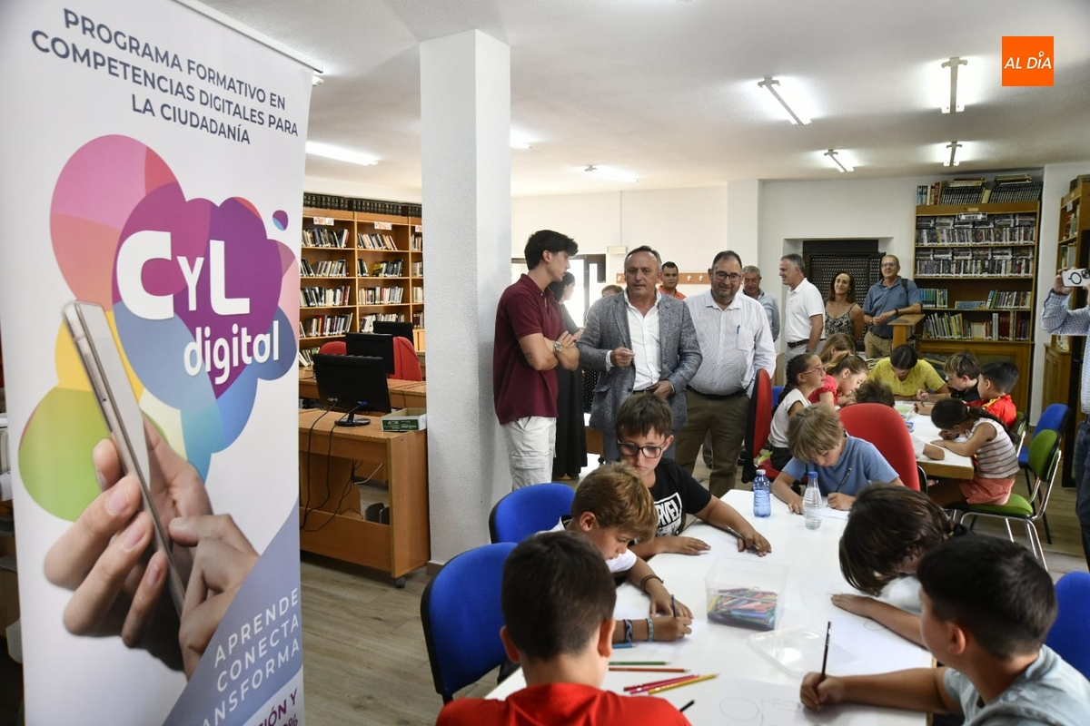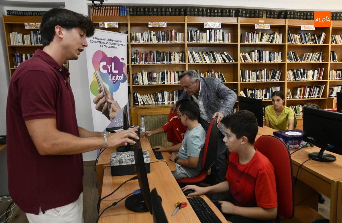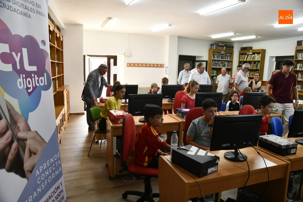 El viceconsejero de Transformación Digital de la Junta de Castilla y León, Luis Enrique Ortega, se desplazó en la mañana del martes hasta Sancti-Spíritus para visitar a los participantes en el taller de iniciación a la robótica que está impartiendo estos días en la localidad el formador Daniel Ratero en el marco del programa CyL Digital Rural de la Junta.