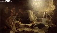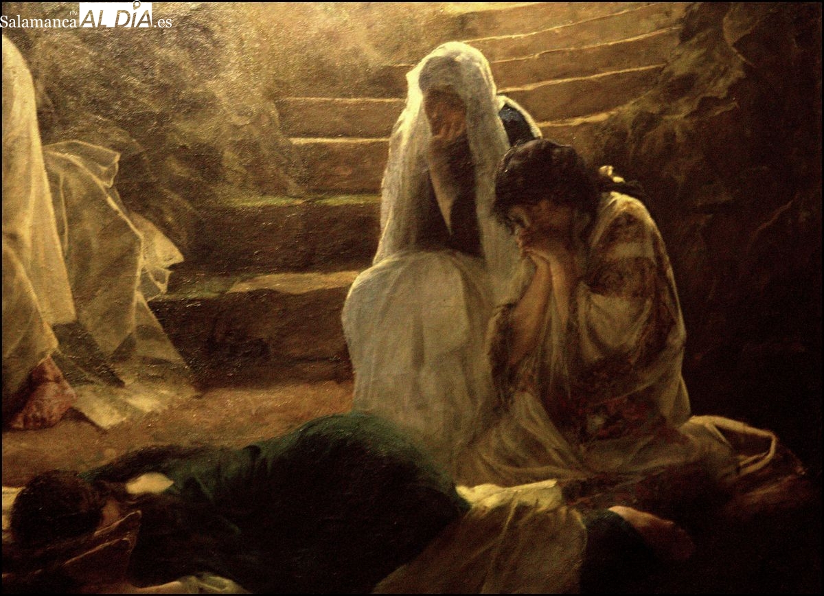 Frente a este sorprendente cuadro de grandes dimensiones, el espectador se siente sobrecogido por el tema, el momento en el que el cuerpo de Cristo se “deposita” en el sepulcro ante el dolor de sus compañeros y de las mujeres, un tema religioso que se les pedía a los alumnos de la Real Academia de España en Roma, donde el artista de Vitigudino estaba becado. Espacio para todos los pintores que buscaban mejorar su aprendizaje y presentarse a las Muestras Nacionales, la Academia de Roma estaba marcada por una enseñanza academicista, por el influjo de la antigüedad clásica y las obras religiosas del Vaticano y por la influencia de otro gran becado, el artista catalán Mariano Fortuny.