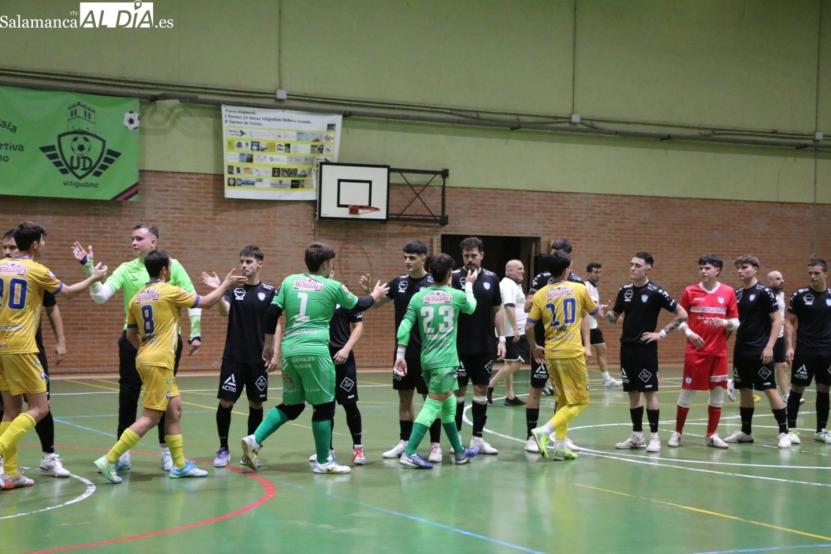 Antes del inicio del encuentro, el alcalde de Vitigudino, Javier Muñiz, le hacía entrega a Alberto Calleja de una placa por su “colaboración con el deporte de Vitigudino y ser un referente en las nuevas generaciones de deportistas”, un momento que llegaba con un bonito pasillo formado por los jugadores y árbitros de la contienda y con un caluroso aplauso del público que asistía al evento.