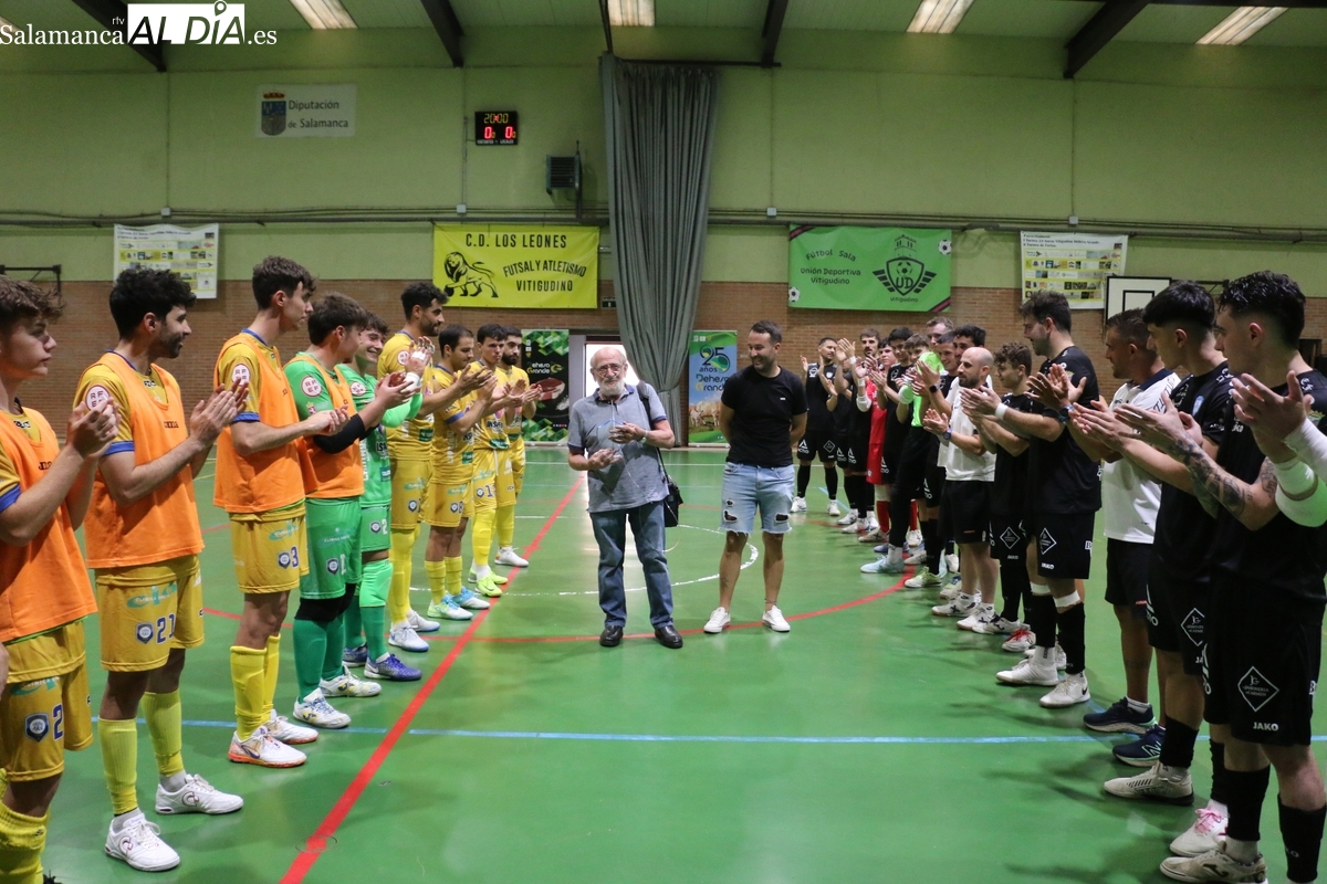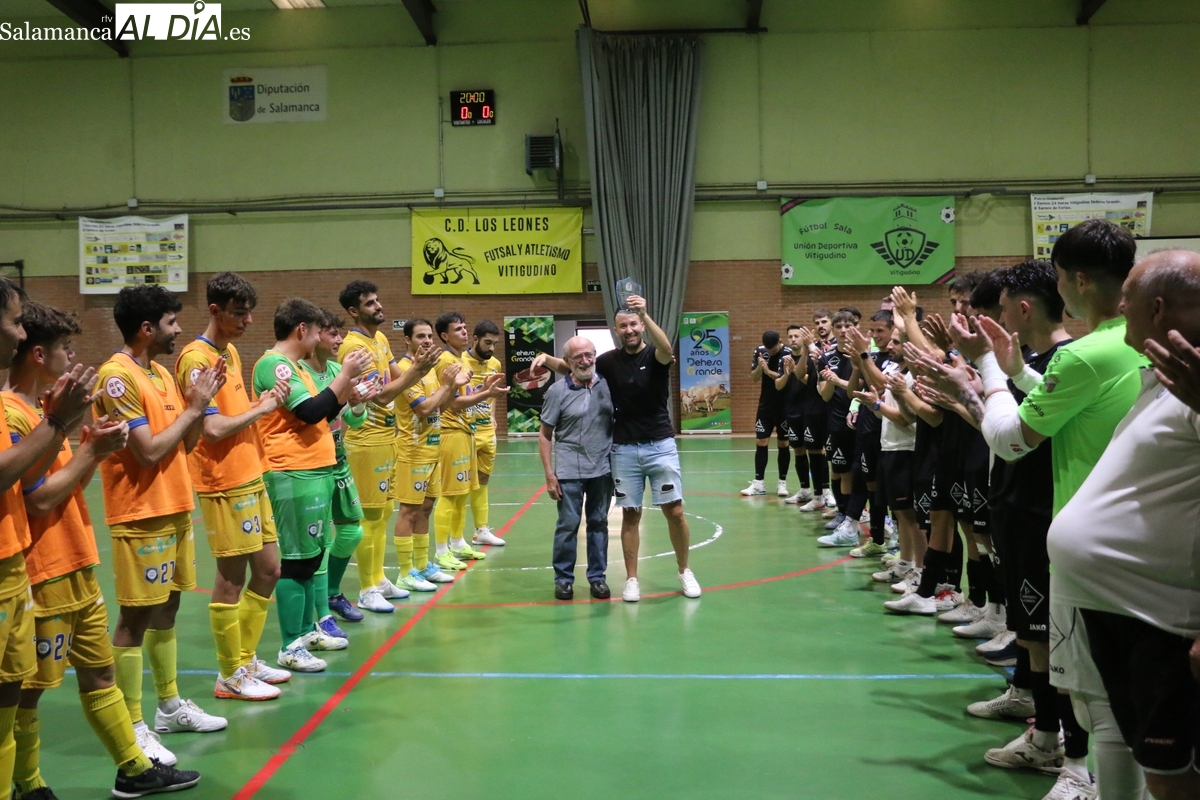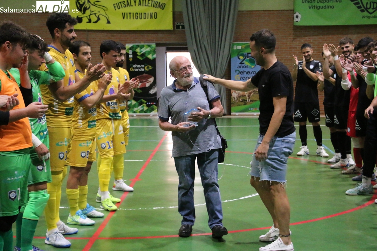 El Trofeo 25º Aniversario Dehesa Grande que disputaron el F.S. Salamanca y el Villaquilambre se convertía en el escenario perfecto para tributar un merecido homenaje a quien durante más de una década ha sido un referente de este deporte en Vitigudino y en la provincia salmantina.