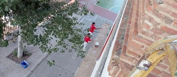 Más allá de la intervención en la fachada, el alumnado trabajador ha abordado otras tareas complementarias que contribuyen a la conservación integral de las instalaciones del centro educativo. Entre estas labores se incluyen el lijado y pintado de las verjas perimetrales y la adecuación de las bajantes de agua, asegurando así una mejora completa y coherente del edificio.