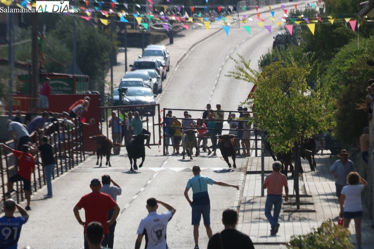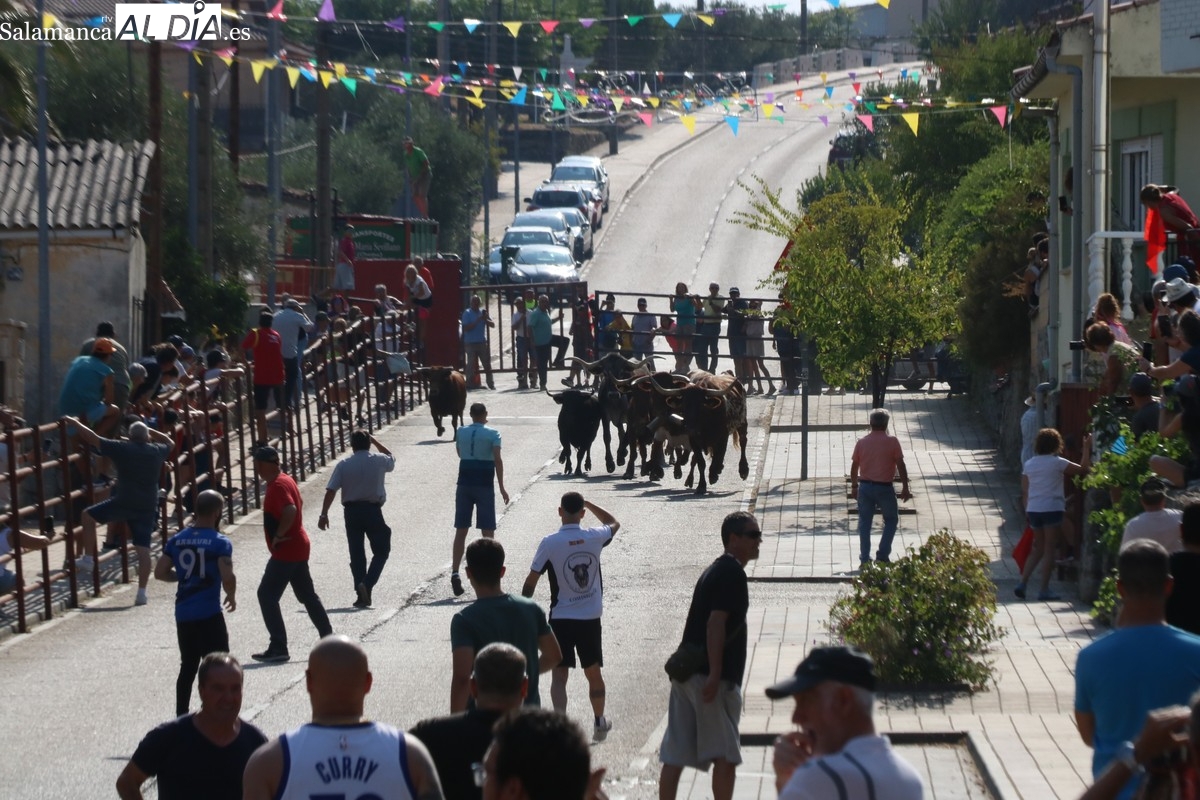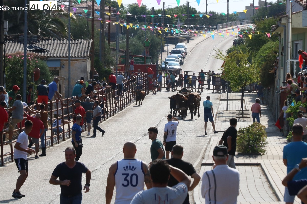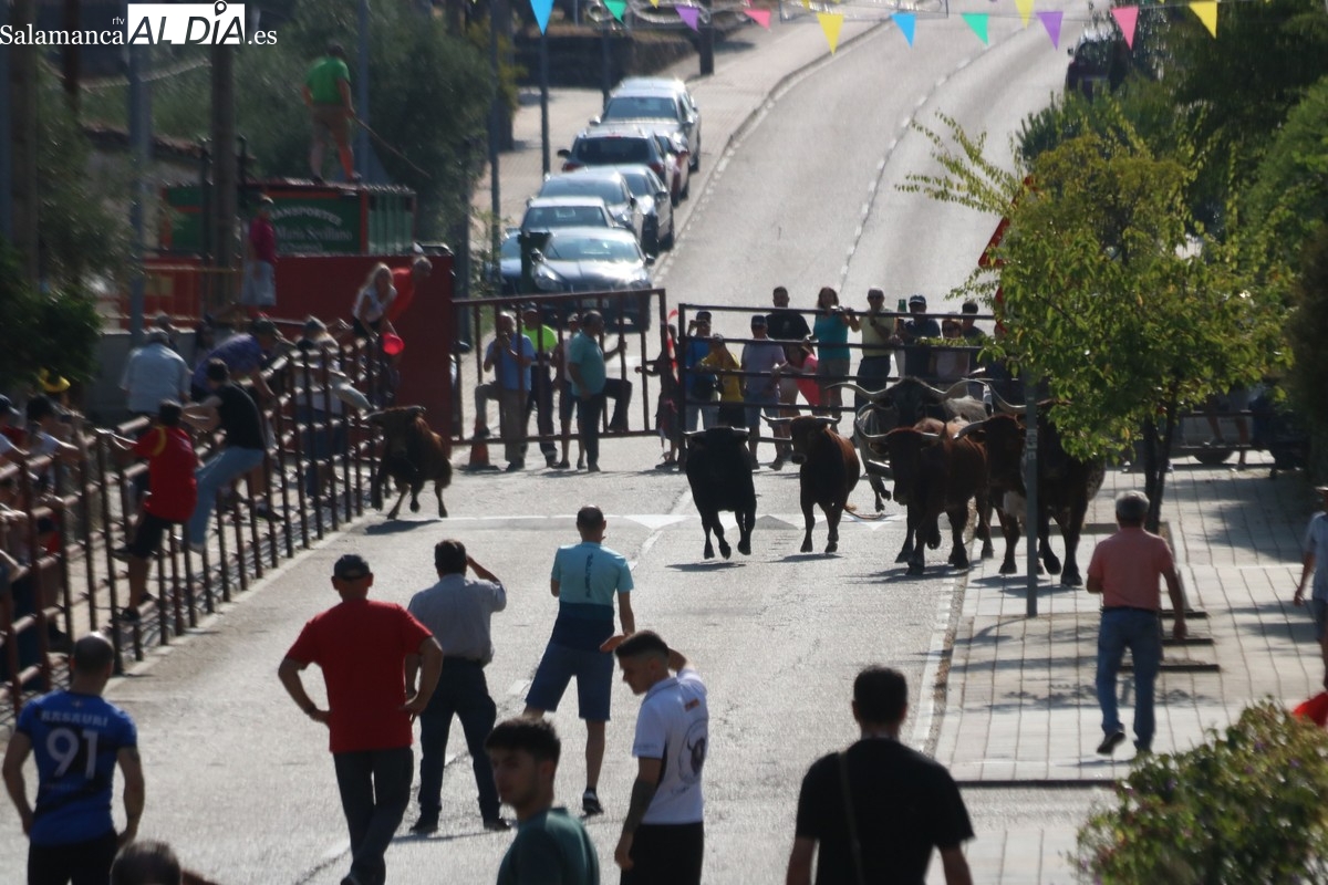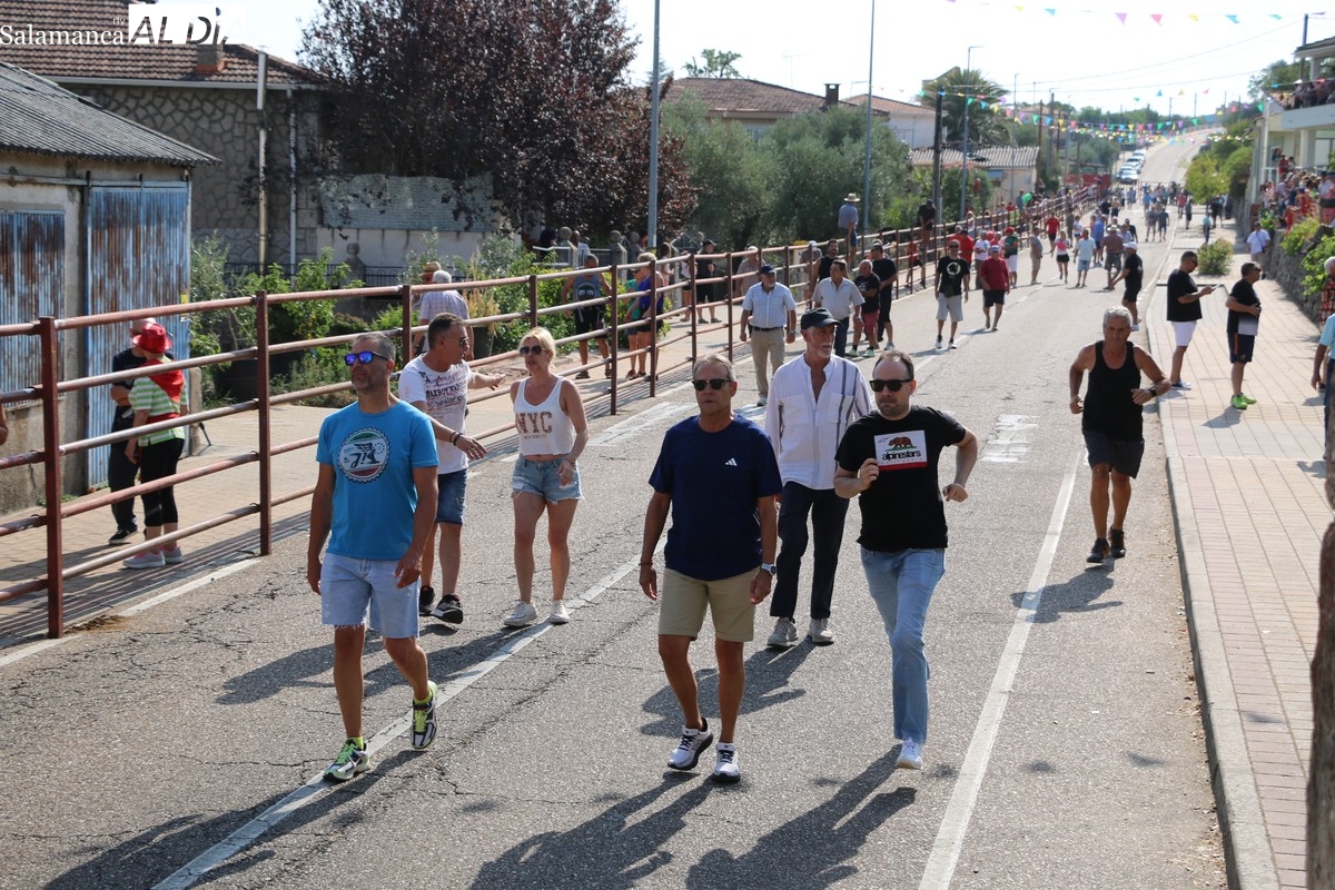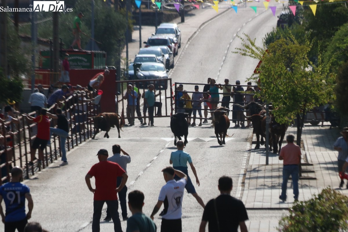 Después de un desfile de peñas apoteósico y el espectáculo de la orquesta Malassia la noche antes, este jueves tenía lugar en Villarino de los Aires el primero de los tres encierros previstos con motivo de las fiestas en honor a San Roque, cuatro novillos de Ignacio López Chaves, uno negro, dos coloraos y un berrendo en colorao, bien presentados.