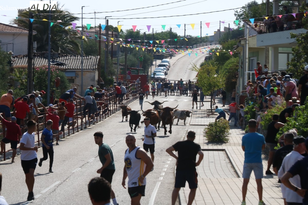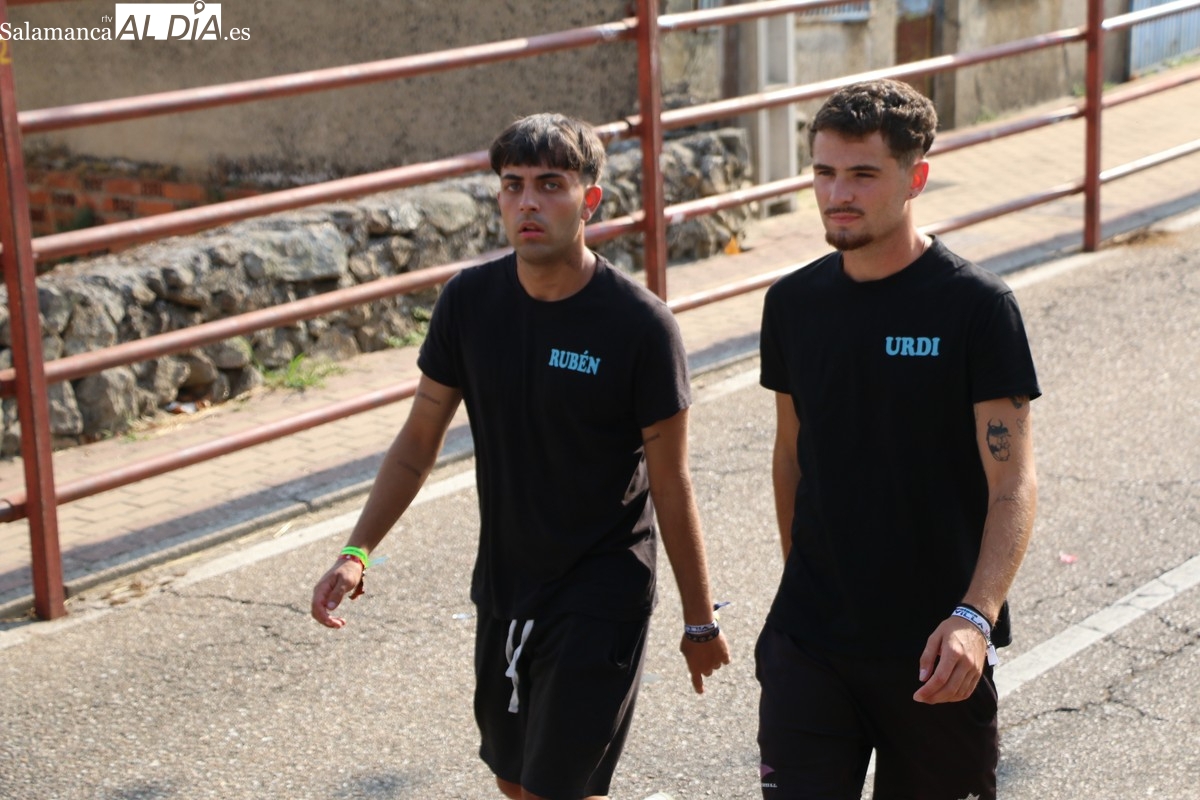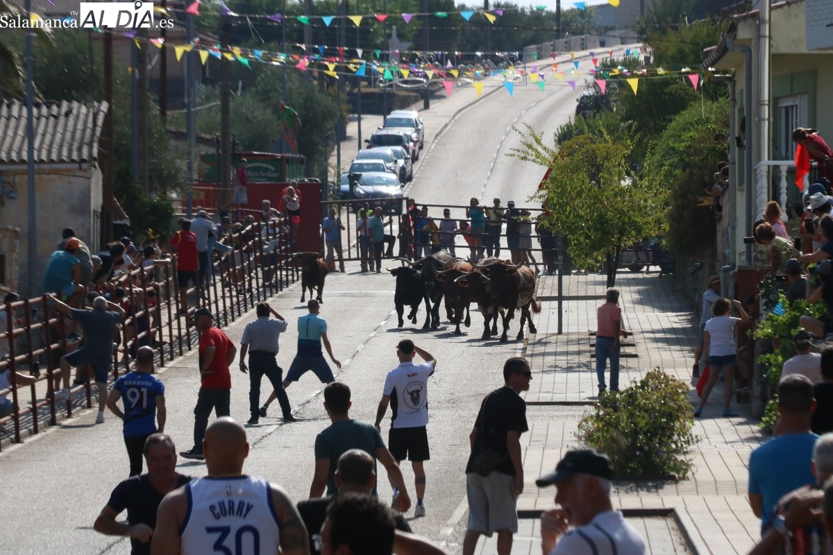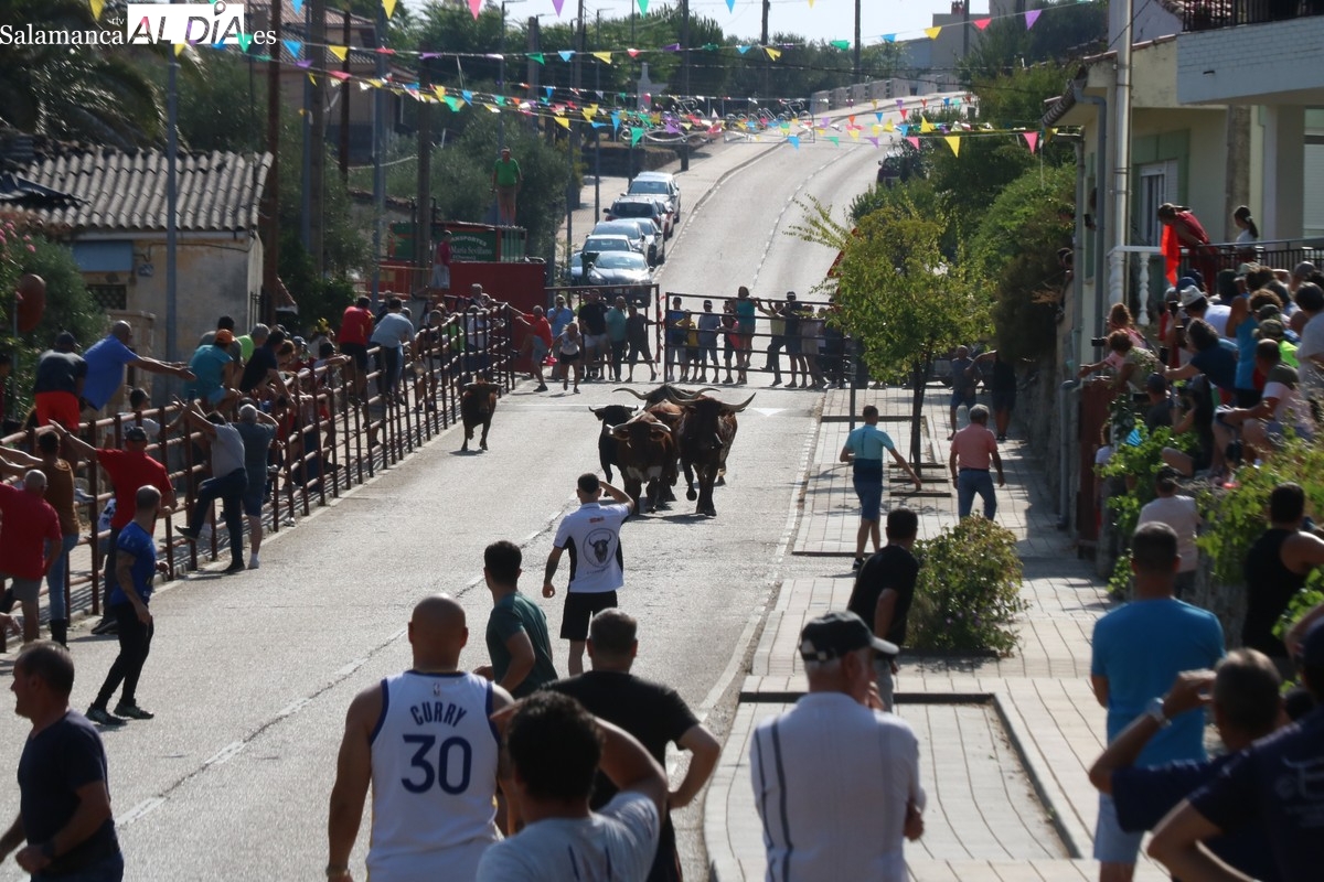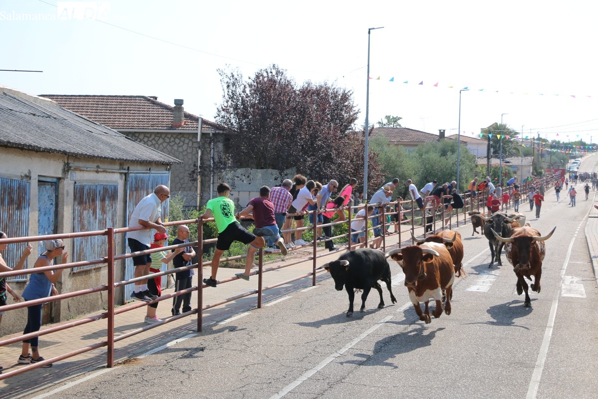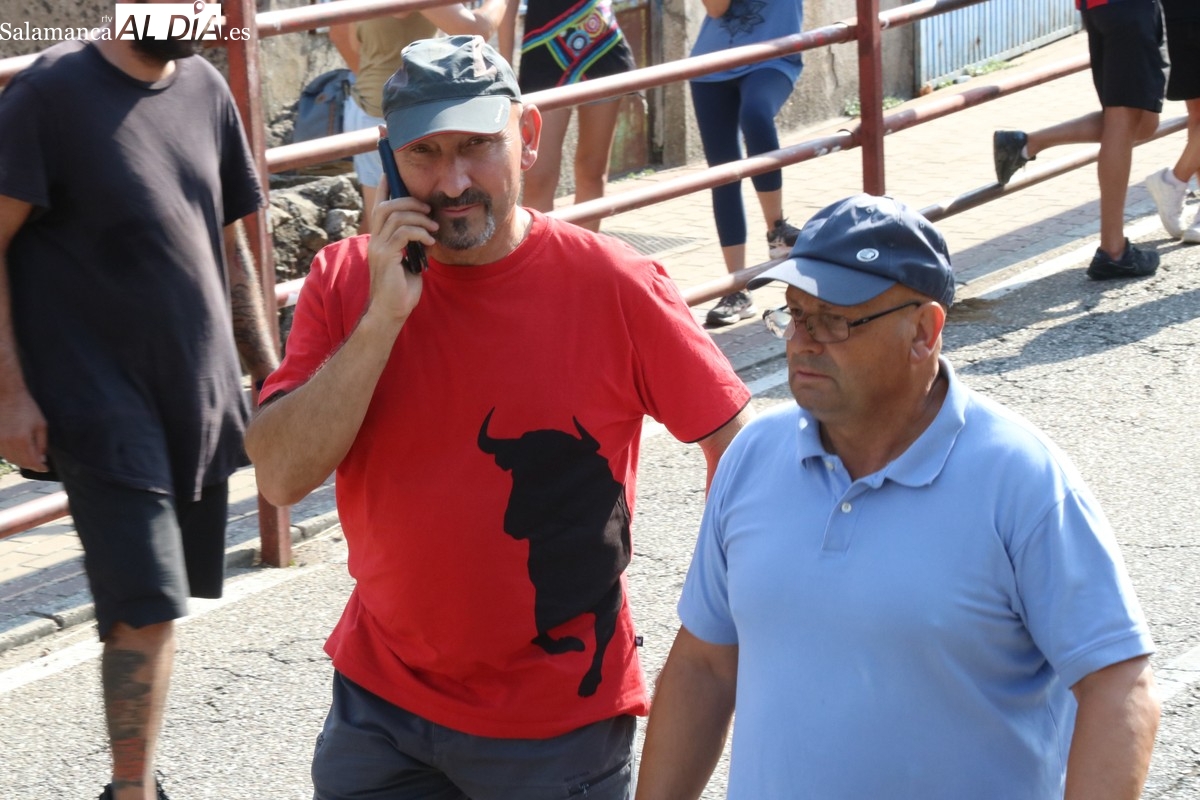 Después de un desfile de peñas apoteósico y el espectáculo de la orquesta Malassia la noche antes, este jueves tenía lugar en Villarino de los Aires el primero de los tres encierros previstos con motivo de las fiestas en honor a San Roque, cuatro novillos de Ignacio López Chaves, uno negro, dos coloraos y un berrendo en colorao, bien presentados.
