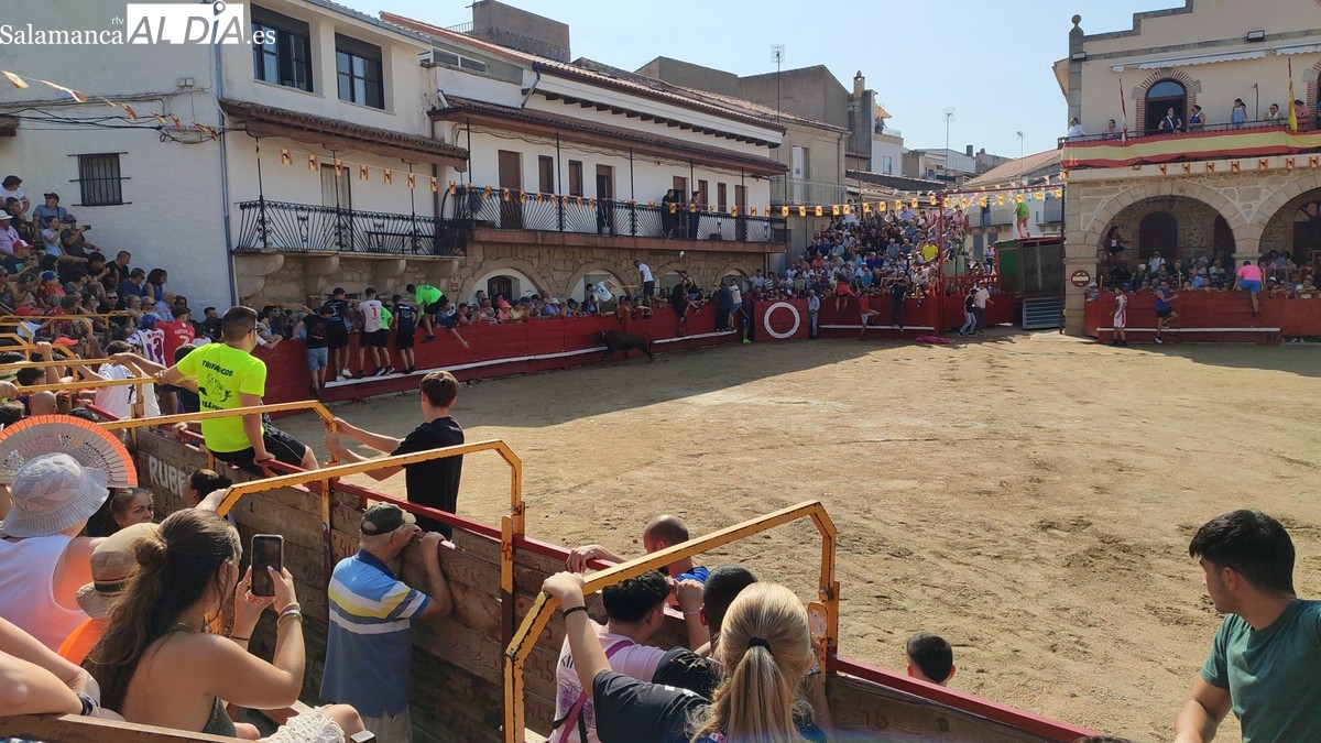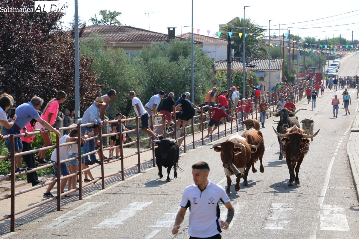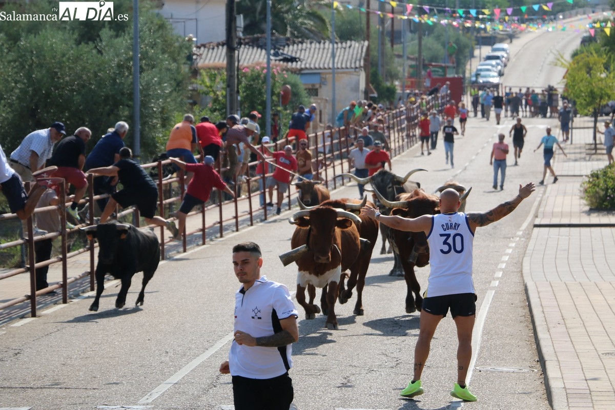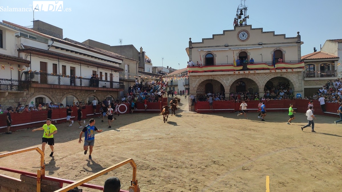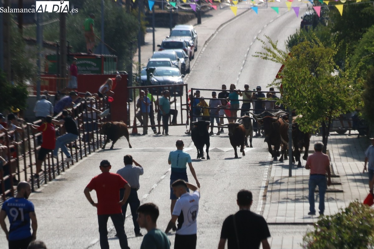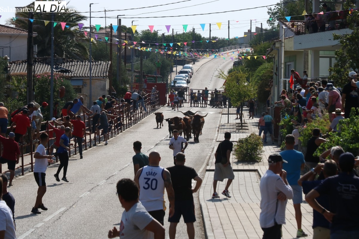 Después de un desfile de peñas apoteósico y el espectáculo de la orquesta Malassia la noche antes, este jueves tenía lugar en Villarino de los Aires el primero de los tres encierros previstos con motivo de las fiestas en honor a San Roque, cuatro novillos de Ignacio López Chaves, uno negro, dos coloraos y un berrendo en colorao, bien presentados.