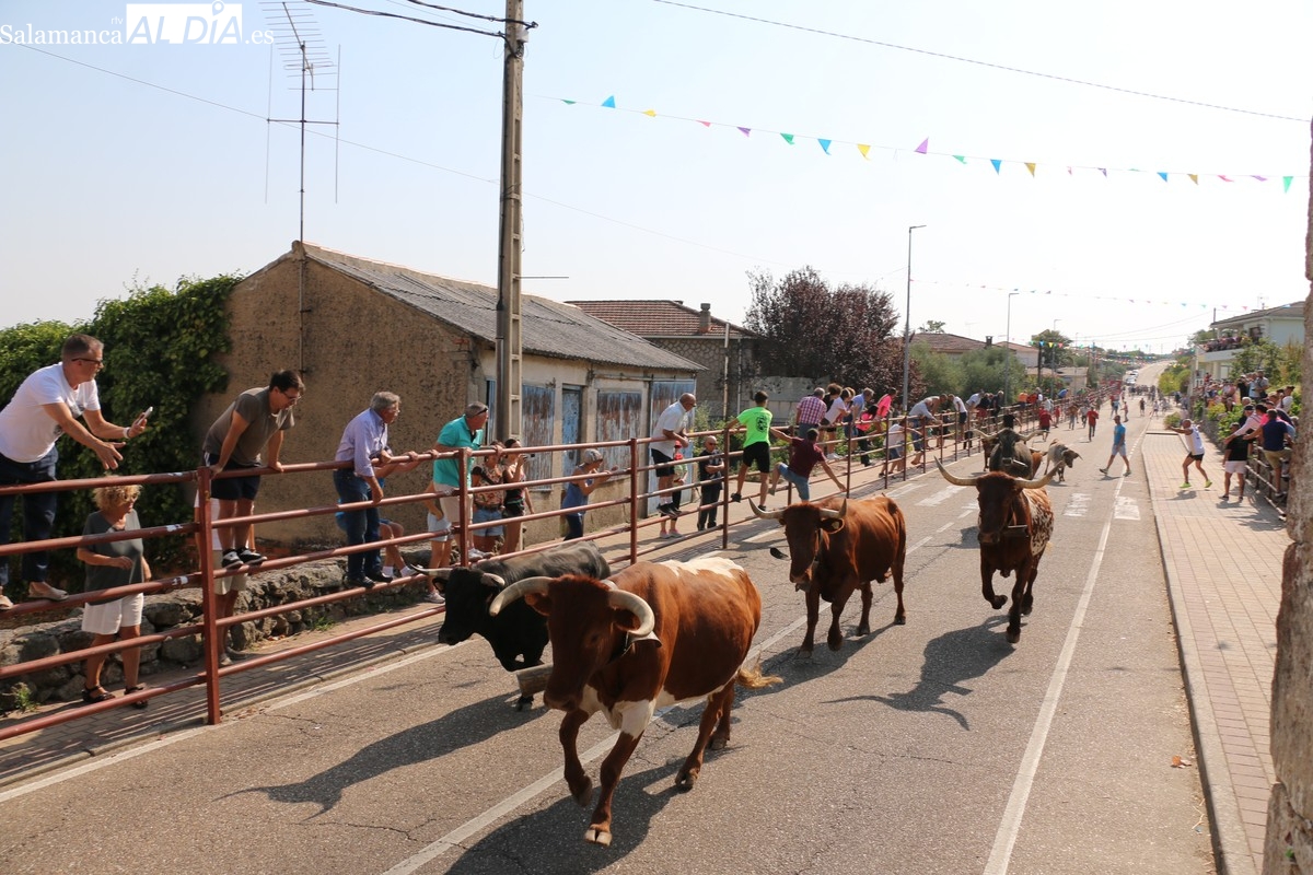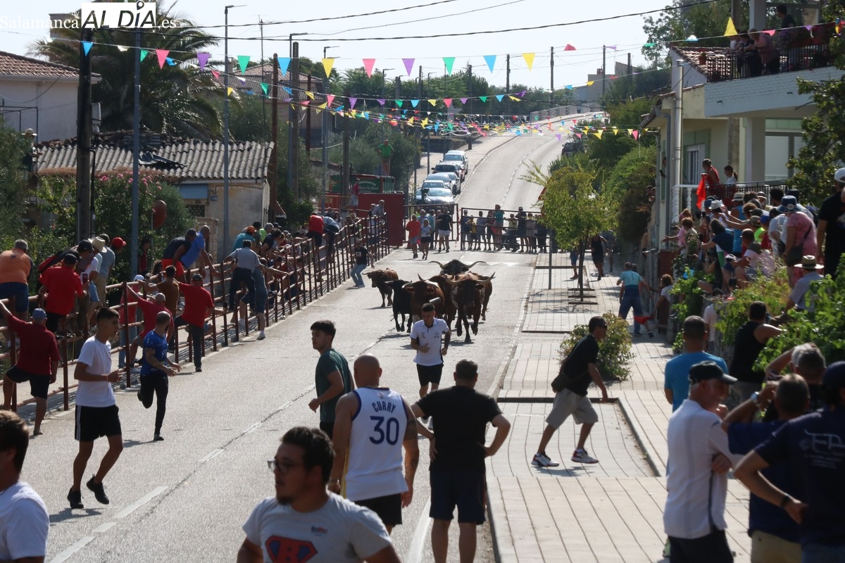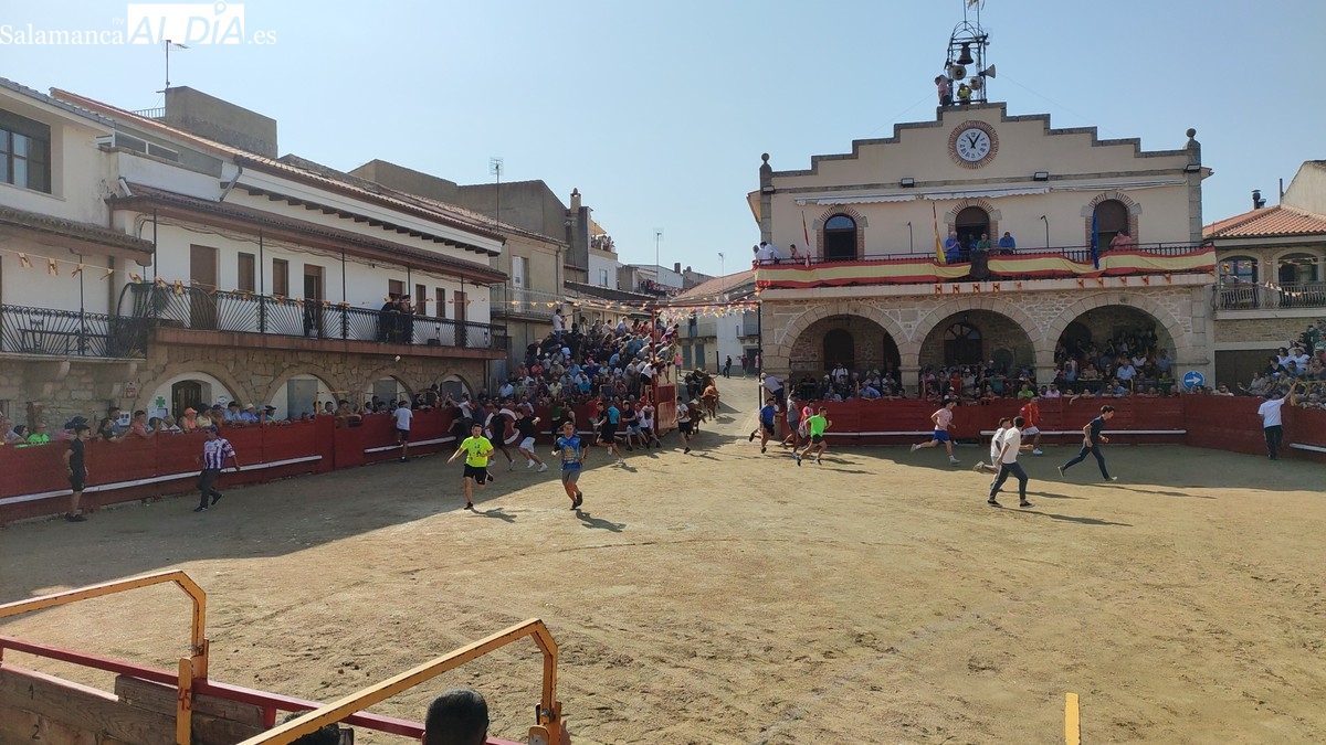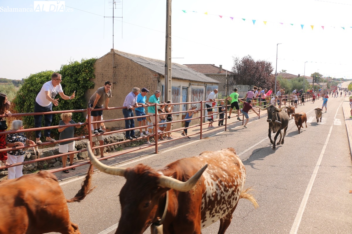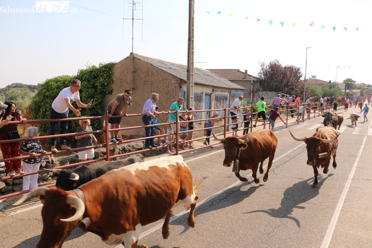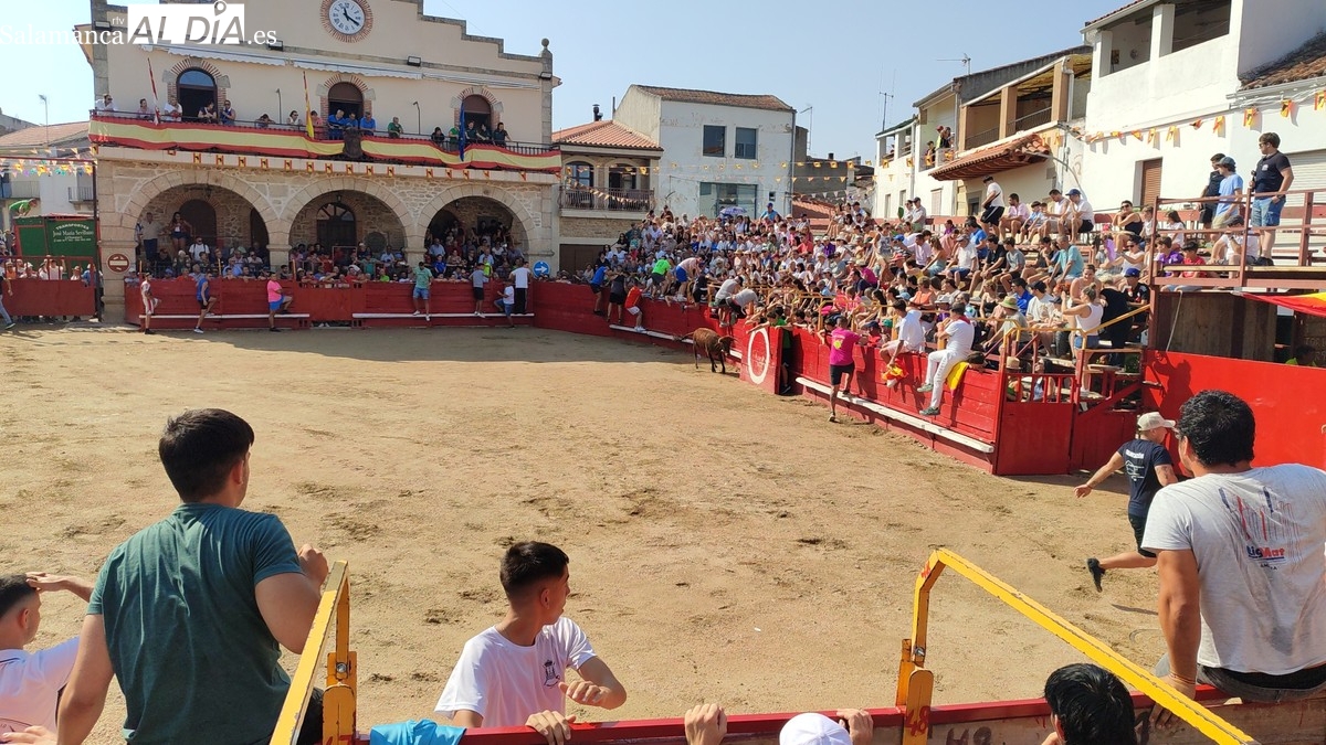 Después de un desfile de peñas apoteósico y el espectáculo de la orquesta Malassia la noche antes, este jueves tenía lugar en Villarino de los Aires el primero de los tres encierros previstos con motivo de las fiestas en honor a San Roque, cuatro novillos de Ignacio López Chaves, uno negro, dos coloraos y un berrendo en colorao, bien presentados.