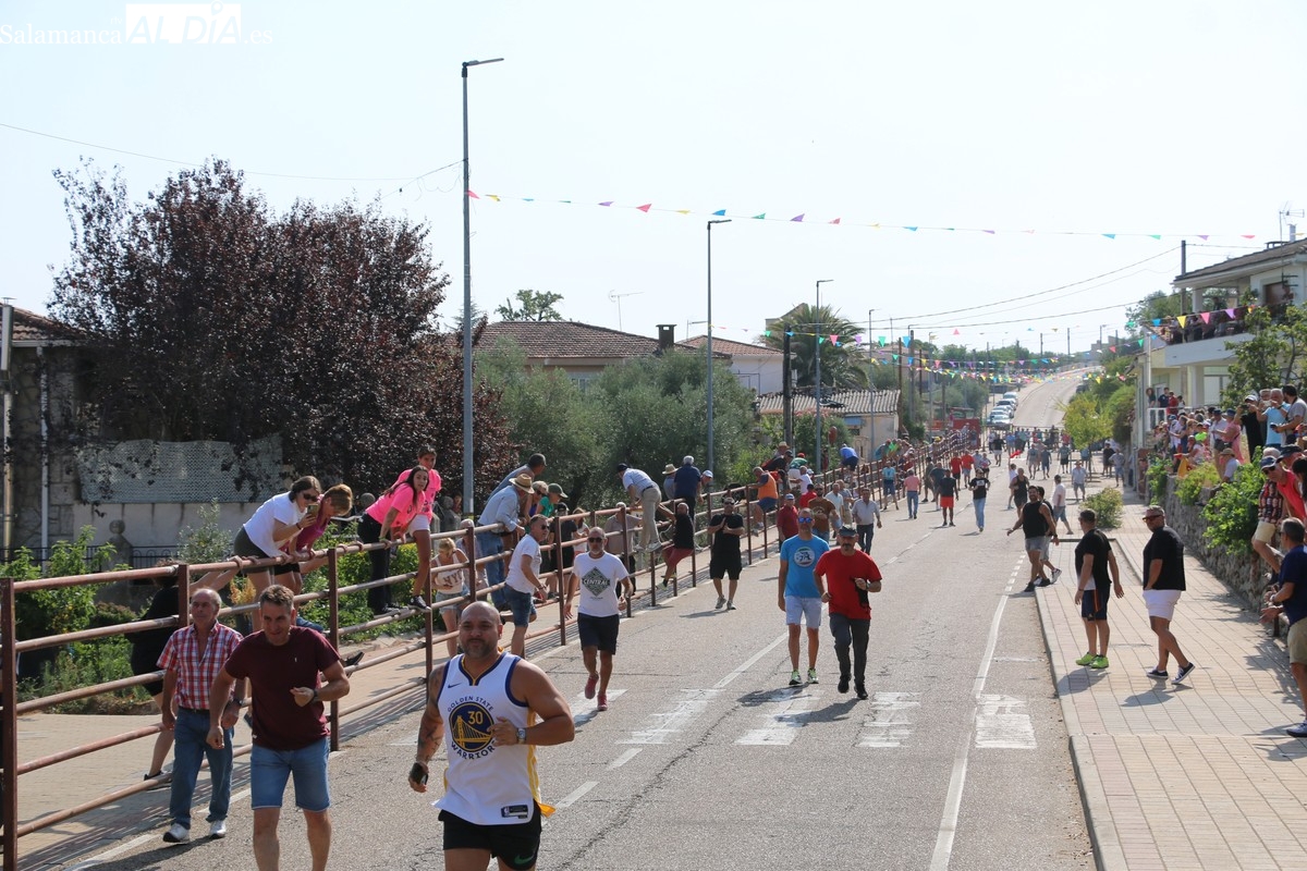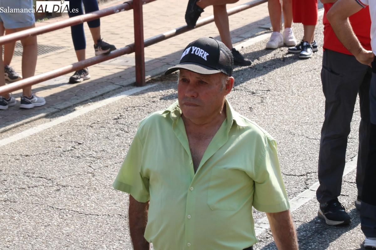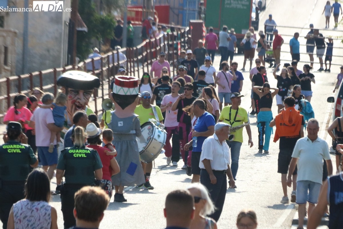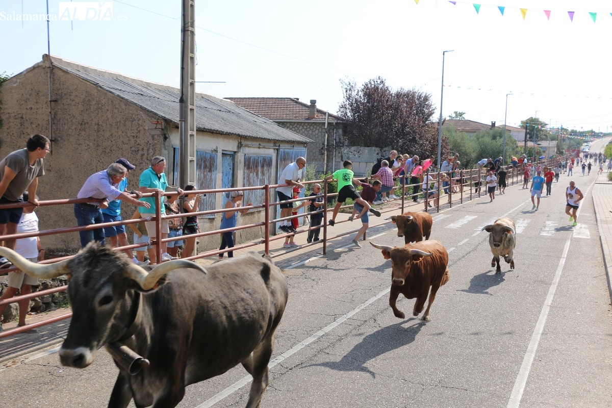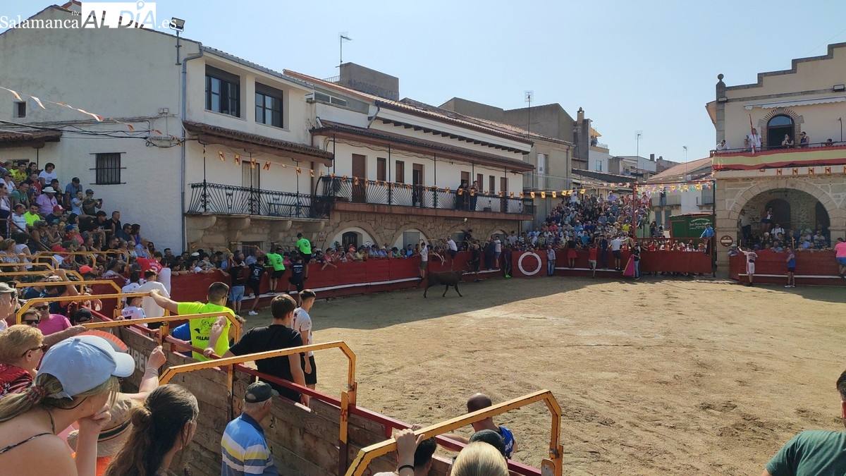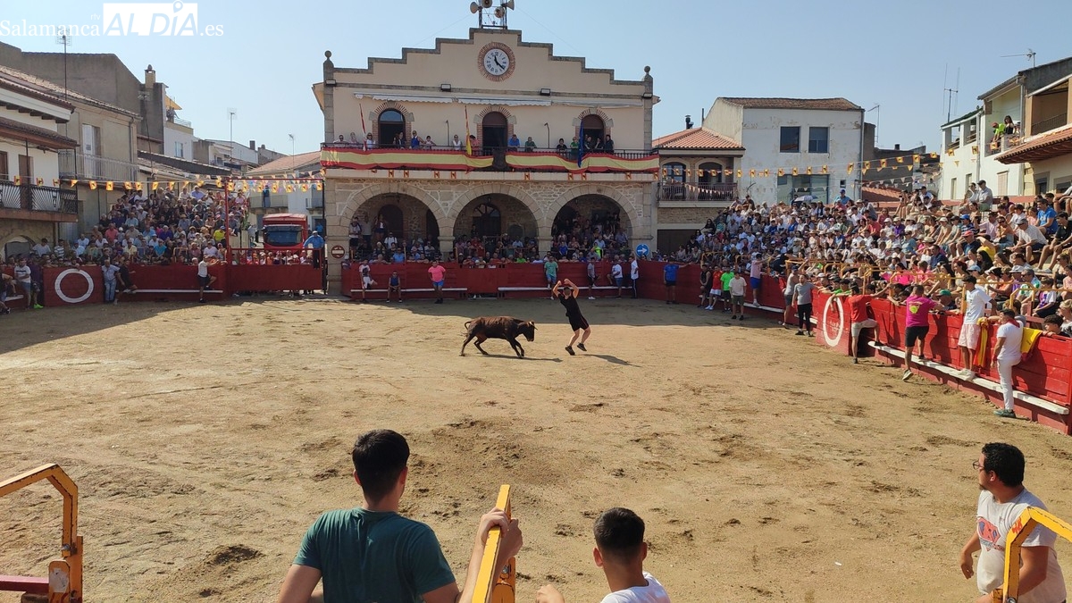 Después de un desfile de peñas apoteósico y el espectáculo de la orquesta Malassia la noche antes, este jueves tenía lugar en Villarino de los Aires el primero de los tres encierros previstos con motivo de las fiestas en honor a San Roque, cuatro novillos de Ignacio López Chaves, uno negro, dos coloraos y un berrendo en colorao, bien presentados.