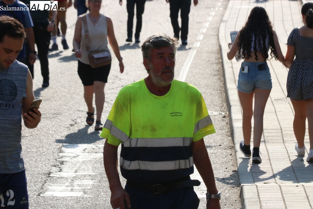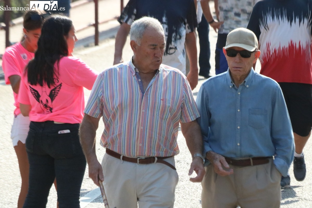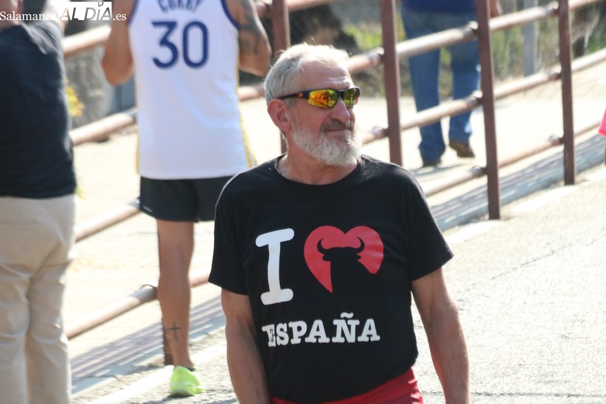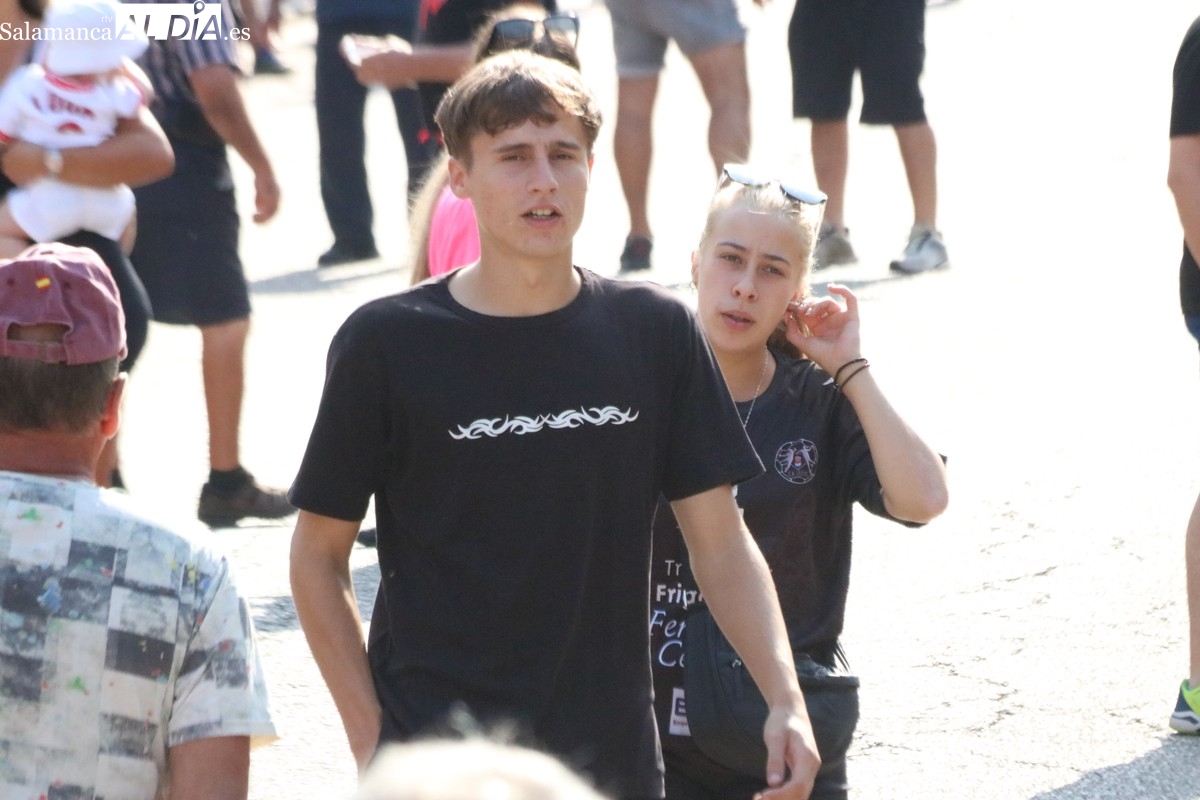 Sin demasiado público en las calles y en la Plaza, a las 11 en punto de la mañana se escuchaba el estruendo de los cohetes anunciadores del inicio del festejo. Encabezada por los mansos, junto a estos se posicionaba a la salida del corral de San Amaro el único novillo negro de la manada, a continuación aparecía un segundo grupo con dos novillos colorados y un berrendo en colorao, que corrieron la avenida sin mirar un segundo atrás. La rápida carrera se notó en la Plaza, pues escasos dos minutos después el encierro entraba en el coso para su lidia esta tarde con la actuación de los novilleros de la Escuela de Tauromaquia de Salamanca, Diego Mateos y Emilio García-Torres.