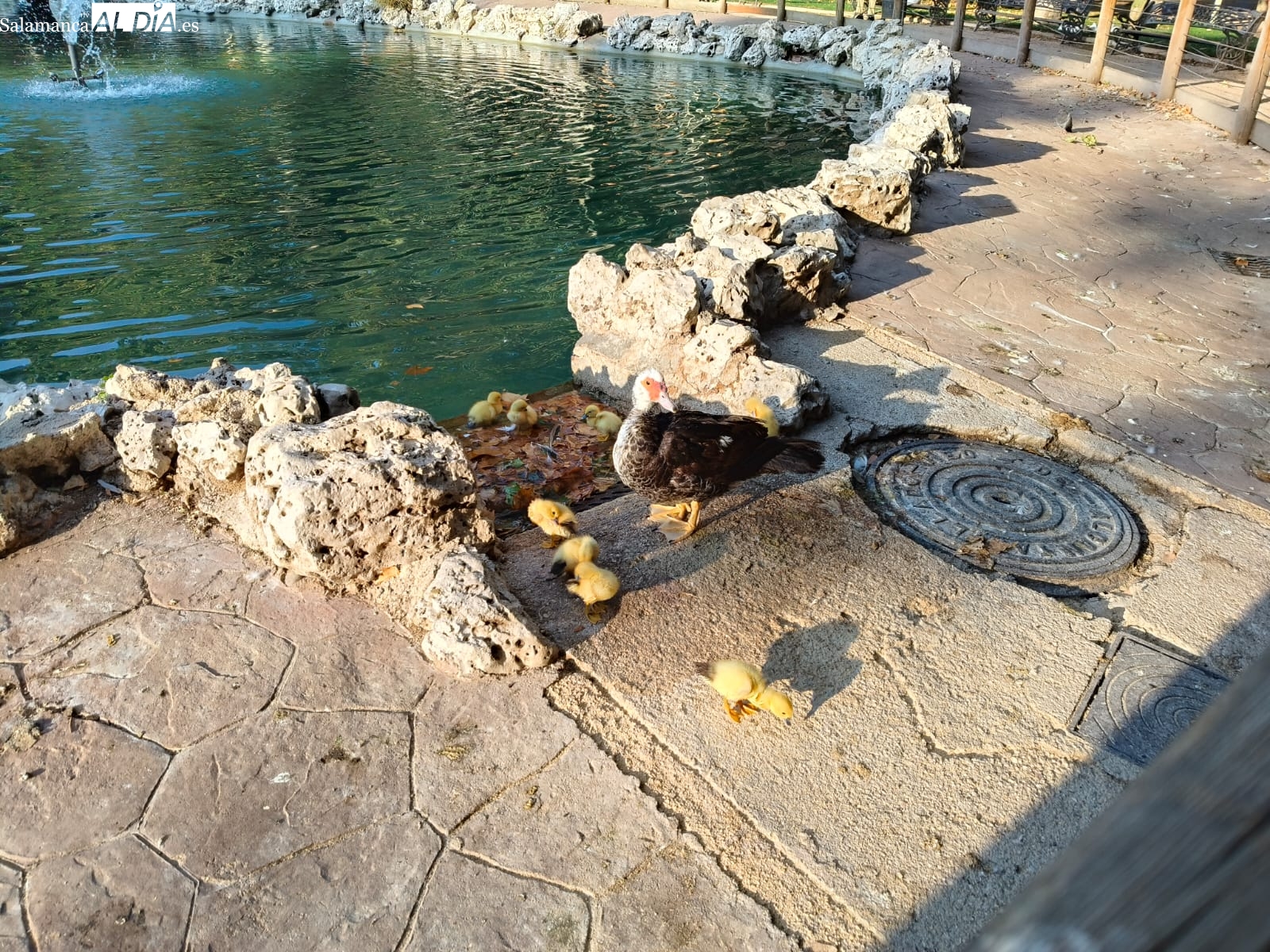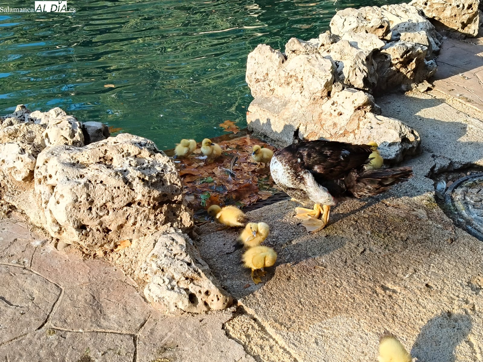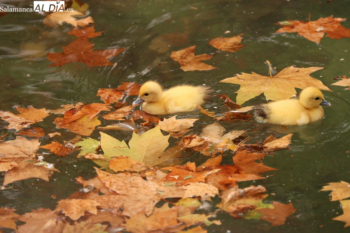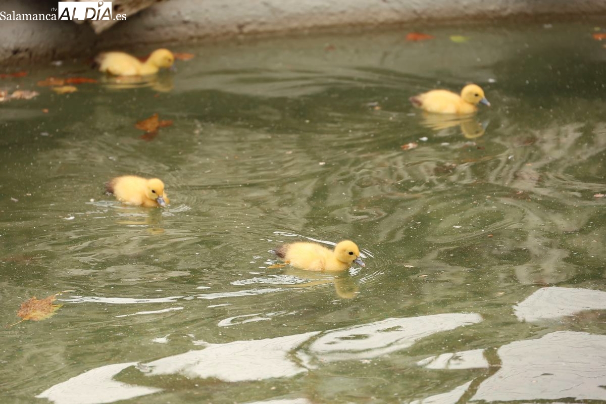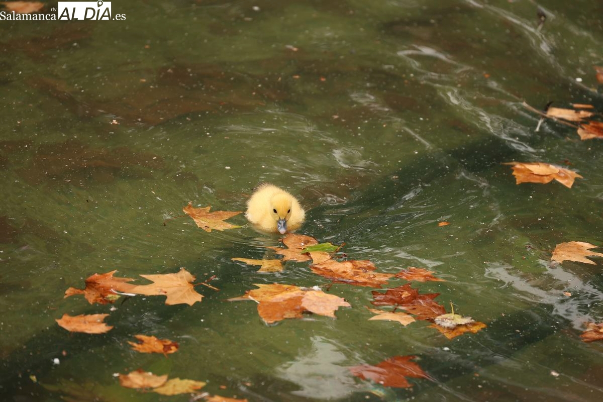 El estanque del parque de la Alamedilla de Salamanca tiene nuevos y diminutos inquilinos. Un total de nueve patitos se han convertido en el centro de todas las miradas después de que una de las patas residentes en este espacio natural haya culminado con éxito su periodo de incubación.