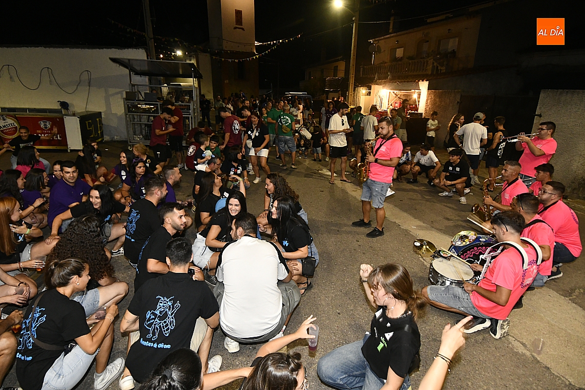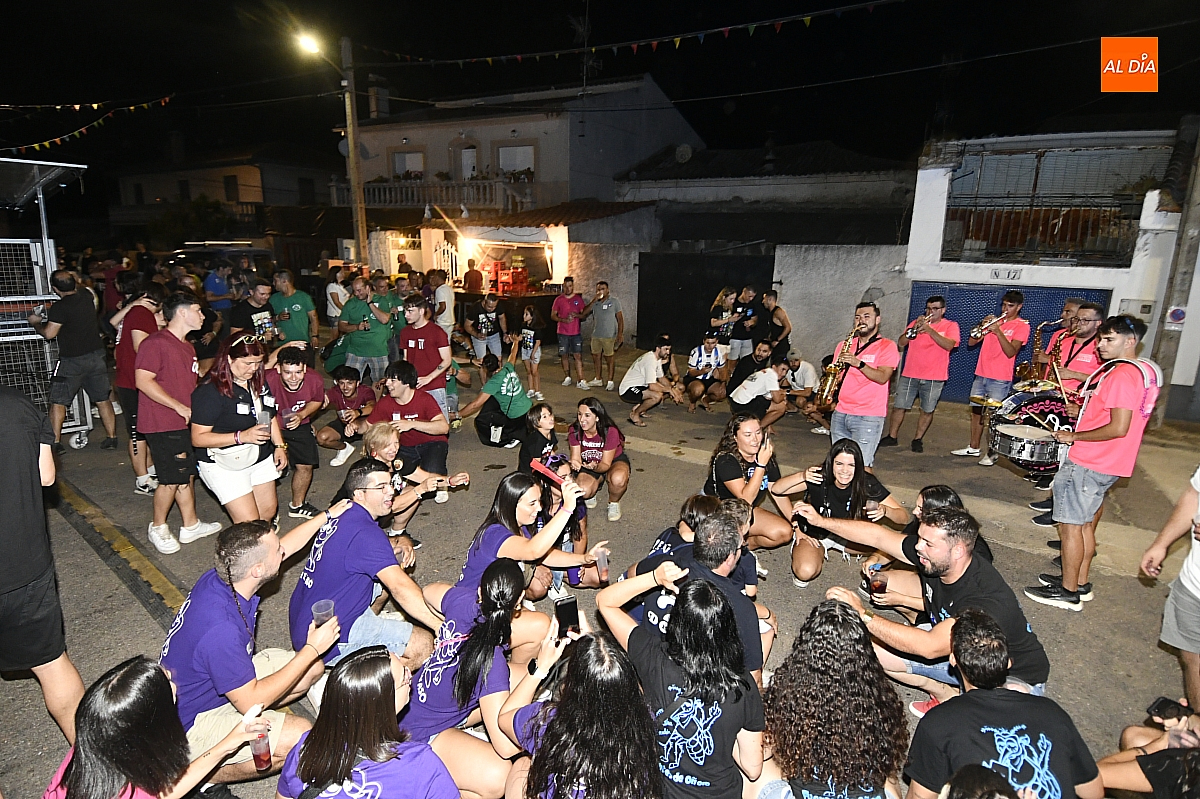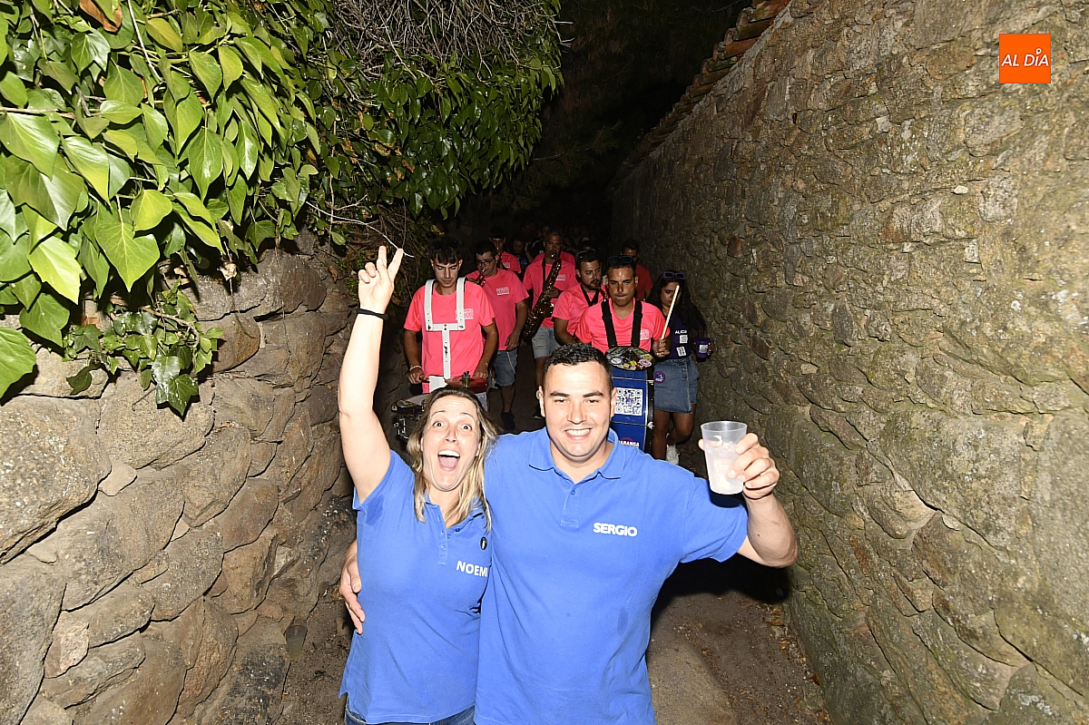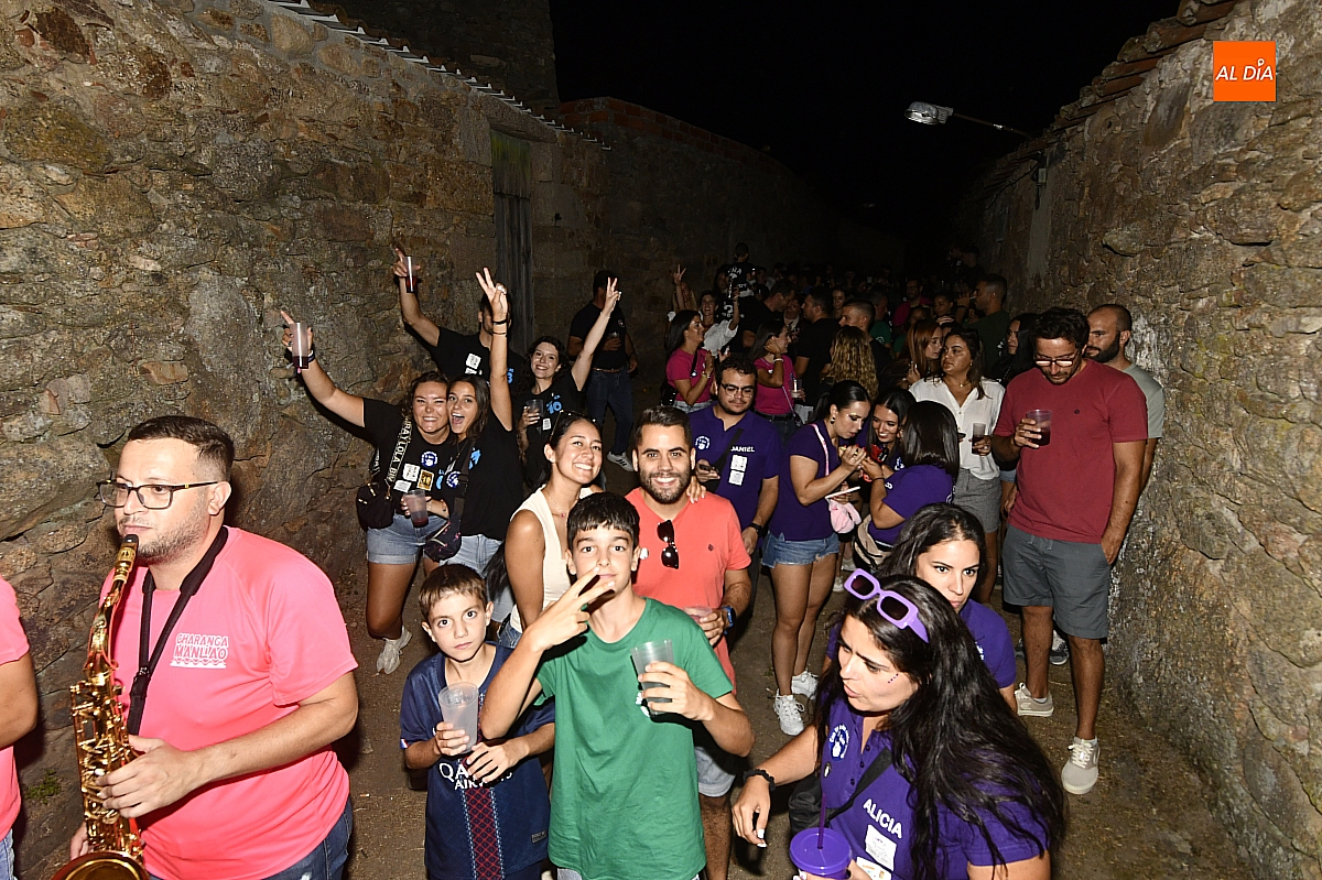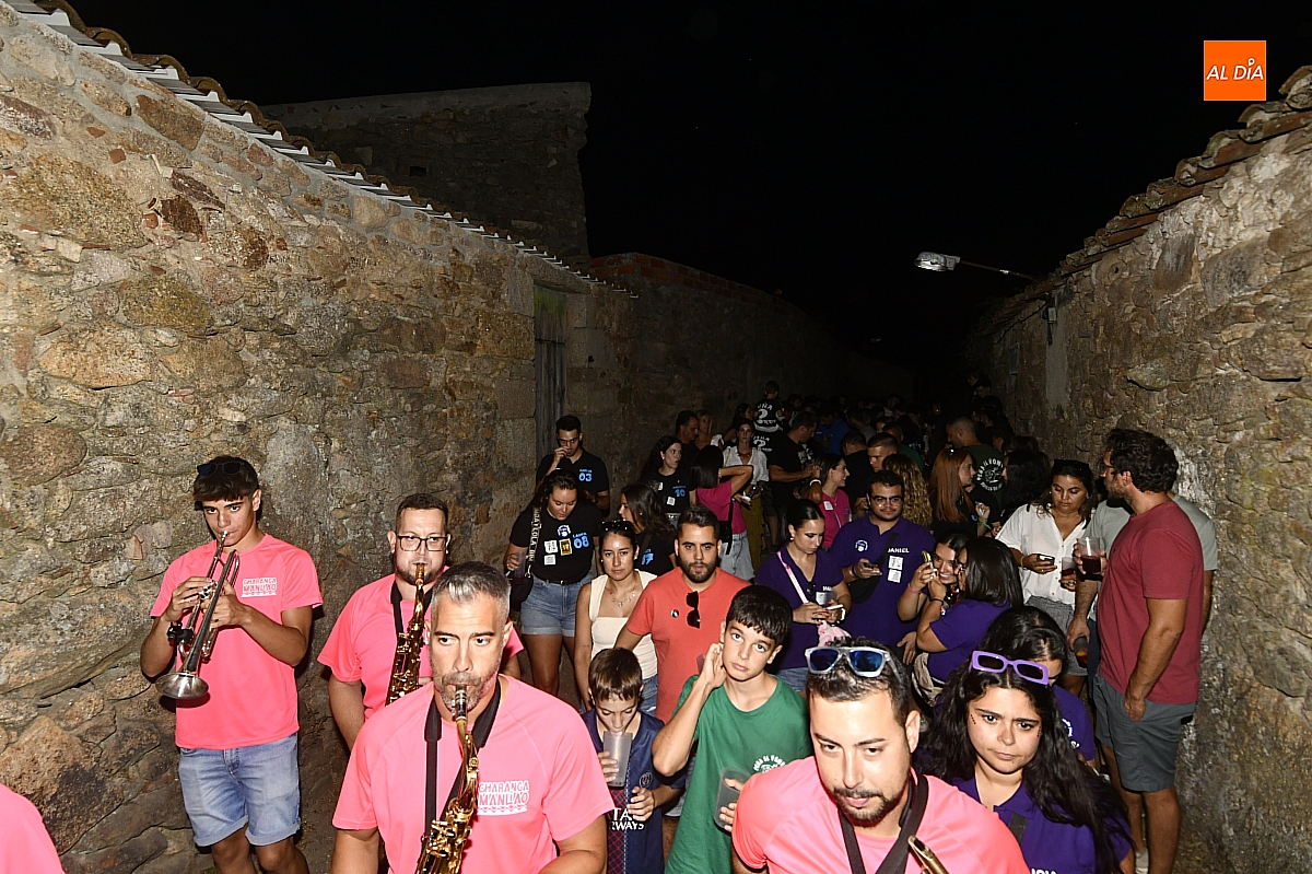 La localidad rayana de Fuentes de Oñoro inauguró sus fiestas veraniegas en honor a Nuestra Señora de la Asunción con gran paroxismo festivo y el frenesí de las peñas que constituyen el alma del programa. En un ambiente saleroso y colorido, la comitiva, animada en todo momento por la charanga mirobrigense “Manliao”, recorrió calles y plazas visitando las distintas sedes, donde se ofrecía sangría y productos típicos de la zona. La calurosa tarde acompañó el trayecto hasta que el sol, lentamente, se ocultó en el horizonte.