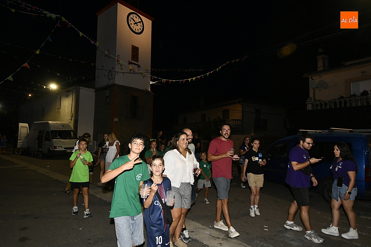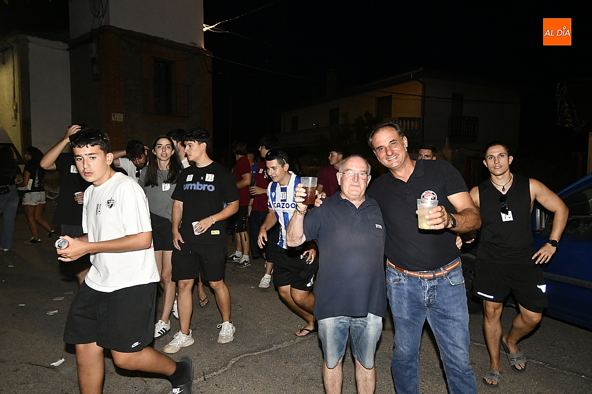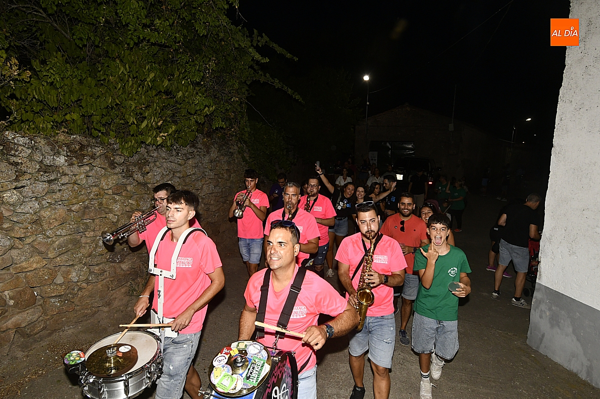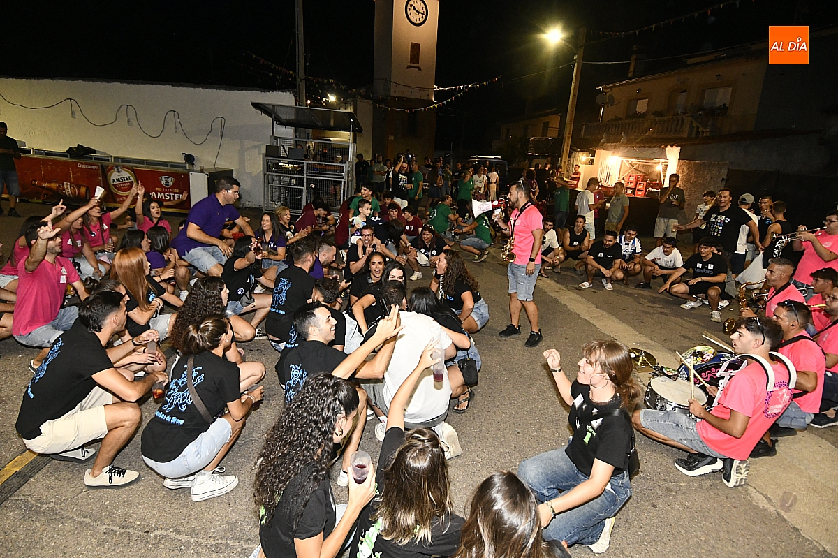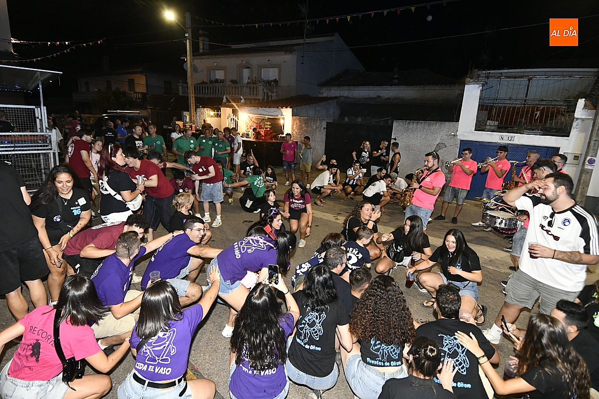 La localidad rayana de Fuentes de Oñoro inauguró sus fiestas veraniegas en honor a Nuestra Señora de la Asunción con gran paroxismo festivo y el frenesí de las peñas que constituyen el alma del programa. En un ambiente saleroso y colorido, la comitiva, animada en todo momento por la charanga mirobrigense “Manliao”, recorrió calles y plazas visitando las distintas sedes, donde se ofrecía sangría y productos típicos de la zona. La calurosa tarde acompañó el trayecto hasta que el sol, lentamente, se ocultó en el horizonte.