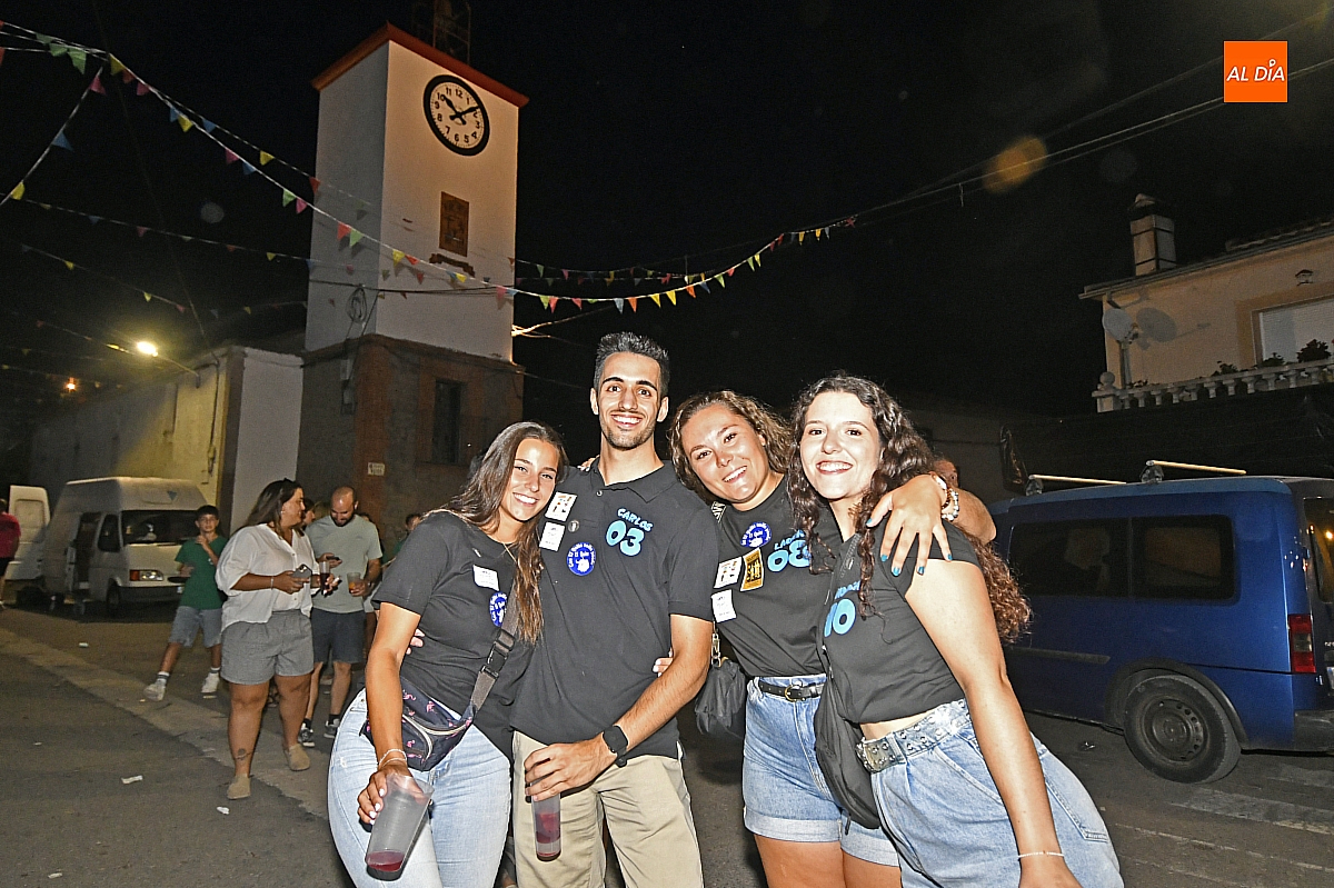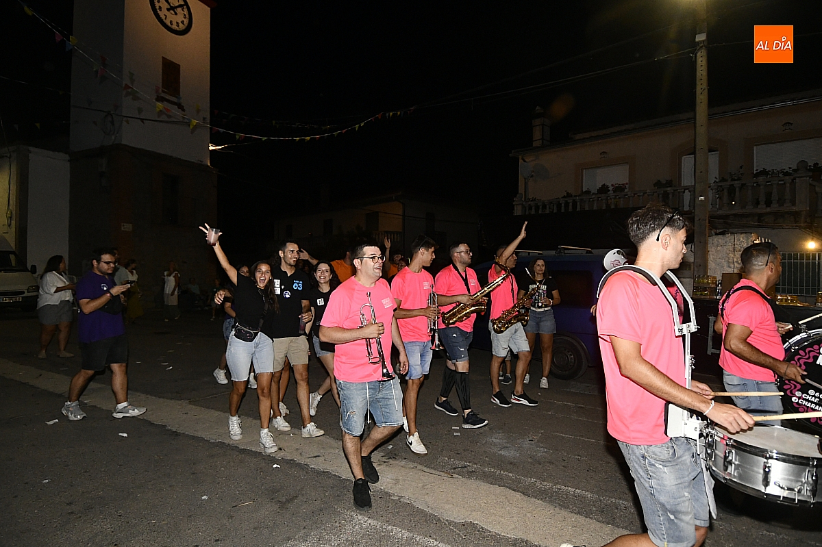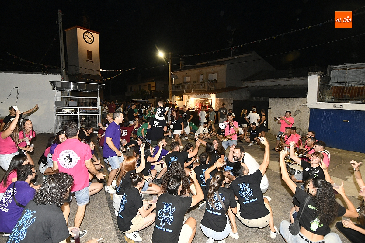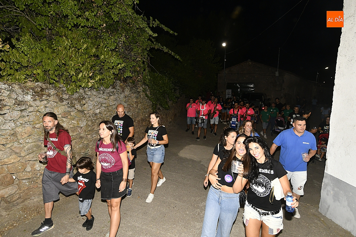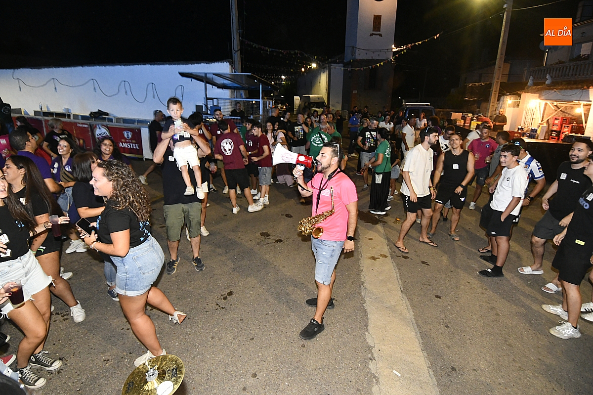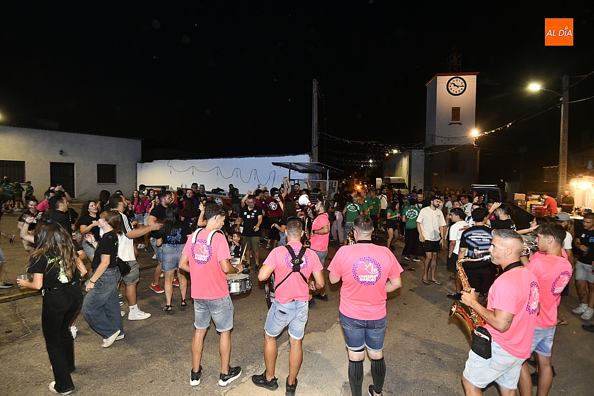 La localidad rayana de Fuentes de Oñoro inauguró sus fiestas veraniegas en honor a Nuestra Señora de la Asunción con gran paroxismo festivo y el frenesí de las peñas que constituyen el alma del programa. En un ambiente saleroso y colorido, la comitiva, animada en todo momento por la charanga mirobrigense “Manliao”, recorrió calles y plazas visitando las distintas sedes, donde se ofrecía sangría y productos típicos de la zona. La calurosa tarde acompañó el trayecto hasta que el sol, lentamente, se ocultó en el horizonte.
