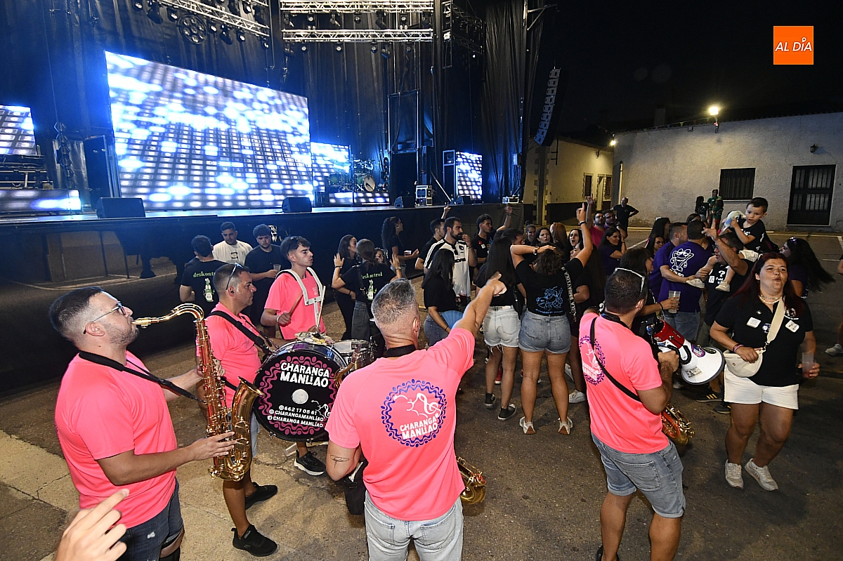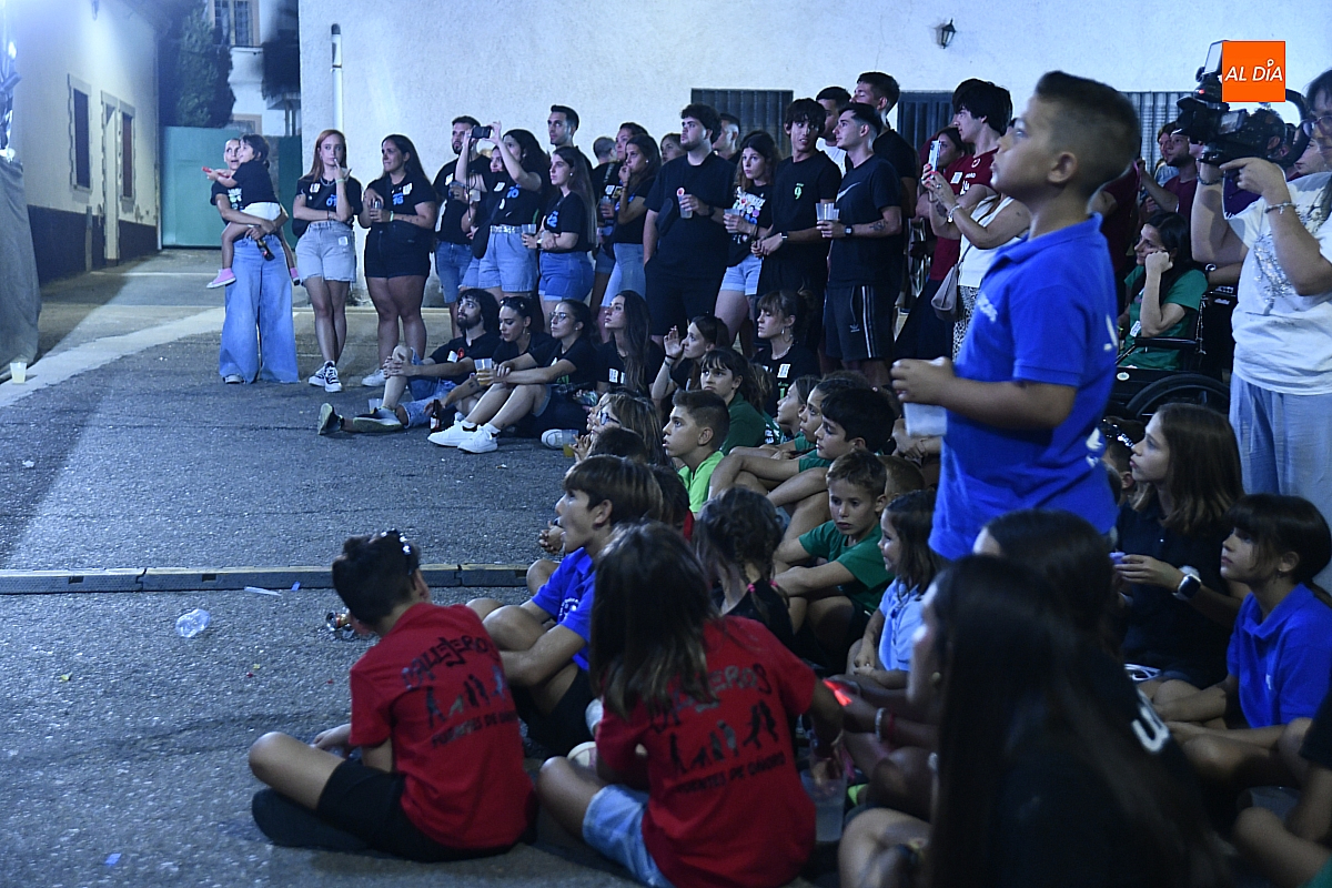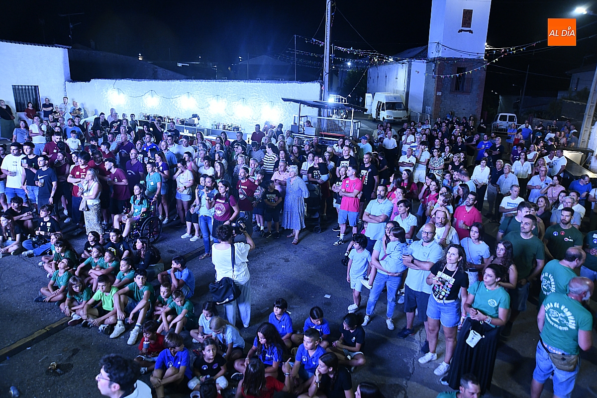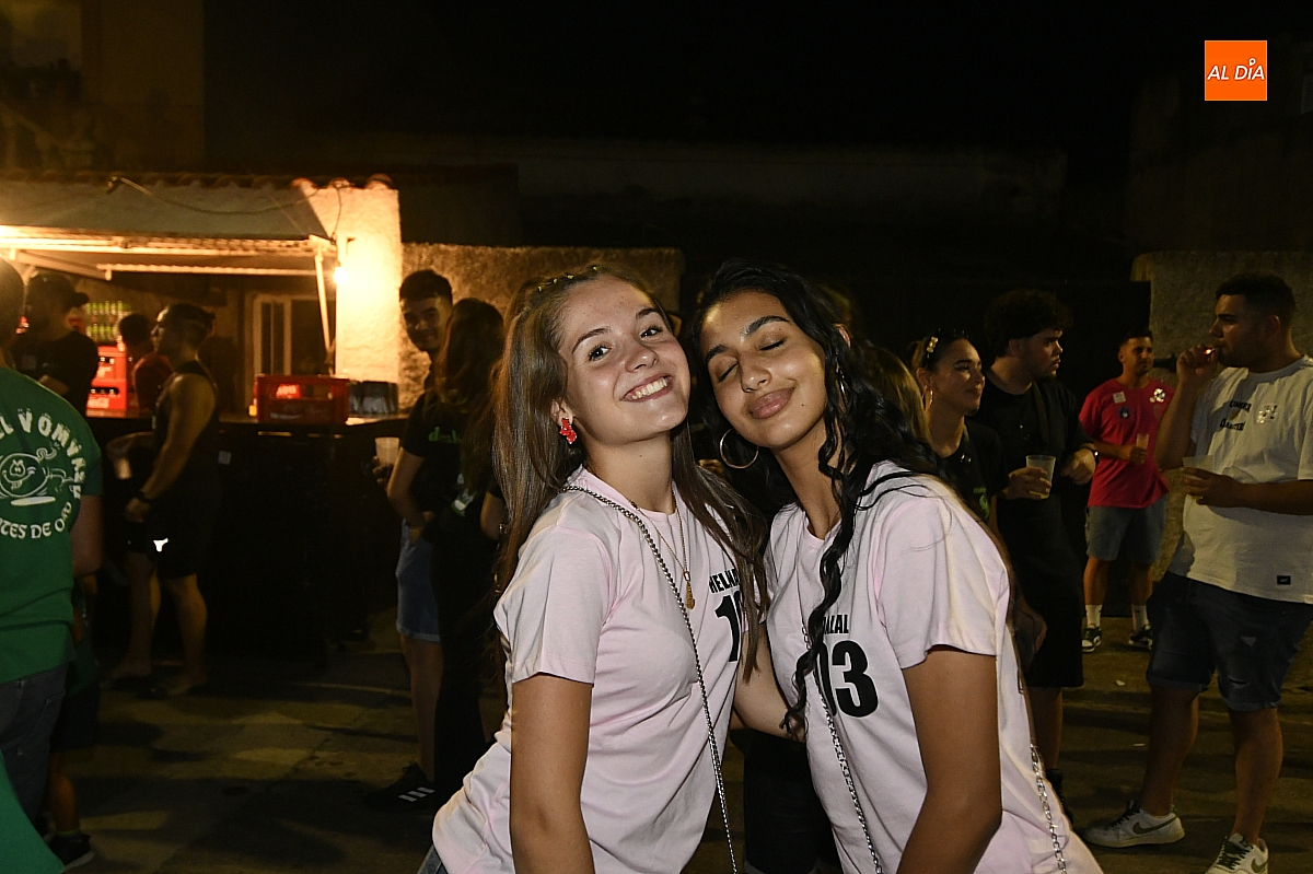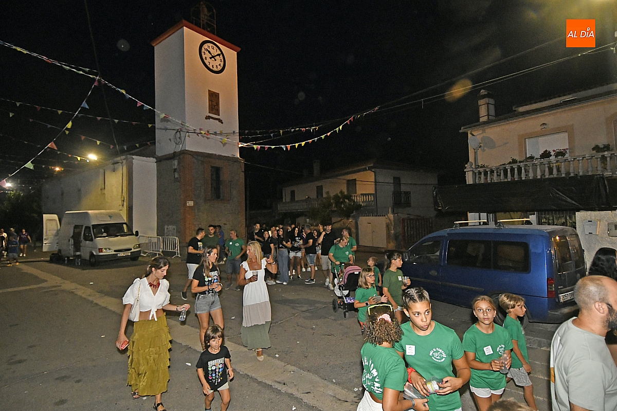 La localidad rayana de Fuentes de Oñoro inauguró sus fiestas veraniegas en honor a Nuestra Señora de la Asunción con gran paroxismo festivo y el frenesí de las peñas que constituyen el alma del programa. En un ambiente saleroso y colorido, la comitiva, animada en todo momento por la charanga mirobrigense “Manliao”, recorrió calles y plazas visitando las distintas sedes, donde se ofrecía sangría y productos típicos de la zona. La calurosa tarde acompañó el trayecto hasta que el sol, lentamente, se ocultó en el horizonte.
