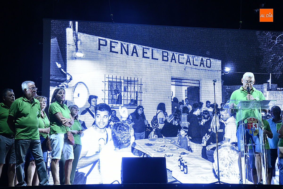 A continuación tomó el protagonismo la Peña "El Bacalao", que en este 2025 celebra medio siglo de existencia, condición que la convierte en la más veterana de la localidad. El pregón, pronunciado a dúo por varios de sus miembros, evocó los inicios del grupo en 1975, cuando todavía el contrabando era una realidad cotidiana entre las poblaciones fronterizas. El bacalao —junto con café, textiles o tabaco— formaba parte de las mercancías que cruzaban la raya de forma clandestina. Aquella práctica, profundamente enraizada en la zona, desaparecería con la entrada de España y Portugal en la Comunidad Económica Europea ( CEE ) el 1 de enero de 1986.