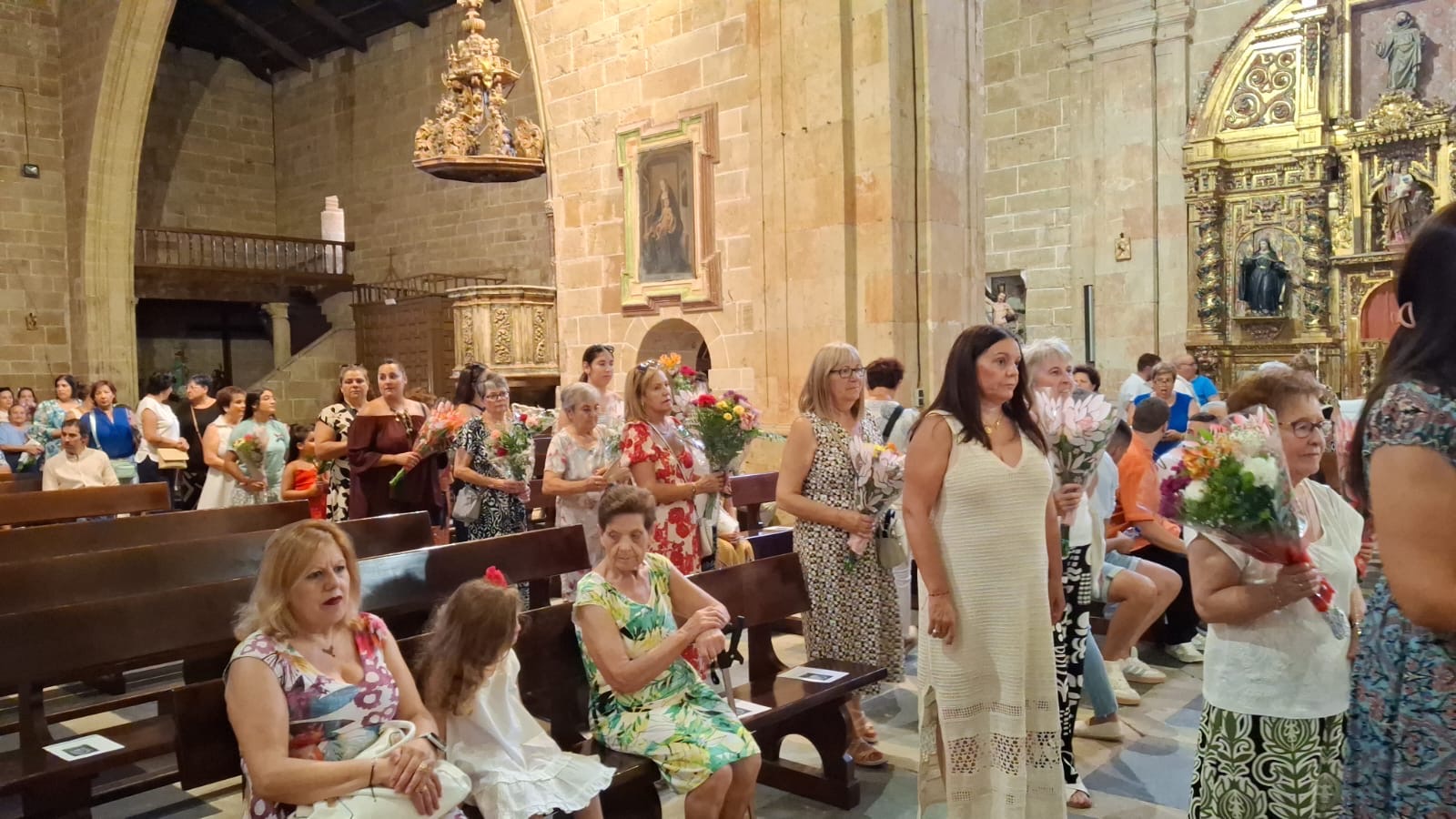 La monumental iglesia de San Pedro de Cantalpino rebosaba de una alegría especial con la celebración de la tradicional Ofrenda Floral a la Virgen de la Asunción, a la que están dedicadas las fiestas patronales, que se inician este jueves con el pregón de Guillermo Bueno Salvador.