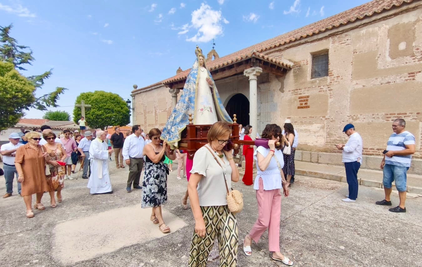 Los actos arrancaban a las doce de la mañana en una abarrotada iglesia parroquial, donde tenía lugar la solemne eucaristía, tras la que se iniciaba la esperada procesión de la Virgen, portada a hombros para recorrer numerosas calles de la localidad.