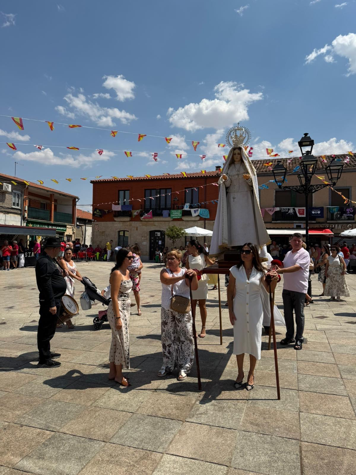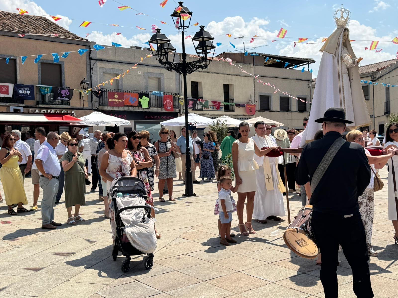 A los sones de Carlos Rufino de Haro y el pequeño Mario, la procesión hizo una parada en la plaza de España, donde los cantalpineses acompañaron a la Madre con el silencio.
