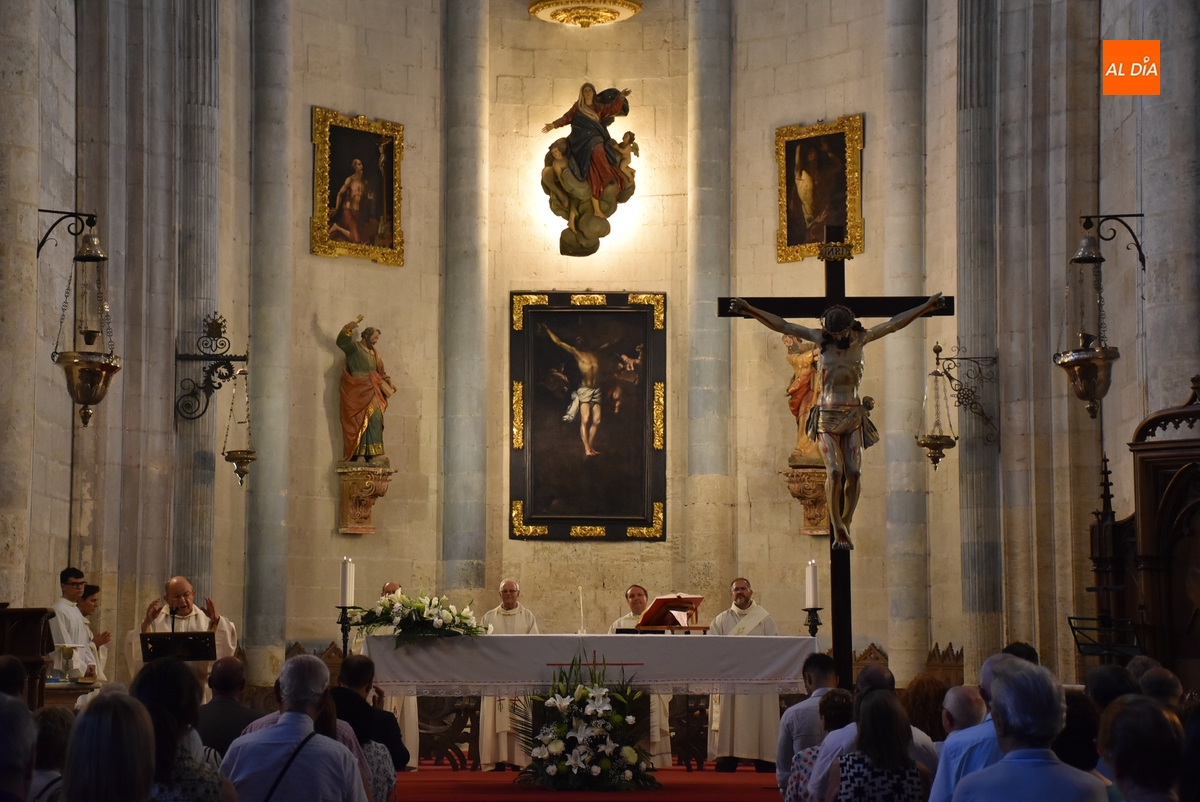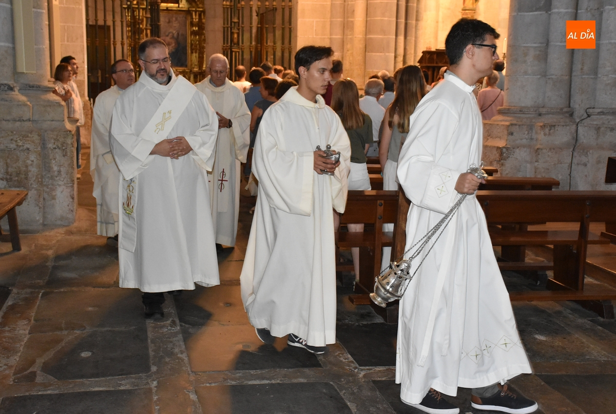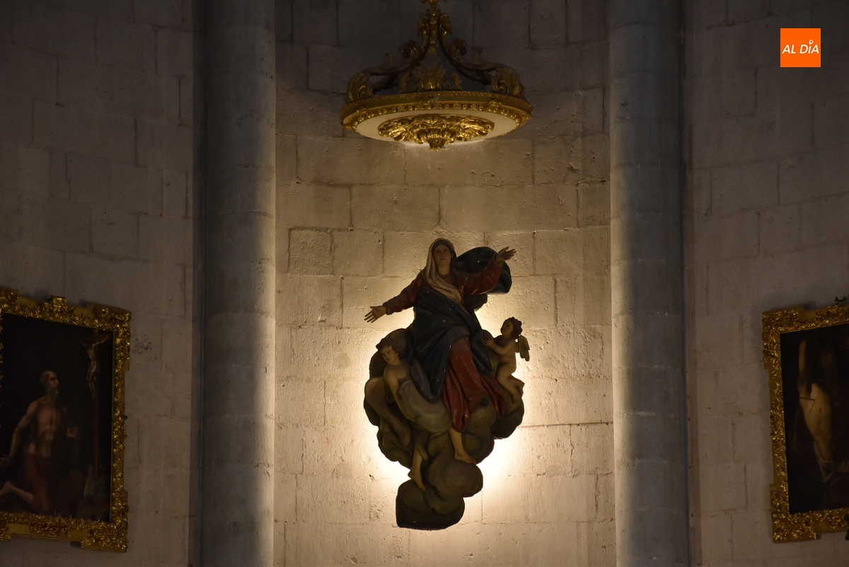 La Catedral de Santa María de Ciudad Rodrigo está viviendo este viernes 15 de agosto su día grande, con motivo de la celebración de la festividad de la Solemnidad de la Asunción de María, patrona y titular de la Seo mirobrigense, donde preside su presbiterio, además de aparecer en otros lugares del tempo.