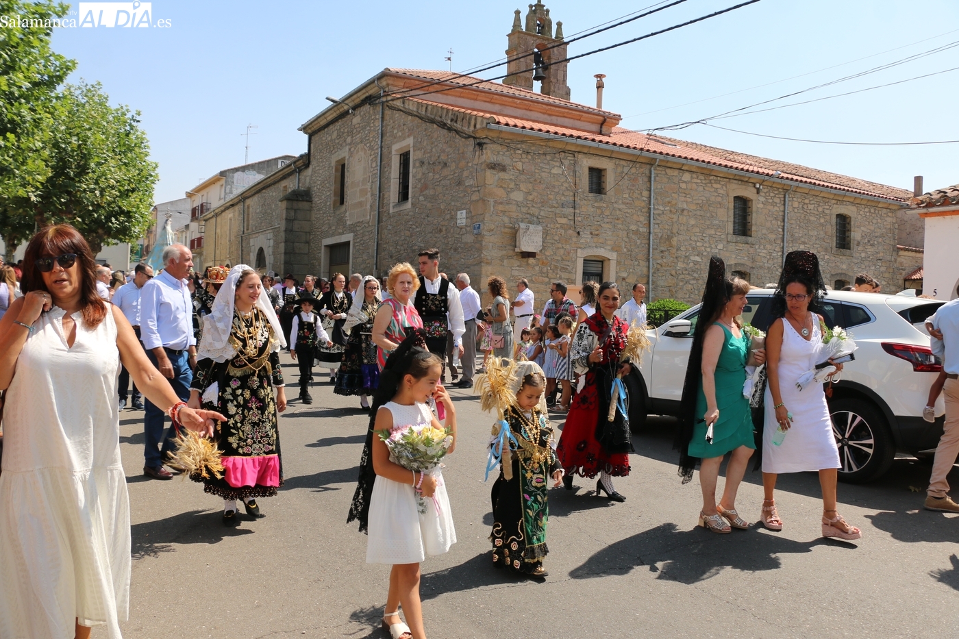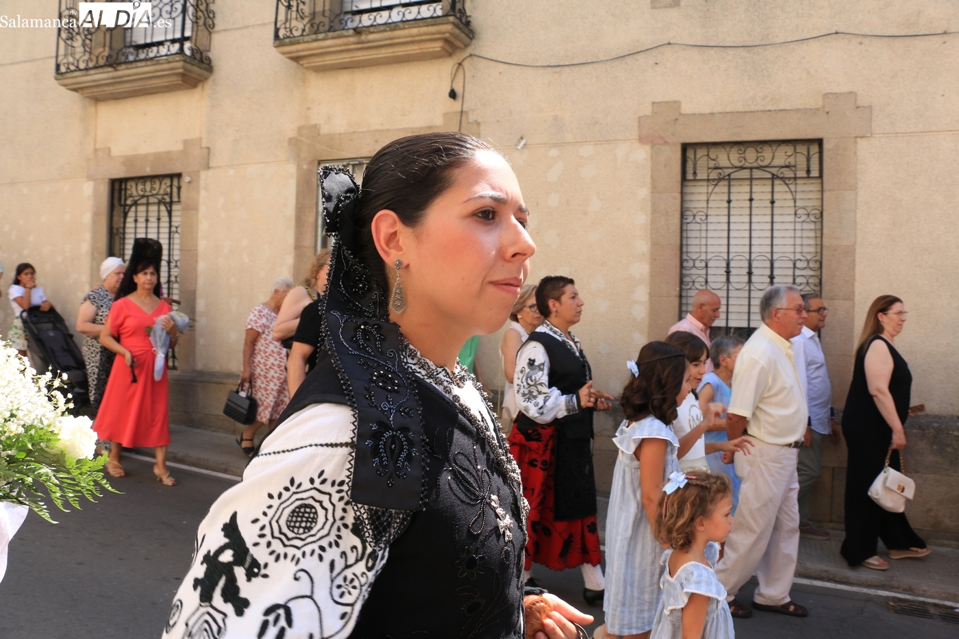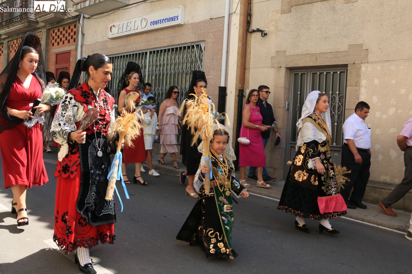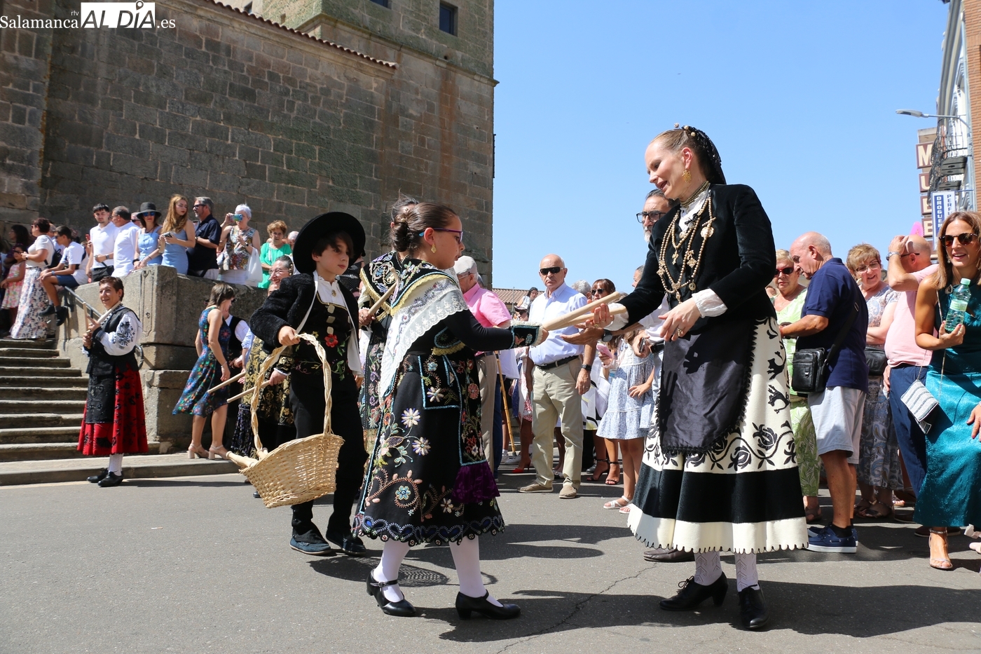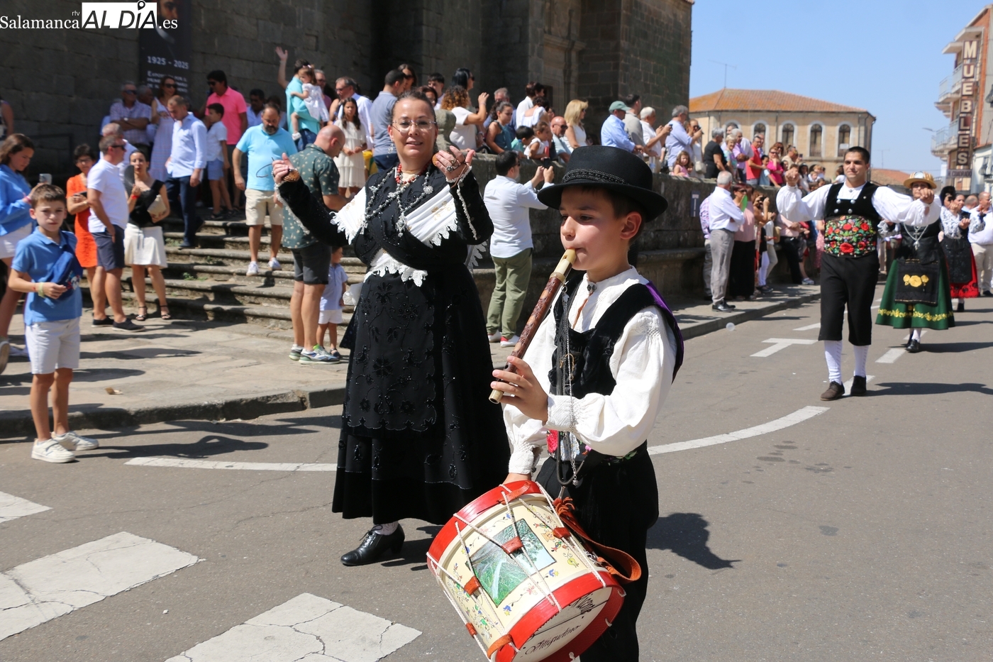 Tras la misa concelebrada y oficiada por el párrolco local Francisco Fraile, con presencia de autoridades locales, entre los que se encontraba el alcalde Javier Muñiz, acompañado del teniente de alcalde Chago Vicente con la concejala Isabel Cañizal, las campanas de la iglesia anunciaban la salida de la Virgen del Socorro a hombros de sus fieles y escoltada por sus mayordomas. Entre tanto, los sones de la gaita y el tamboril del joven tamborilero de Vitigudino, de 10 años de edad, Mateo Vicente, comenzaban a escucharse para recibir en la calle a Nuestra Señora, donde la aguardaban los integrantes del grupo de folclore Organza para ofrecerle una danza de paleo.