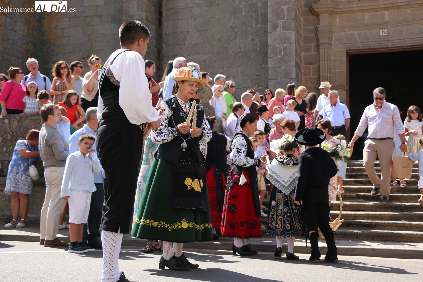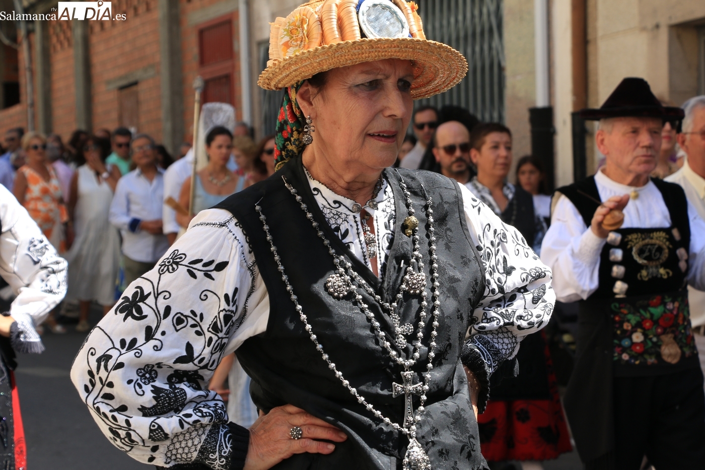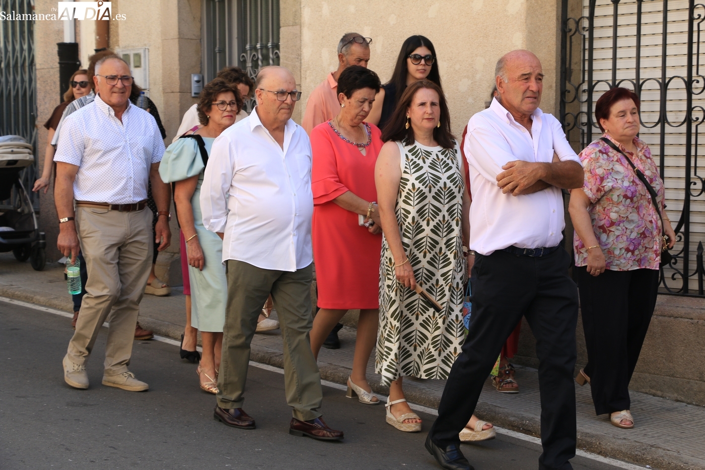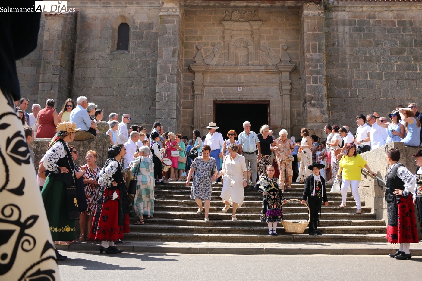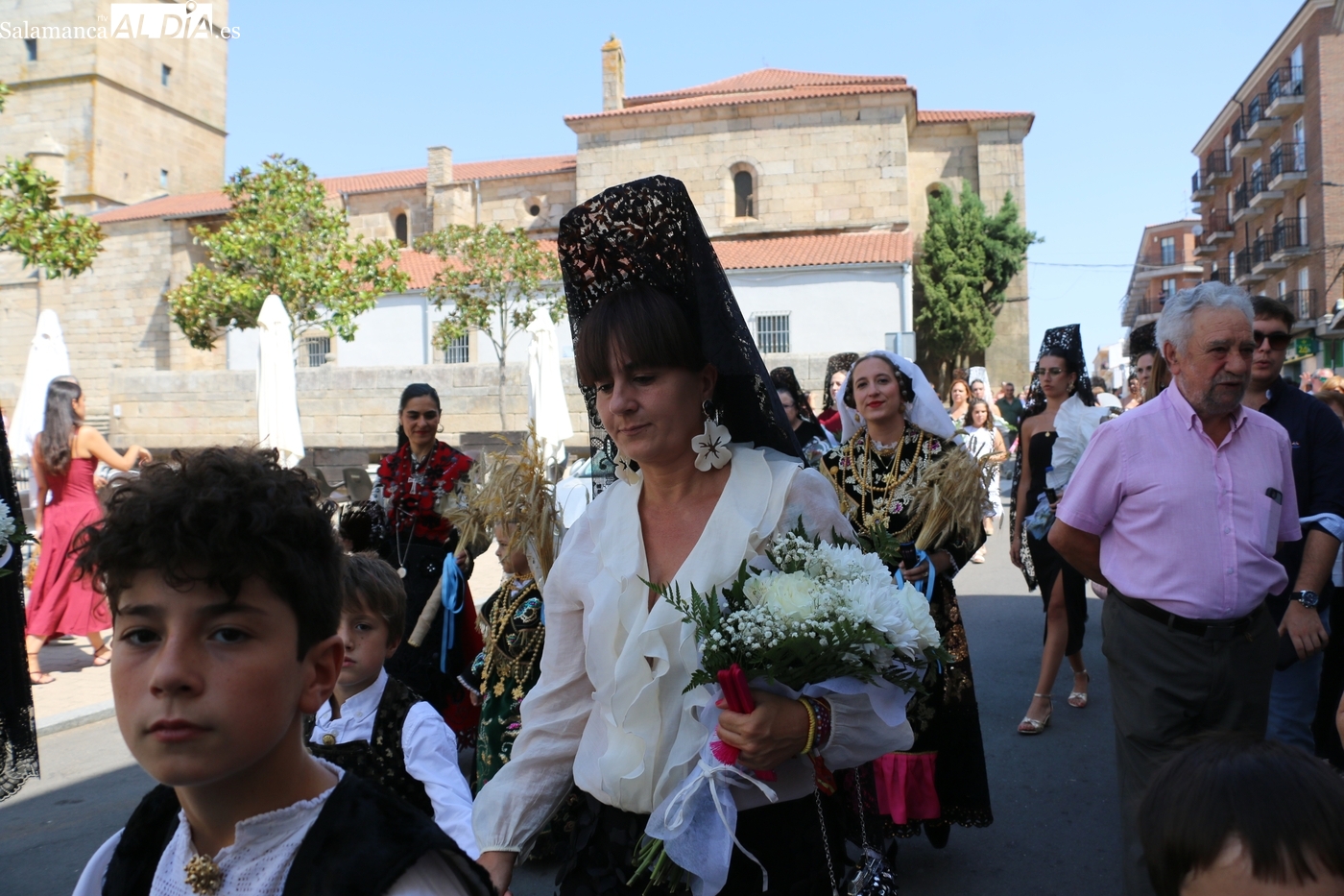 Tras la misa concelebrada y oficiada por el párrolco local Francisco Fraile, con presencia de autoridades locales, entre los que se encontraba el alcalde Javier Muñiz, acompañado del teniente de alcalde Chago Vicente con la concejala Isabel Cañizal, las campanas de la iglesia anunciaban la salida de la Virgen del Socorro a hombros de sus fieles y escoltada por sus mayordomas. Entre tanto, los sones de la gaita y el tamboril del joven tamborilero de Vitigudino, de 10 años de edad, Mateo Vicente, comenzaban a escucharse para recibir en la calle a Nuestra Señora, donde la aguardaban los integrantes del grupo de folclore Organza para ofrecerle una danza de paleo.