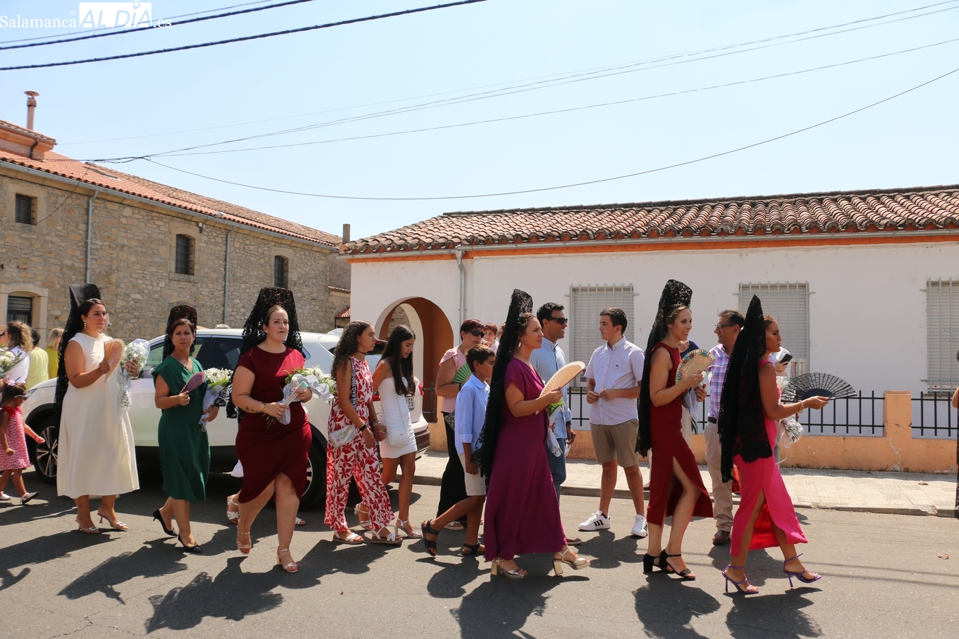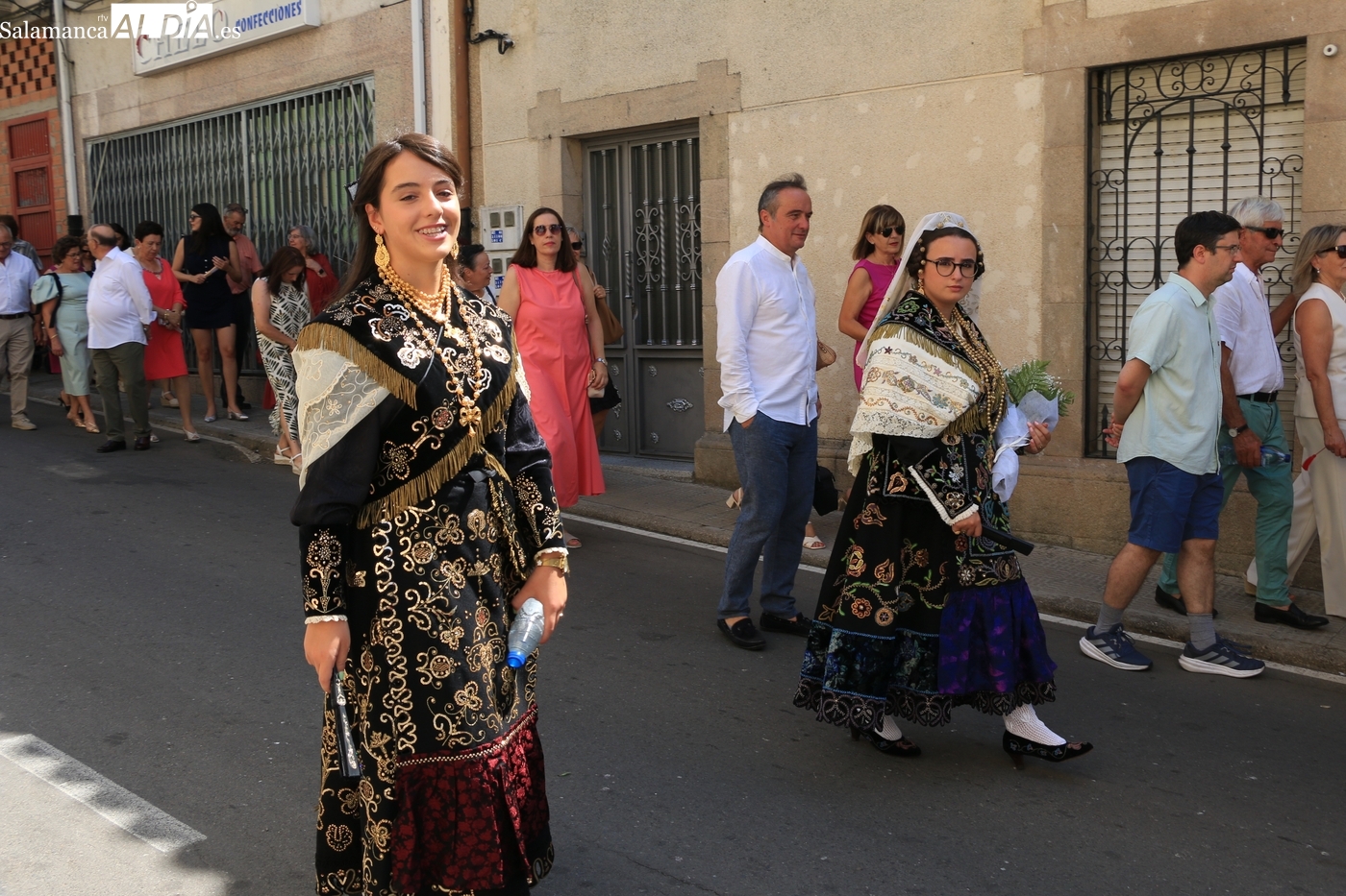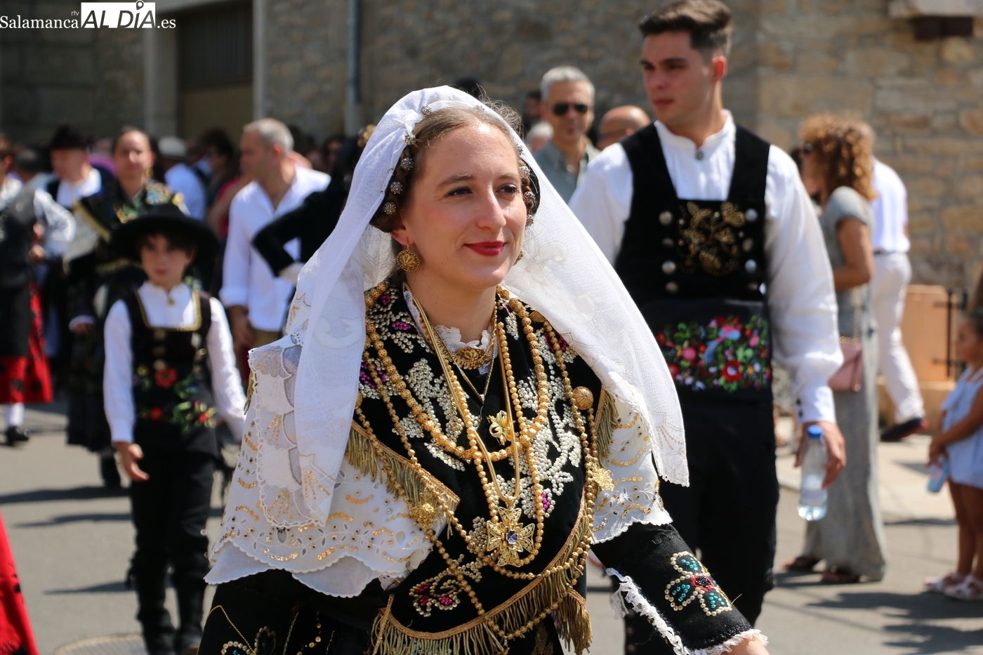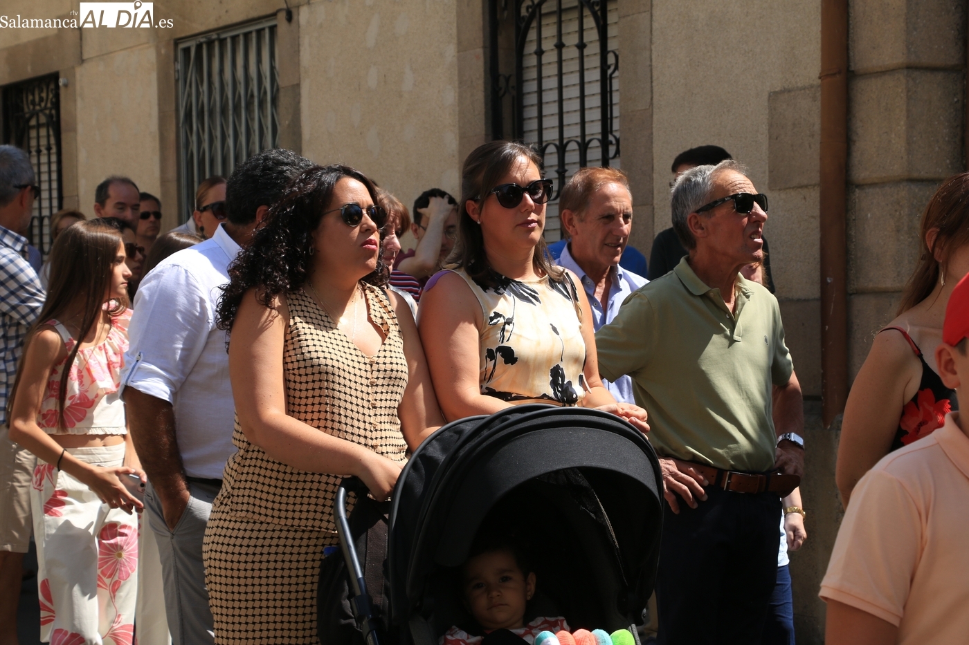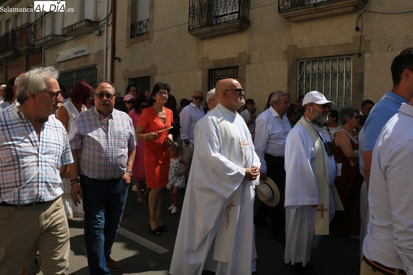 Tras la misa concelebrada y oficiada por el párrolco local Francisco Fraile, con presencia de autoridades locales, entre los que se encontraba el alcalde Javier Muñiz, acompañado del teniente de alcalde Chago Vicente con la concejala Isabel Cañizal, las campanas de la iglesia anunciaban la salida de la Virgen del Socorro a hombros de sus fieles y escoltada por sus mayordomas. Entre tanto, los sones de la gaita y el tamboril del joven tamborilero de Vitigudino, de 10 años de edad, Mateo Vicente, comenzaban a escucharse para recibir en la calle a Nuestra Señora, donde la aguardaban los integrantes del grupo de folclore Organza para ofrecerle una danza de paleo.