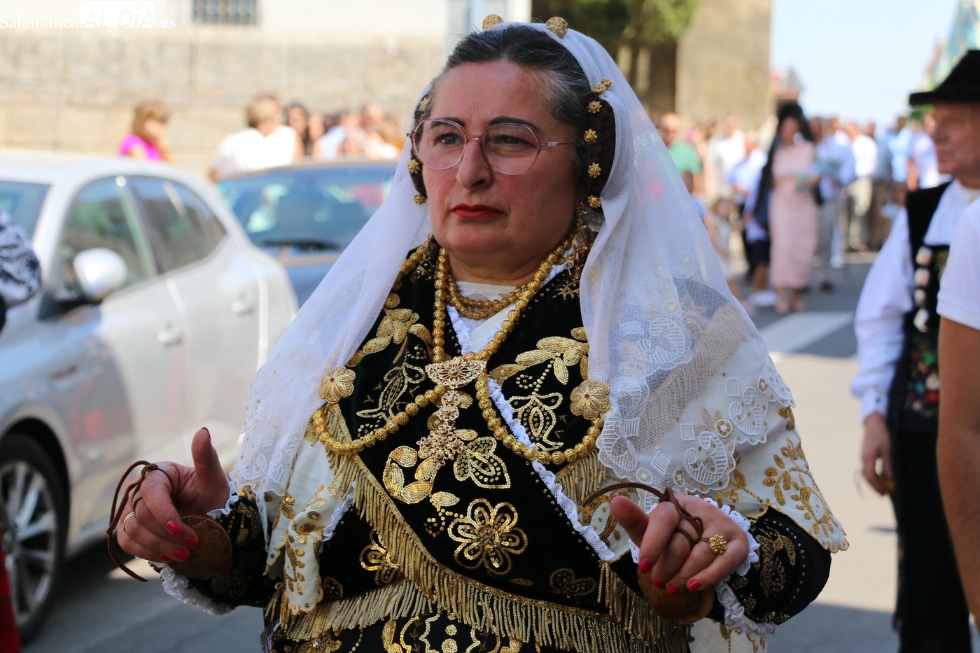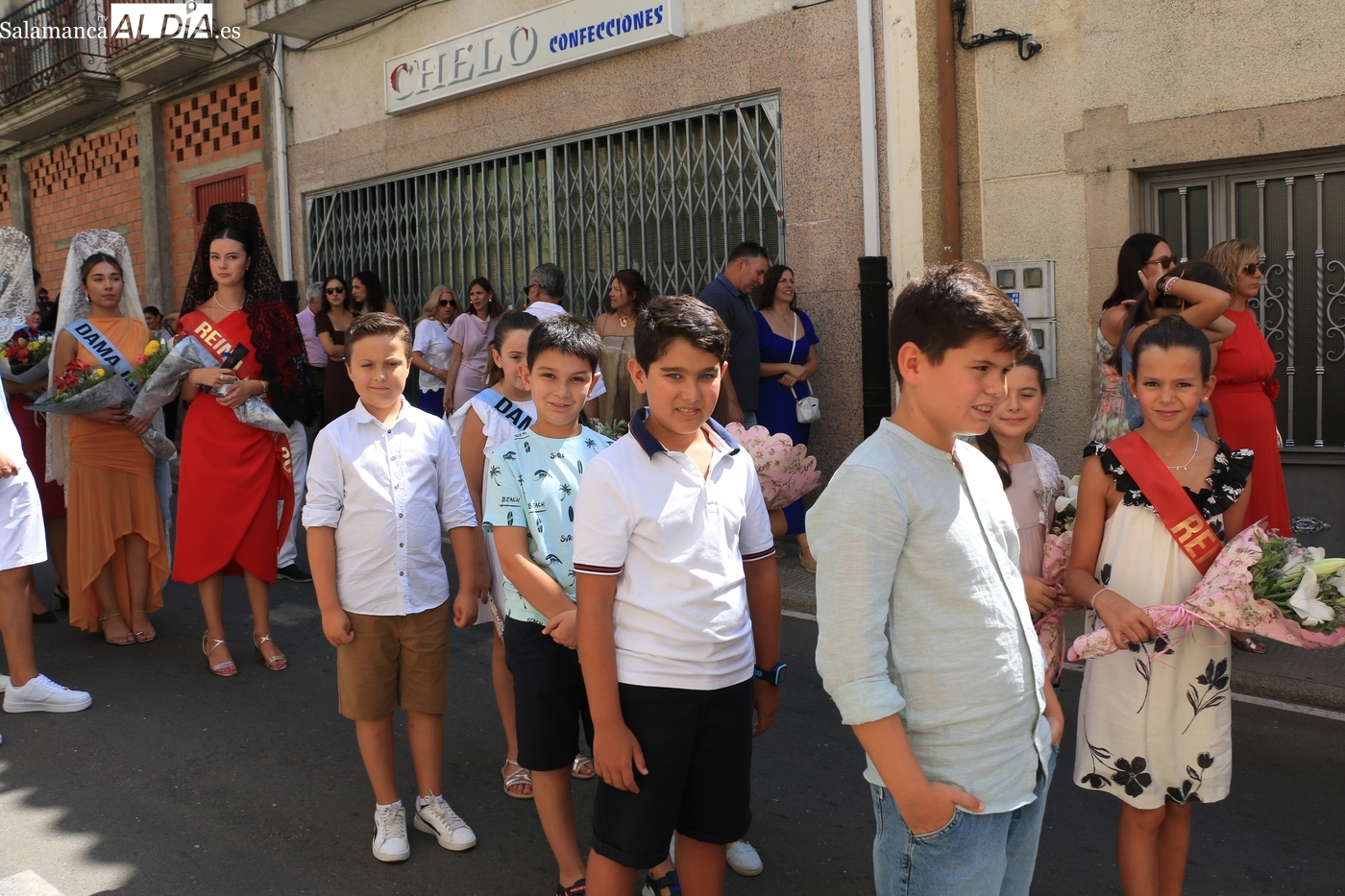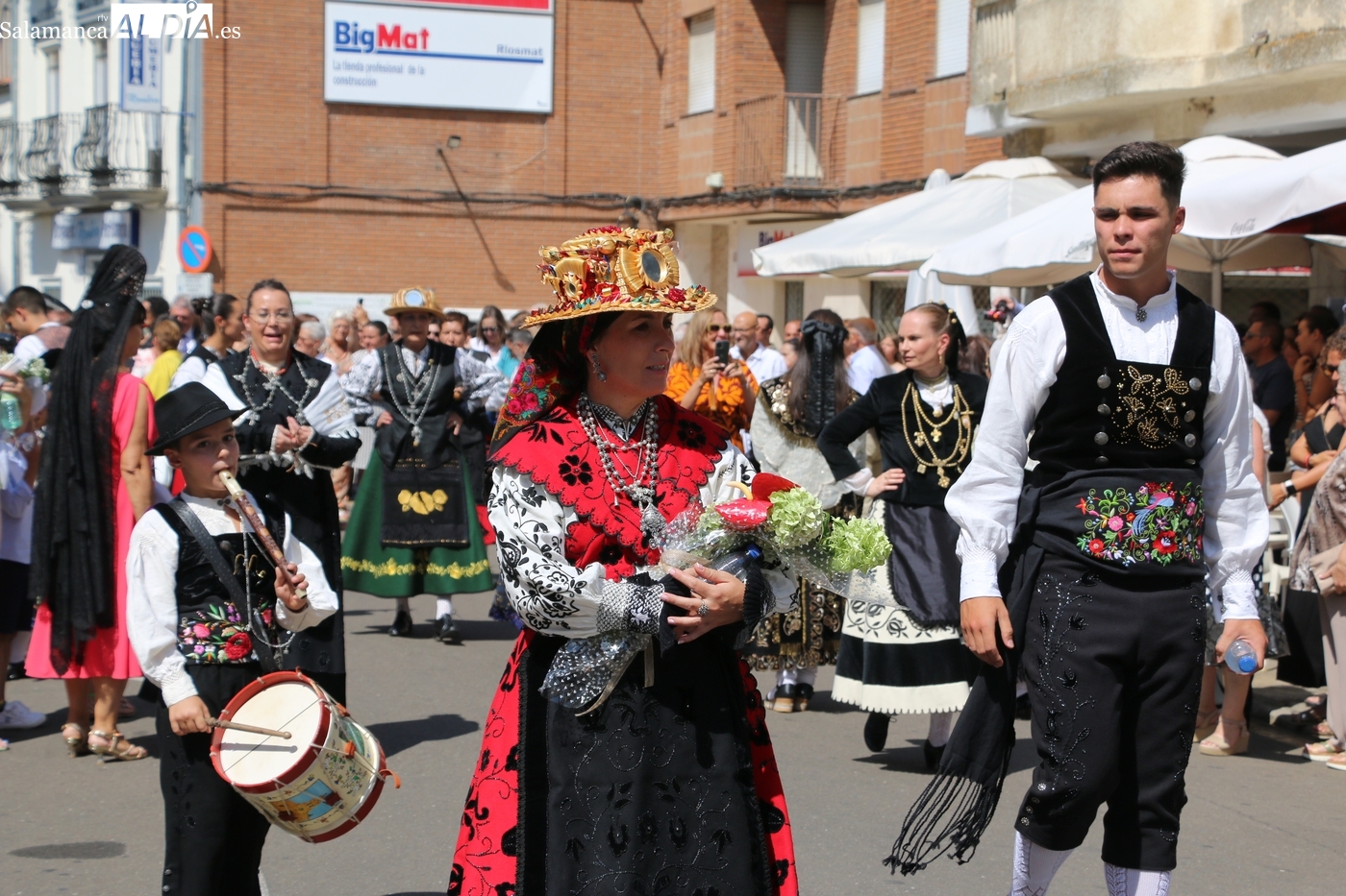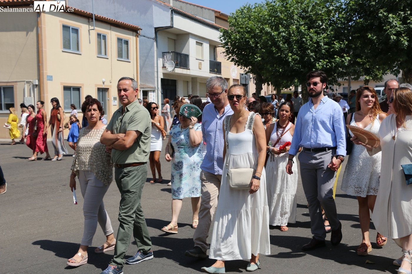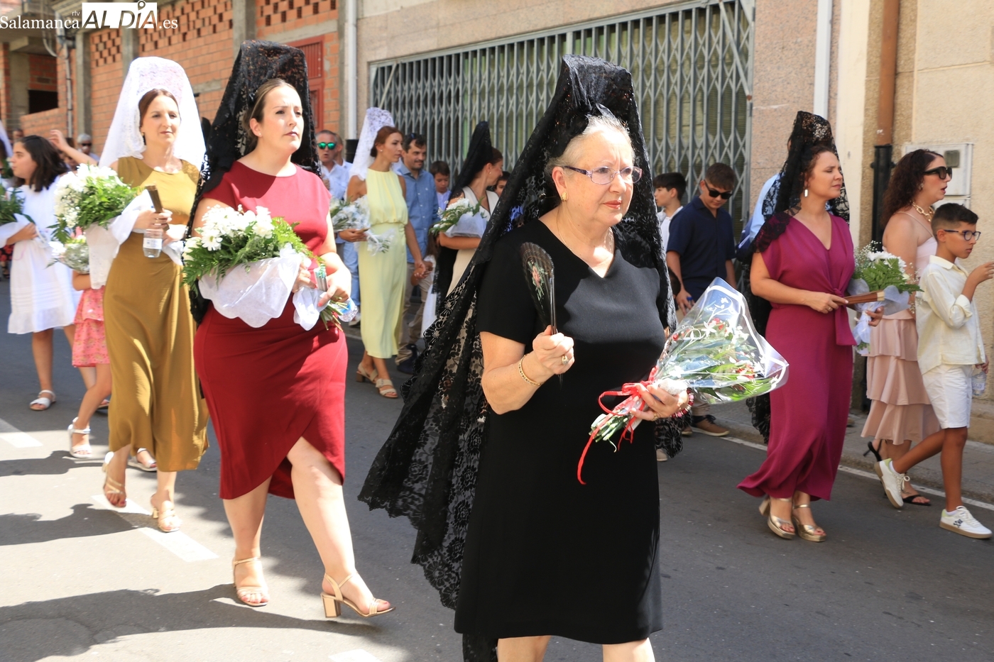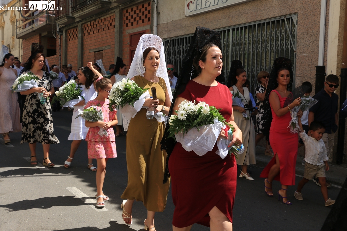 Tras la misa concelebrada y oficiada por el párrolco local Francisco Fraile, con presencia de autoridades locales, entre los que se encontraba el alcalde Javier Muñiz, acompañado del teniente de alcalde Chago Vicente con la concejala Isabel Cañizal, las campanas de la iglesia anunciaban la salida de la Virgen del Socorro a hombros de sus fieles y escoltada por sus mayordomas. Entre tanto, los sones de la gaita y el tamboril del joven tamborilero de Vitigudino, de 10 años de edad, Mateo Vicente, comenzaban a escucharse para recibir en la calle a Nuestra Señora, donde la aguardaban los integrantes del grupo de folclore Organza para ofrecerle una danza de paleo.