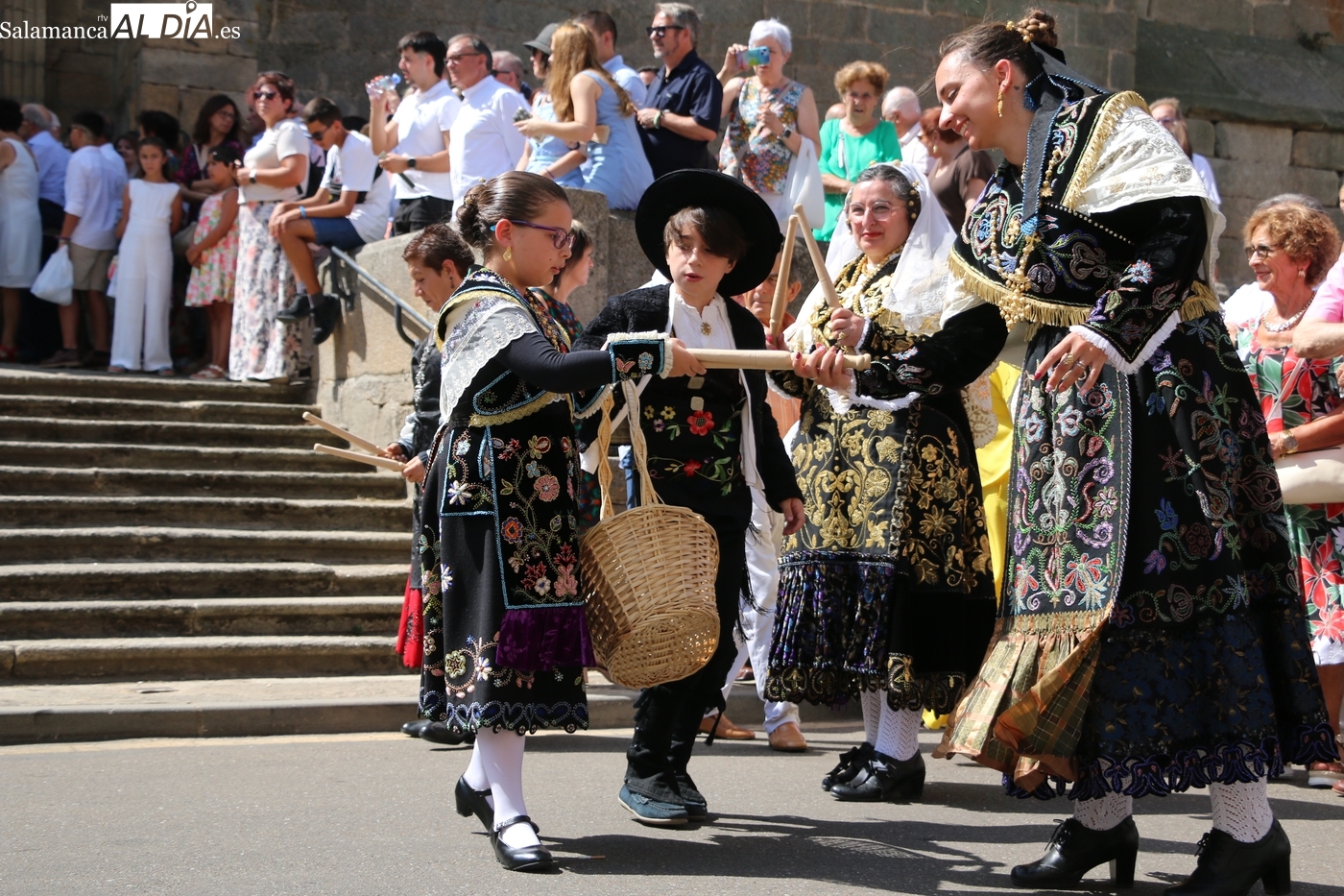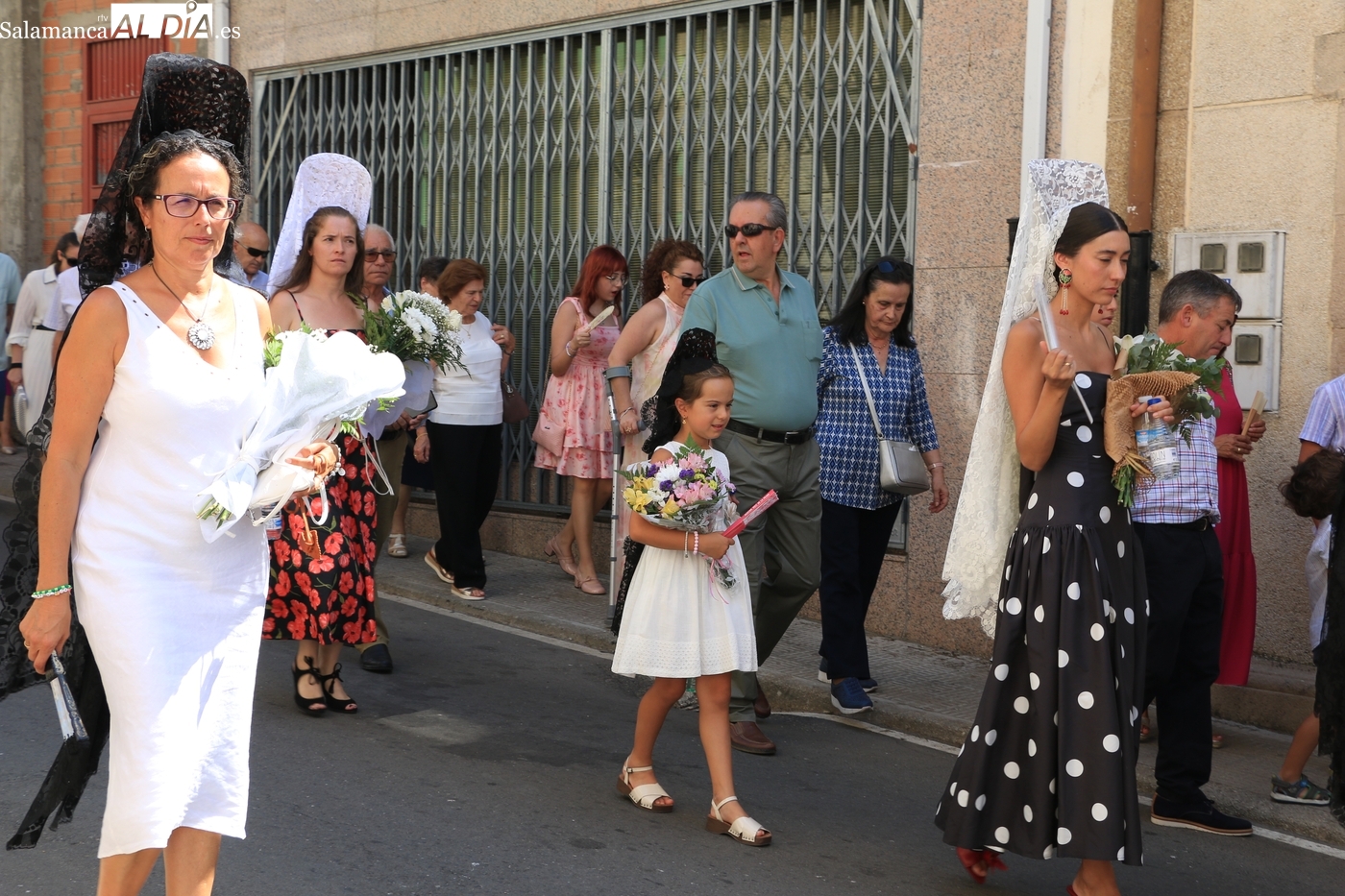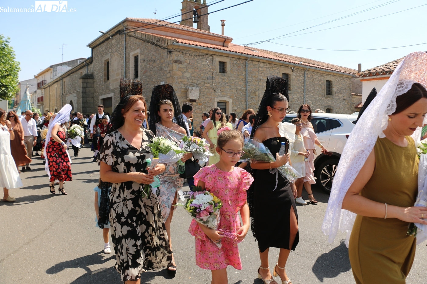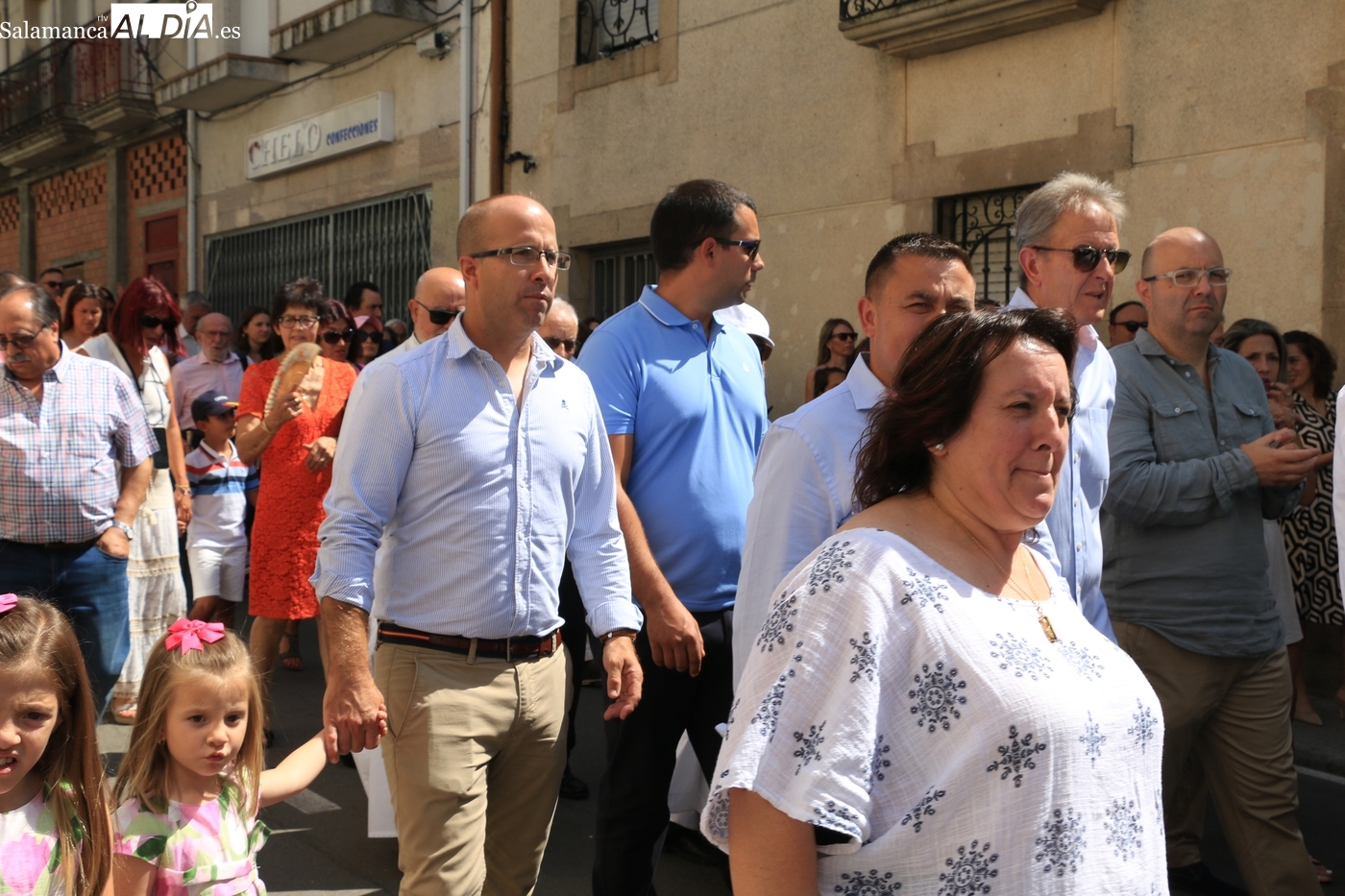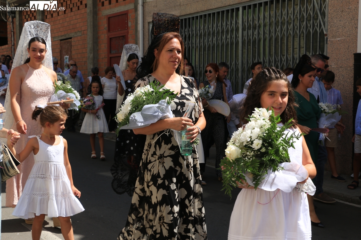 Tras la misa concelebrada y oficiada por el párrolco local Francisco Fraile, con presencia de autoridades locales, entre los que se encontraba el alcalde Javier Muñiz, acompañado del teniente de alcalde Chago Vicente con la concejala Isabel Cañizal, las campanas de la iglesia anunciaban la salida de la Virgen del Socorro a hombros de sus fieles y escoltada por sus mayordomas. Entre tanto, los sones de la gaita y el tamboril del joven tamborilero de Vitigudino, de 10 años de edad, Mateo Vicente, comenzaban a escucharse para recibir en la calle a Nuestra Señora, donde la aguardaban los integrantes del grupo de folclore Organza para ofrecerle una danza de paleo.