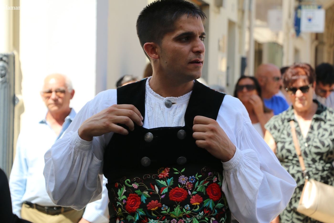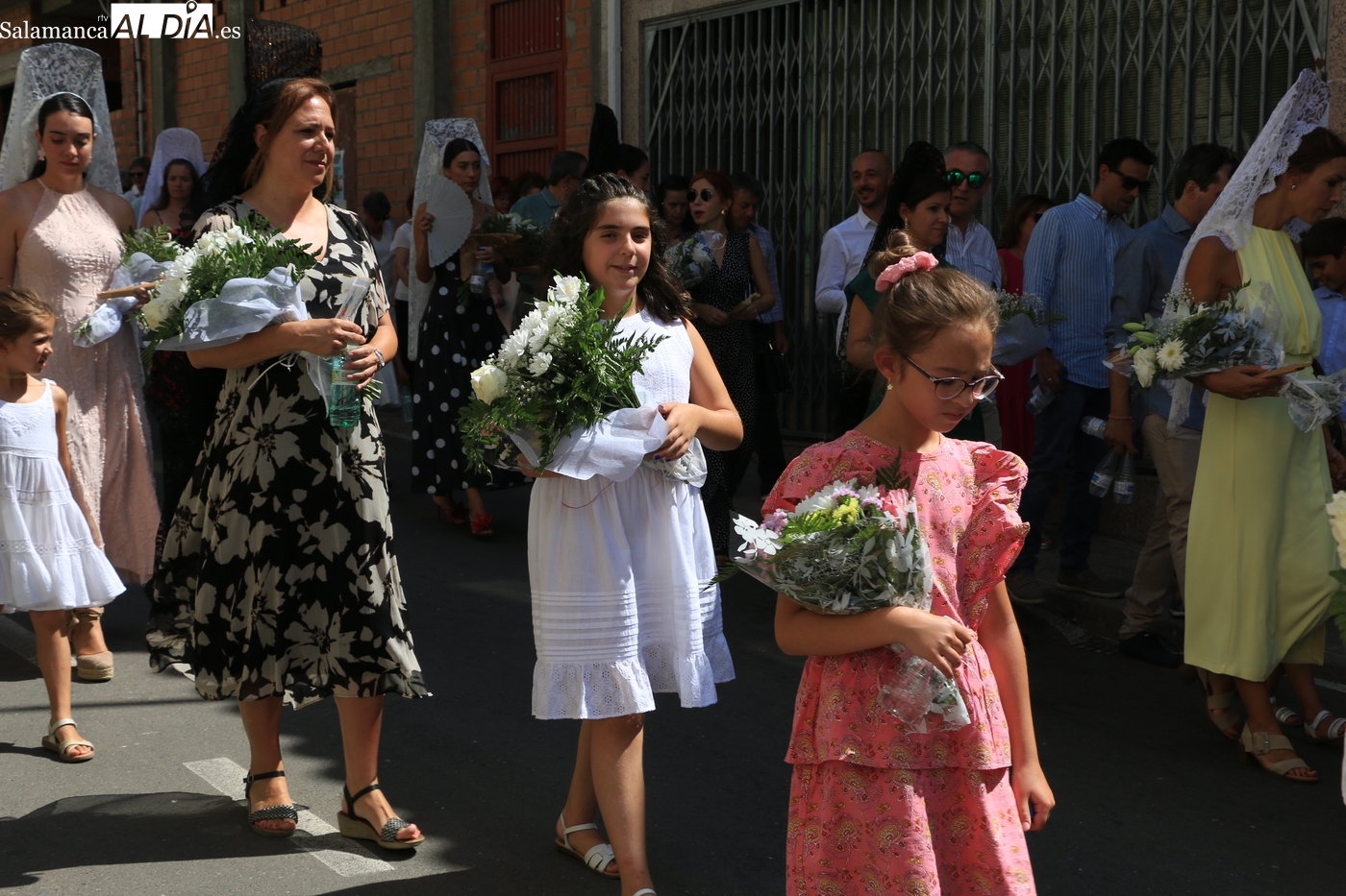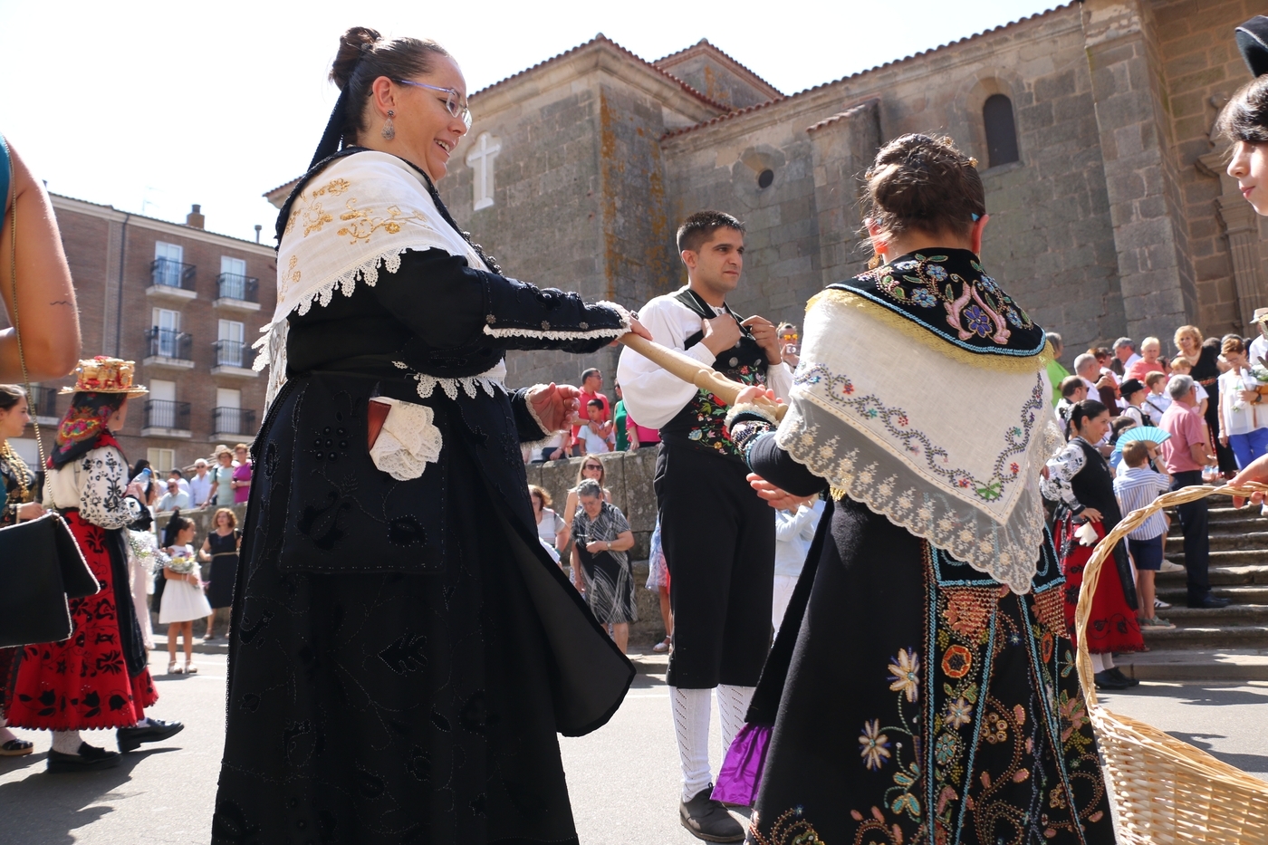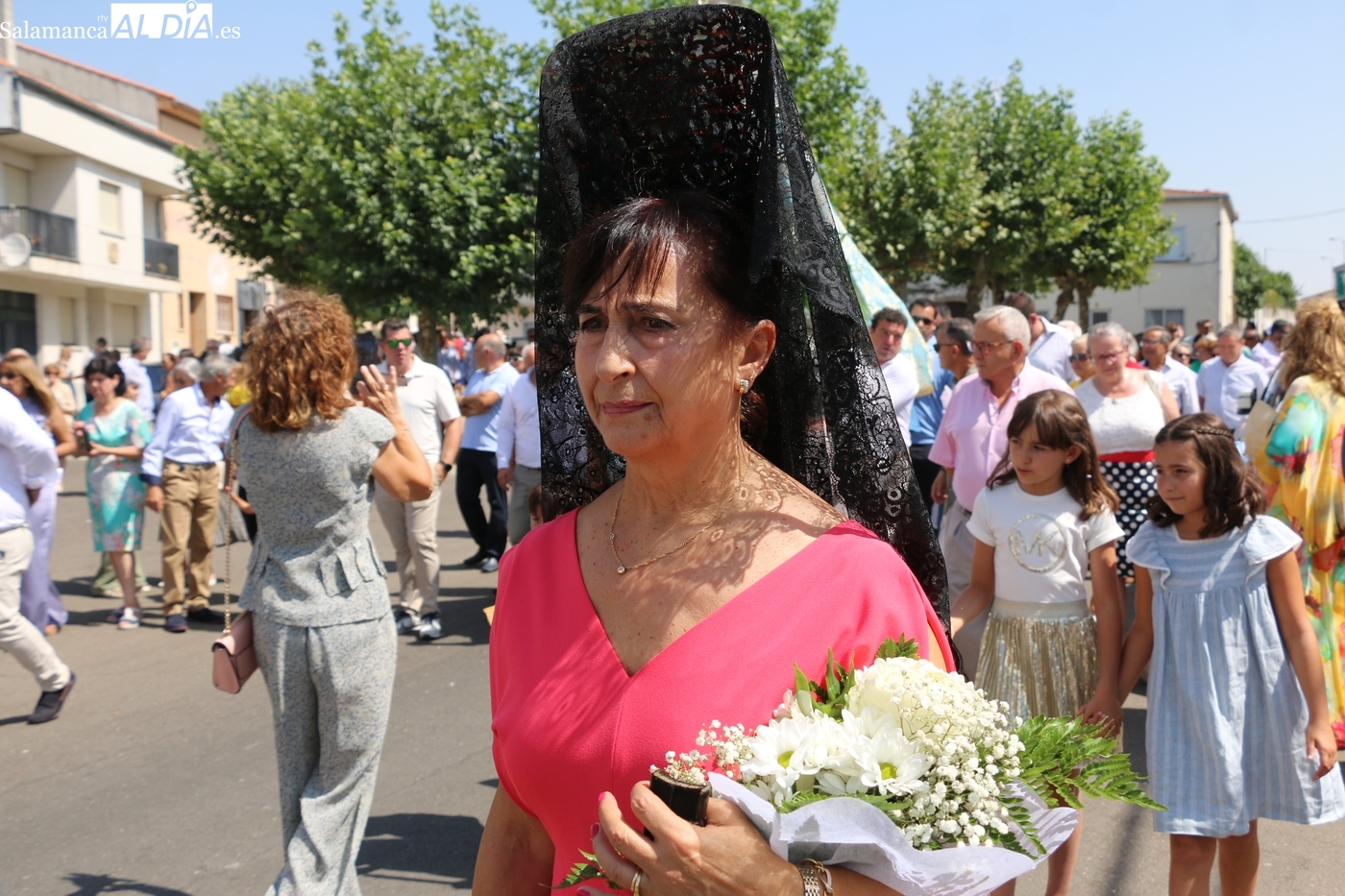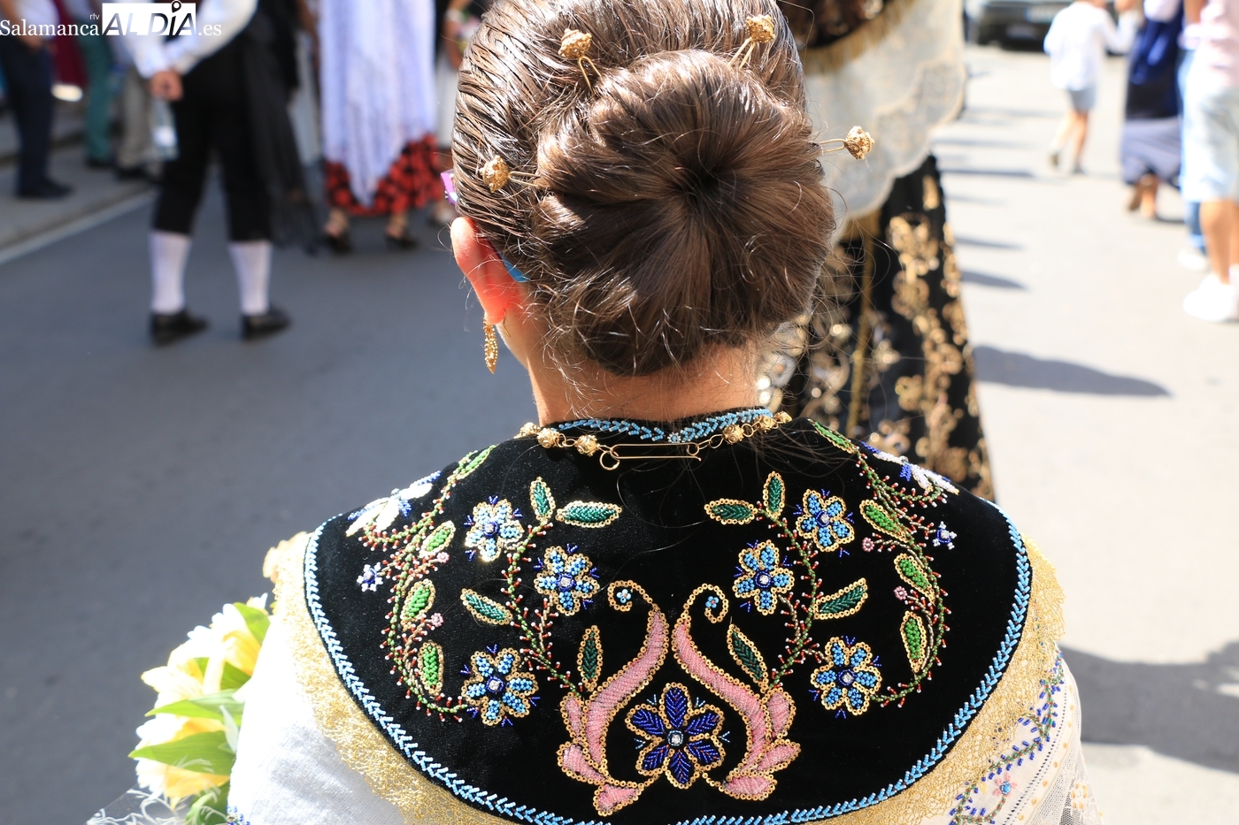 Tras la misa concelebrada y oficiada por el párrolco local Francisco Fraile, con presencia de autoridades locales, entre los que se encontraba el alcalde Javier Muñiz, acompañado del teniente de alcalde Chago Vicente con la concejala Isabel Cañizal, las campanas de la iglesia anunciaban la salida de la Virgen del Socorro a hombros de sus fieles y escoltada por sus mayordomas. Entre tanto, los sones de la gaita y el tamboril del joven tamborilero de Vitigudino, de 10 años de edad, Mateo Vicente, comenzaban a escucharse para recibir en la calle a Nuestra Señora, donde la aguardaban los integrantes del grupo de folclore Organza para ofrecerle una danza de paleo.