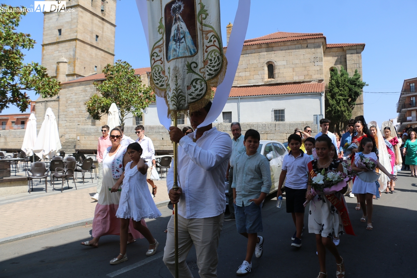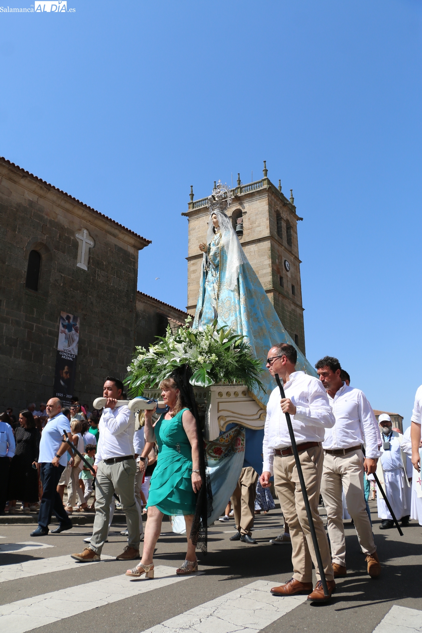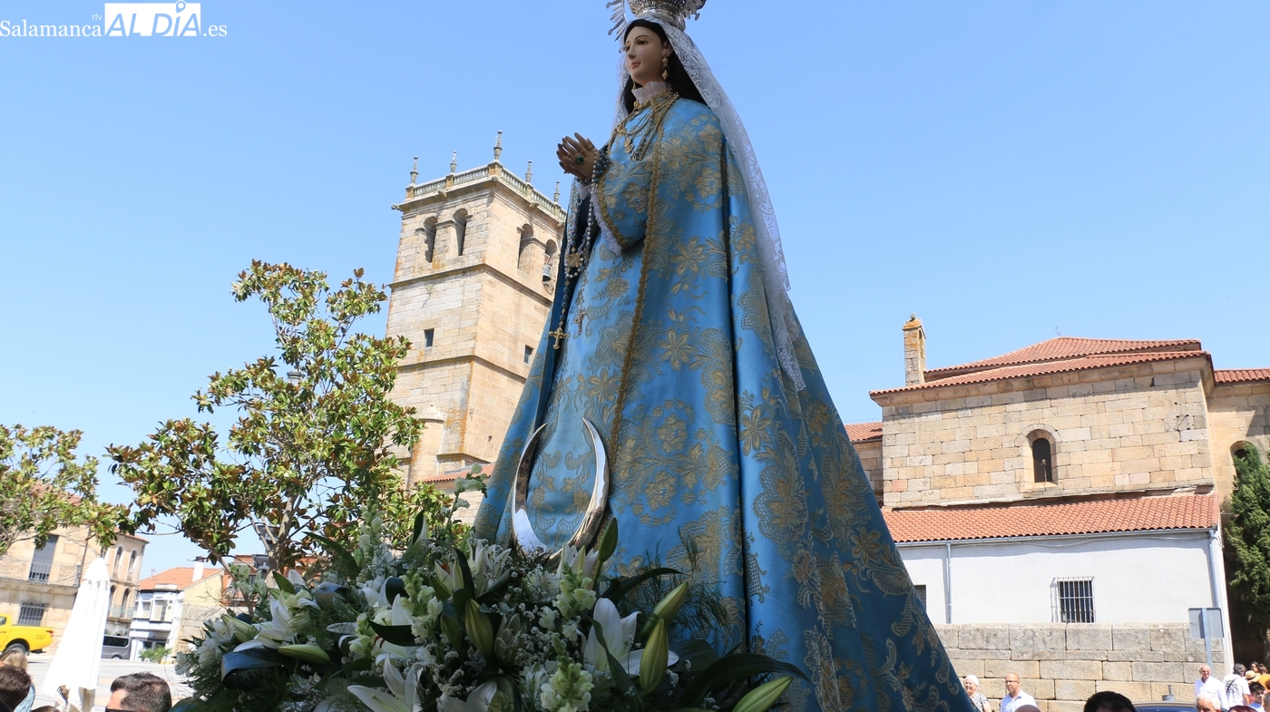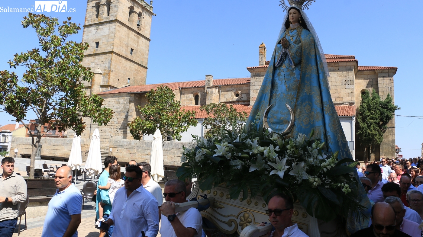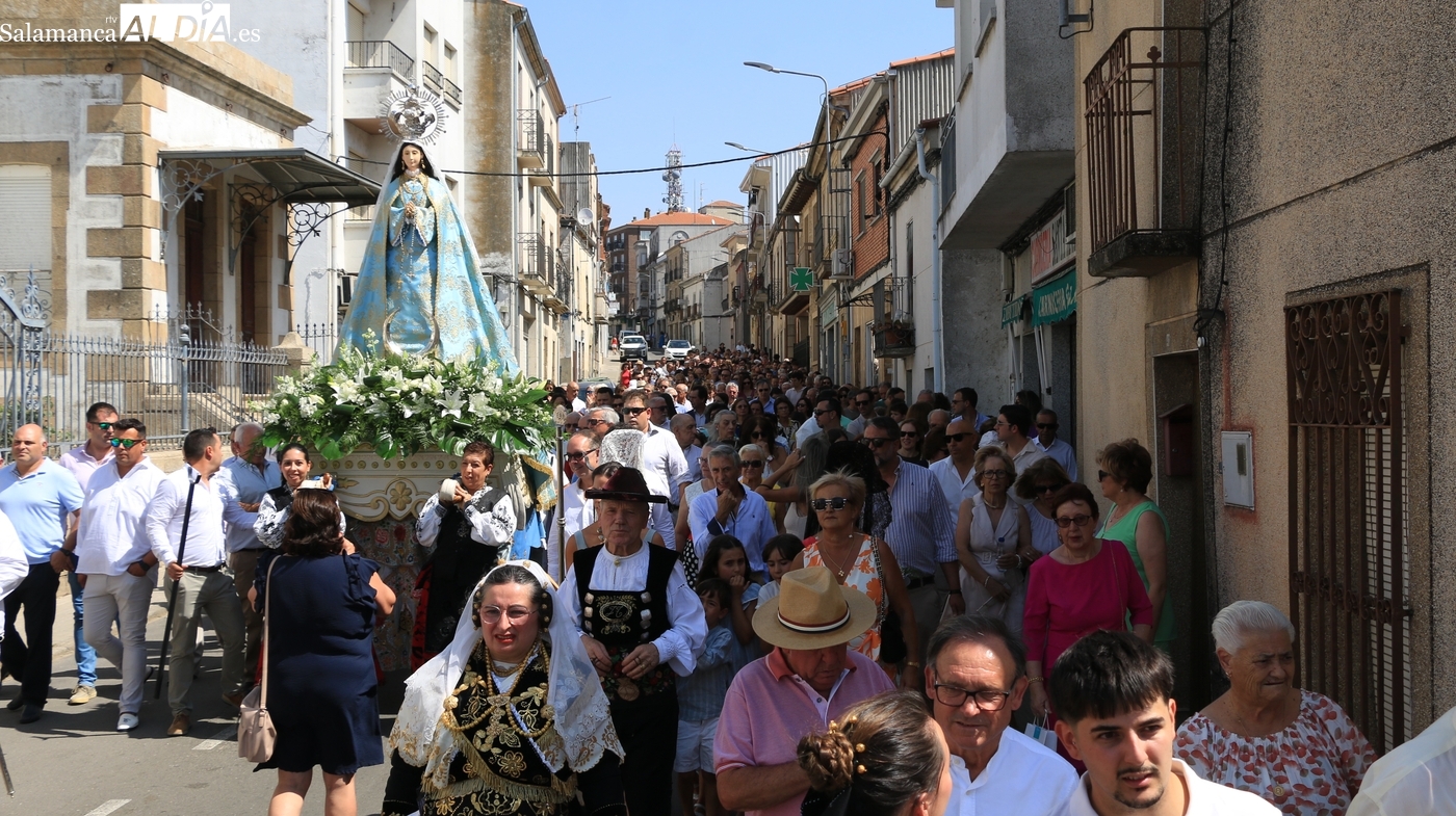 Como cada 15 de agosto, cientos de vitigudinenses acudieron fieles este día a su cita con la Virgen del Socorro, una jornada que tendría como principales protagonistas a sus mayordomos, los hermanos Laura y Alberto Moro Pérez, que varas en mano guiaron a Nuestra Señora en la procesión de regreso a la ermita en su advocación.