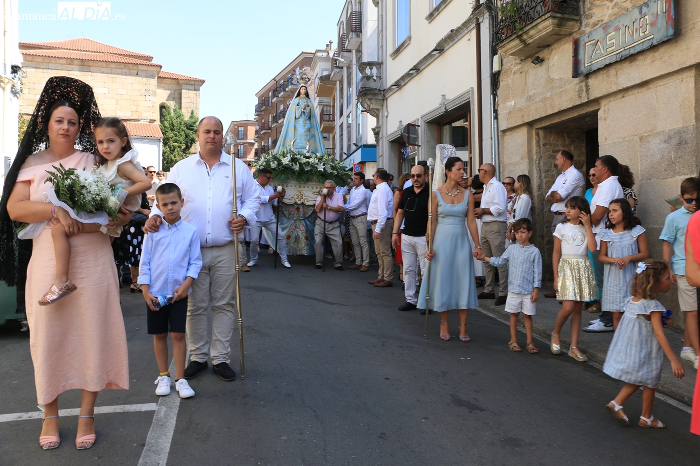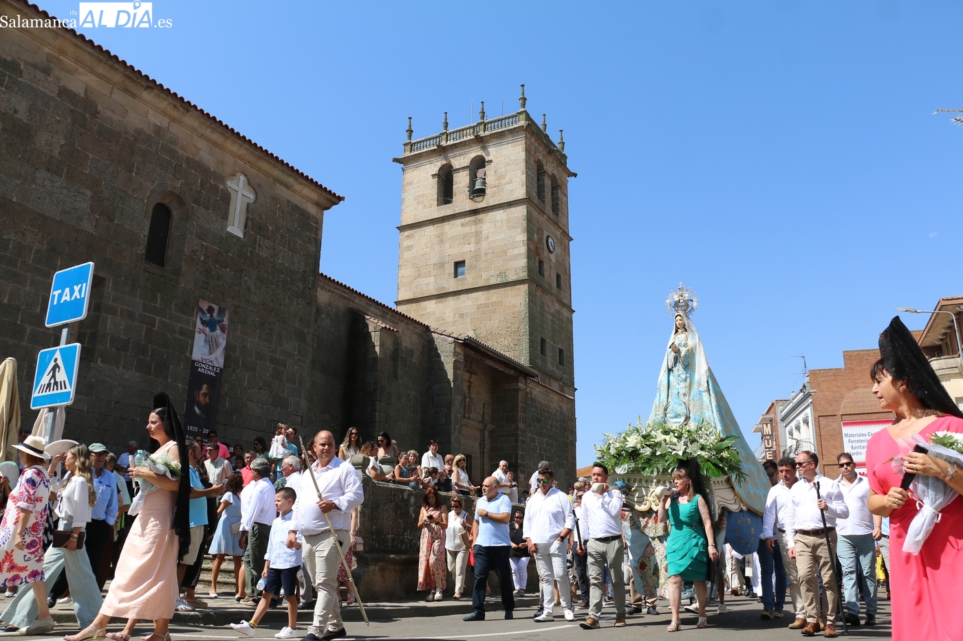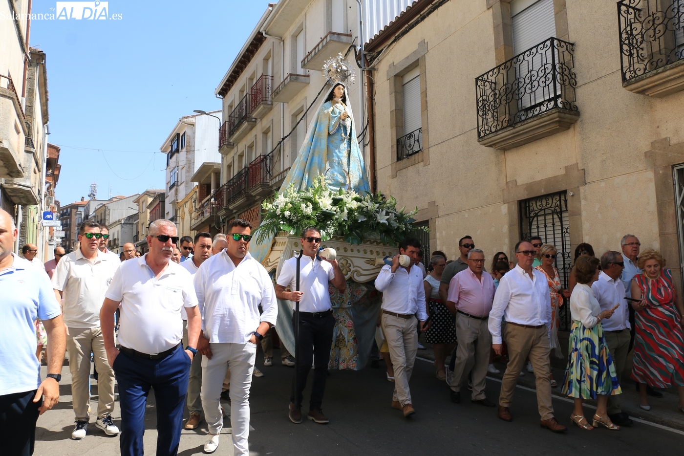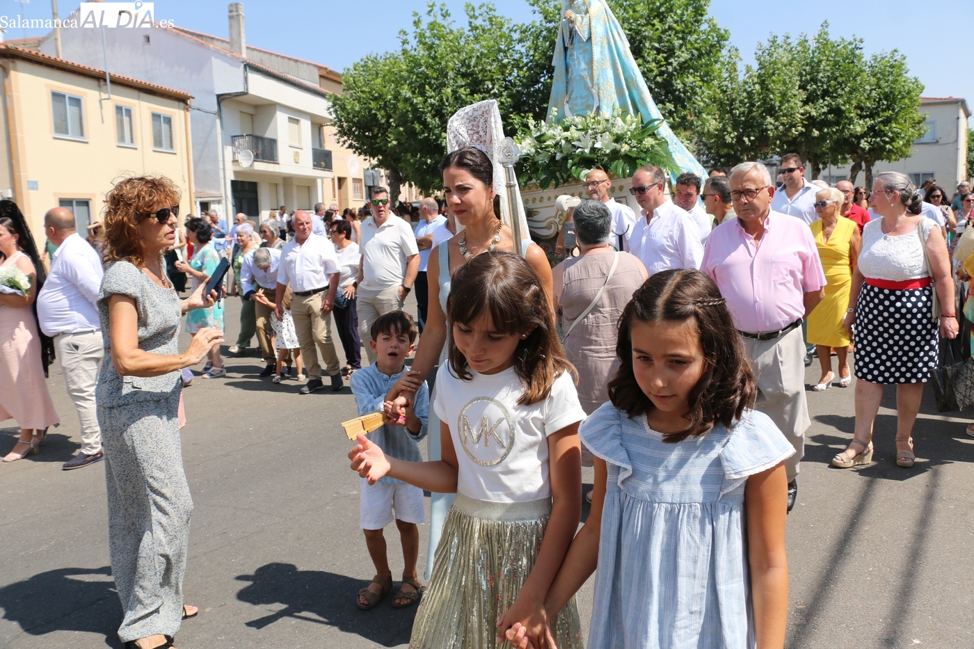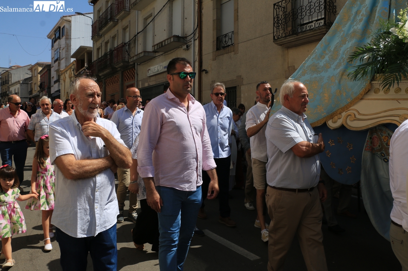 Como cada 15 de agosto, cientos de vitigudinenses acudieron fieles este día a su cita con la Virgen del Socorro, una jornada que tendría como principales protagonistas a sus mayordomos, los hermanos Laura y Alberto Moro Pérez, que varas en mano guiaron a Nuestra Señora en la procesión de regreso a la ermita en su advocación.
