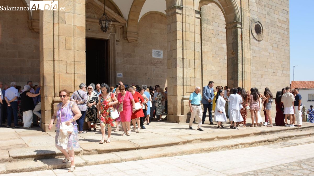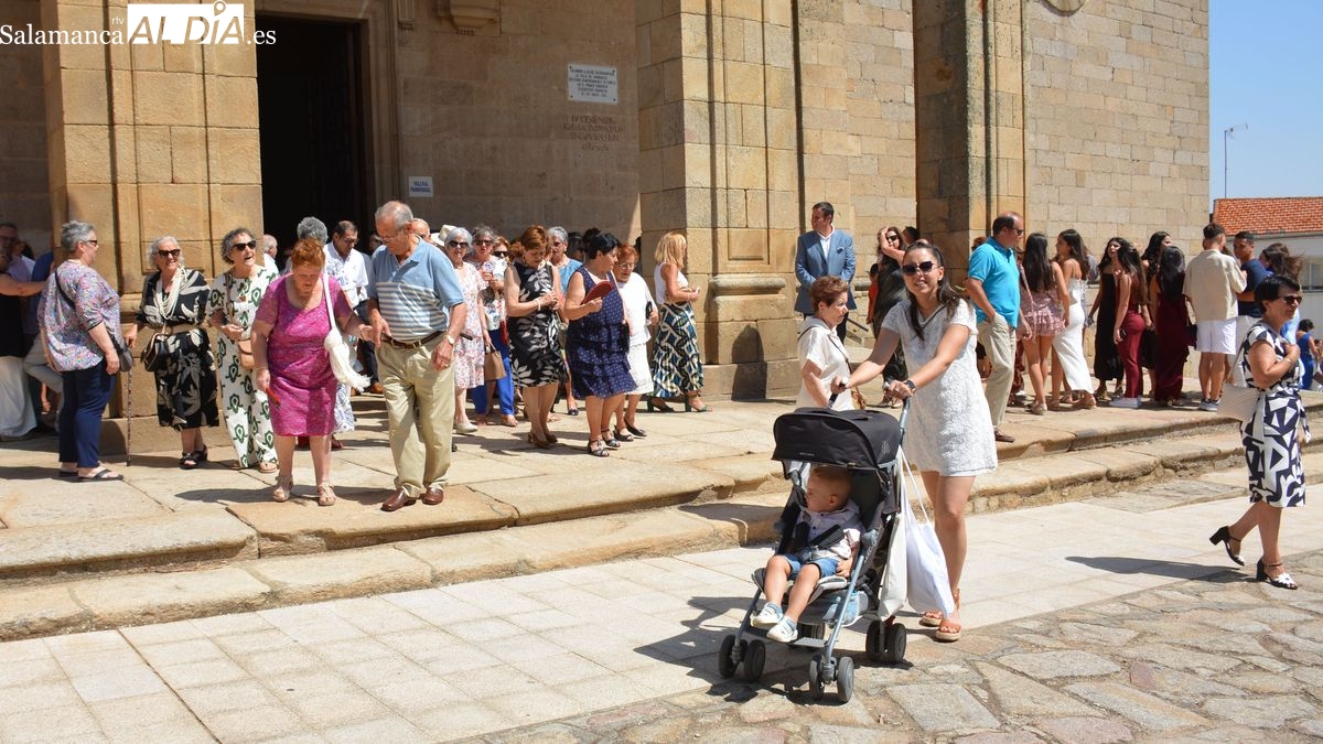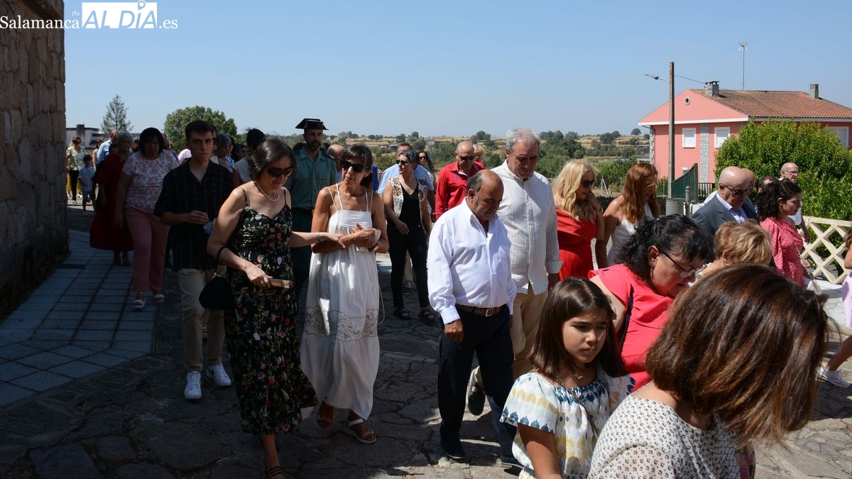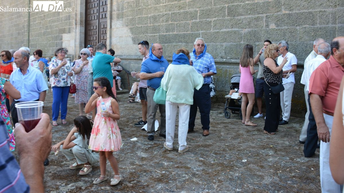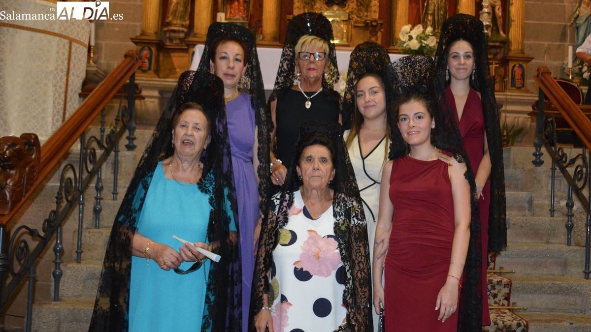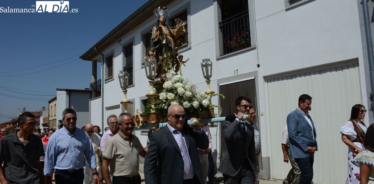 Lumbrales está viviendo hoy, día 15 de agosto, el día de su patrona, La Virgen de la Asunción, una celebración centrada en los actos religiosos. A las 12 del mediodía se iniciaba una misa solemne en la iglesia parroquial, presidida por Andrés García, párroco insolidum de Lumbrales. Finalizada la eucaristía, los cientos de asistentes a la celebración esperaron a la puerta de la iglesia la salida de la imagen de la Patrona, que abrió el desfile procesional por el recorrido marcado por las calles Torrejón, San Vicente de Paul, Las Cruces, La Travesía, la Plaza de la Alegría, la calle El viento y de nuevo San Vicente de Paul hasta el templo parroquial. Un grupo de mujeres (María, Merche, Margarita y María Rosa) y de chicas muy jóvenes (Paula, Andrea y Rut) luciendo peineta y mantilla, acompañaron a la Patrona.