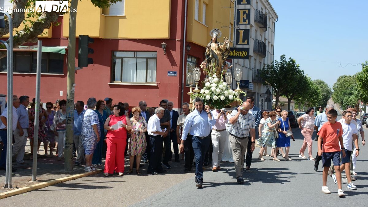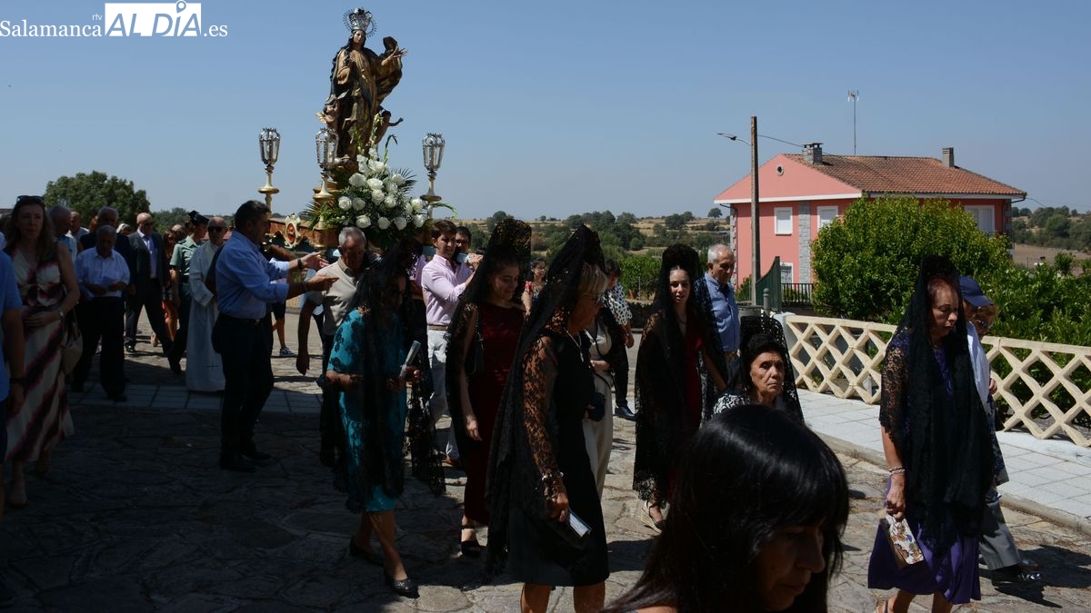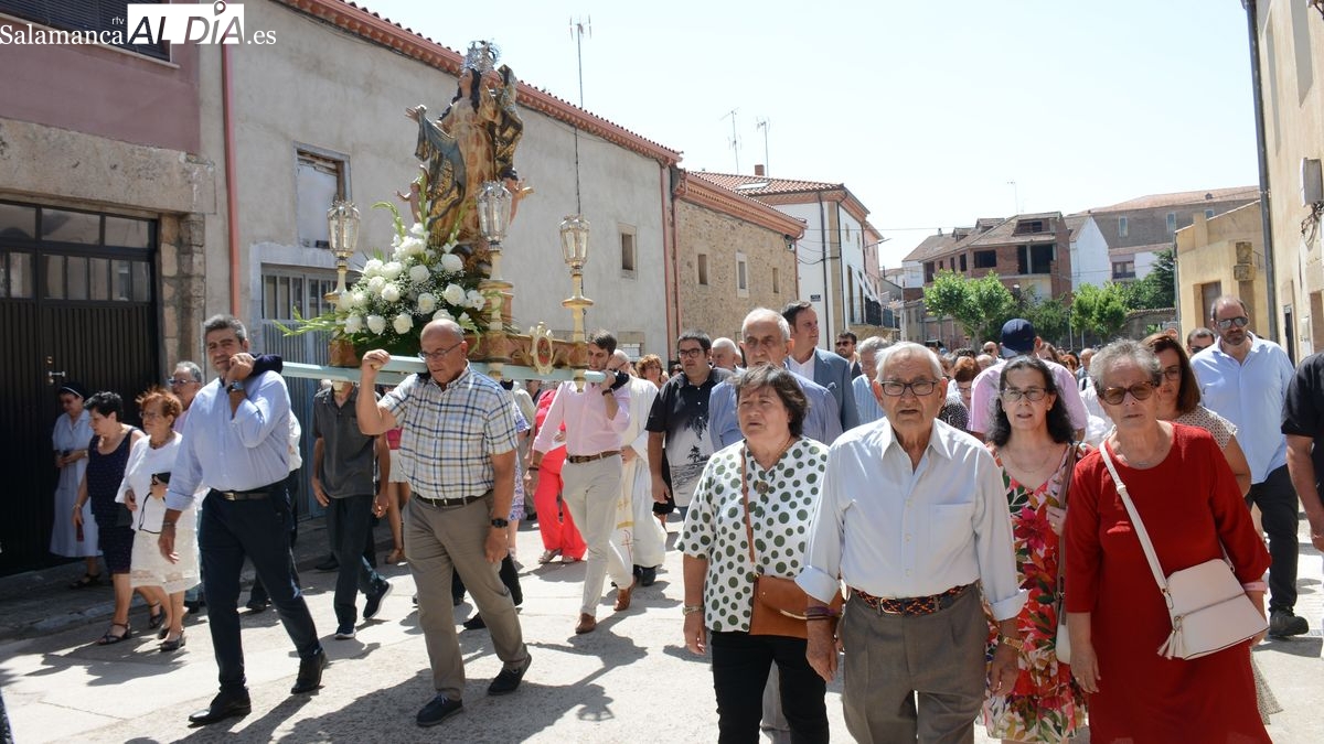 Cientos de personas acudieron a la misa y a la procesión con la imagen de la Virgen por varias calles de la localidad