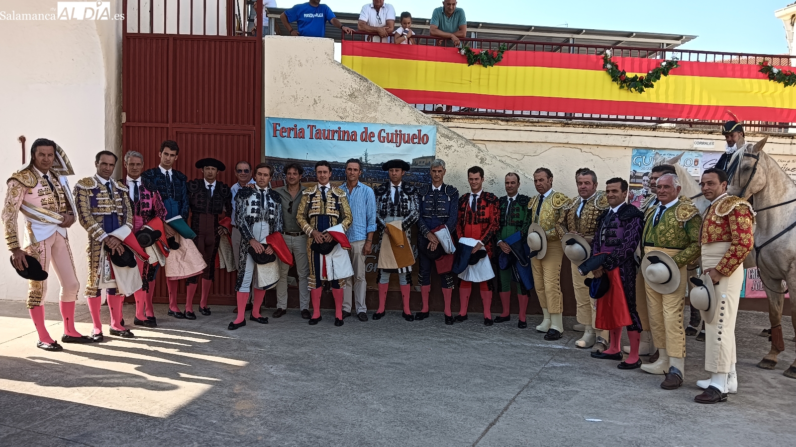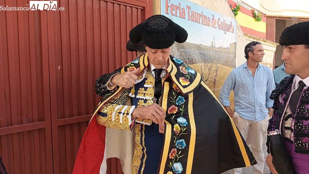 Ambientazo en el primer festejo de la Feria Taurina de Guijuelo para presenciar en directo la despedida de los ruedos de Pedro Gutiérrez 'El Capea'. El salmantino, tras 21 años de alternativa y más de 400 corridas de toros a sus espaldas, puso fin a su carrera con una encerrona en una plaza de toros de Guijuelo en la que se dieron cita muchas caras conocidas como Javier Conde, El Juli, Matías Tejela o Domingo López Chaves.