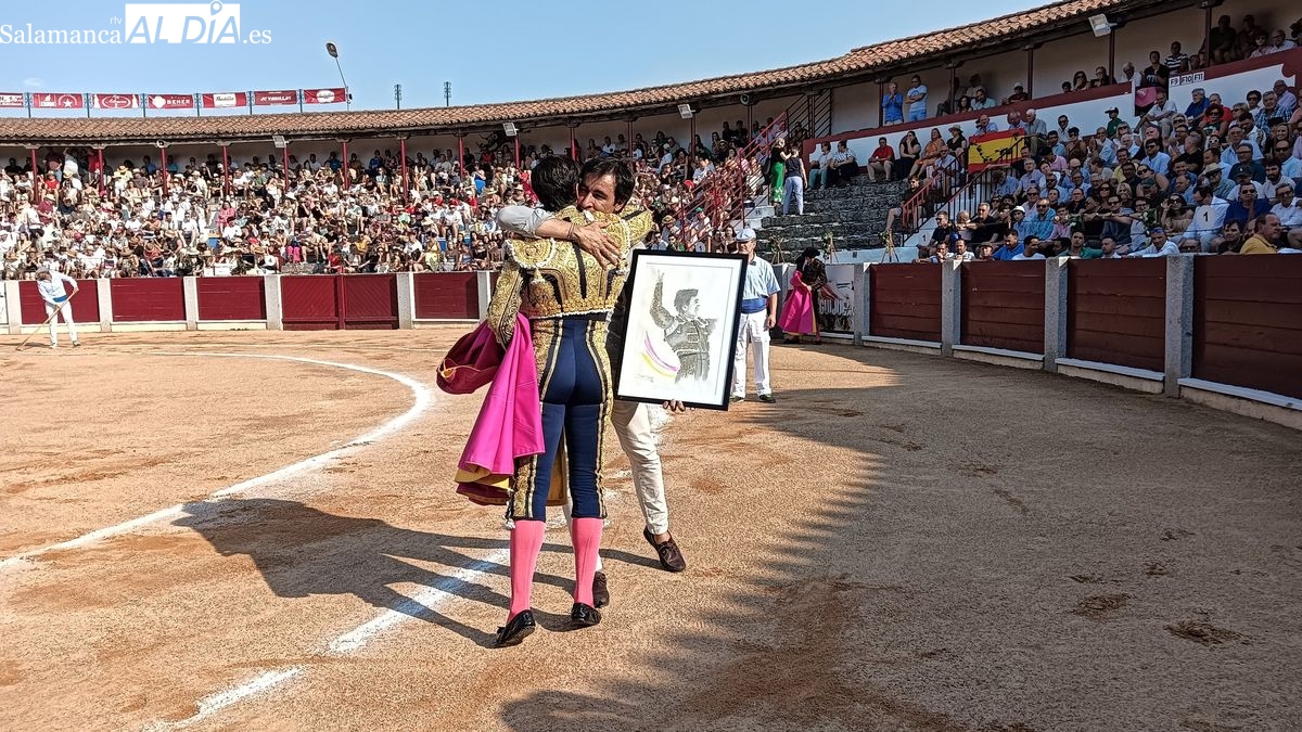 Frente al sexto, de Carmen Lorenzo, se explayó El Capea en el toreo a la verónica, componiendo muy bien la figura, con el mentón hundido en el pecho y toreando muy reunido. El brindis más esperado de la tarde, de hijo a padre, llegó en el ultimo toro. Emotivo momento entre El Niño de la Capea y El Capea.