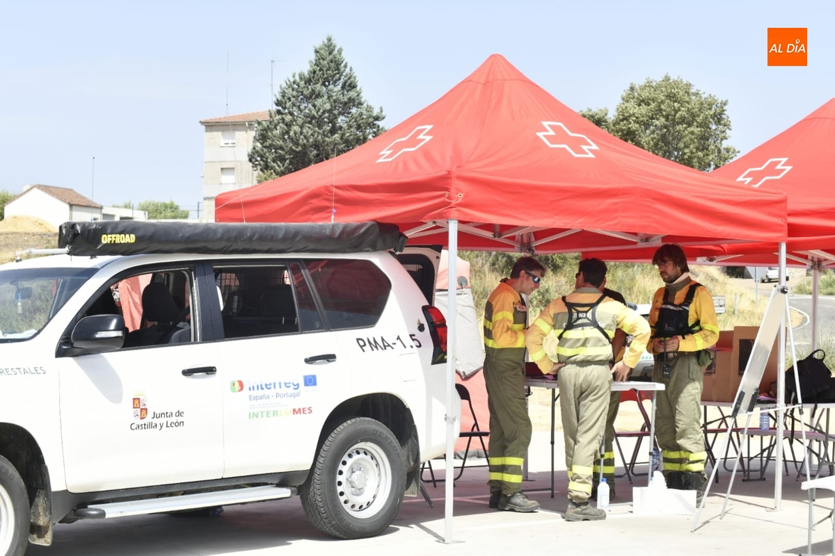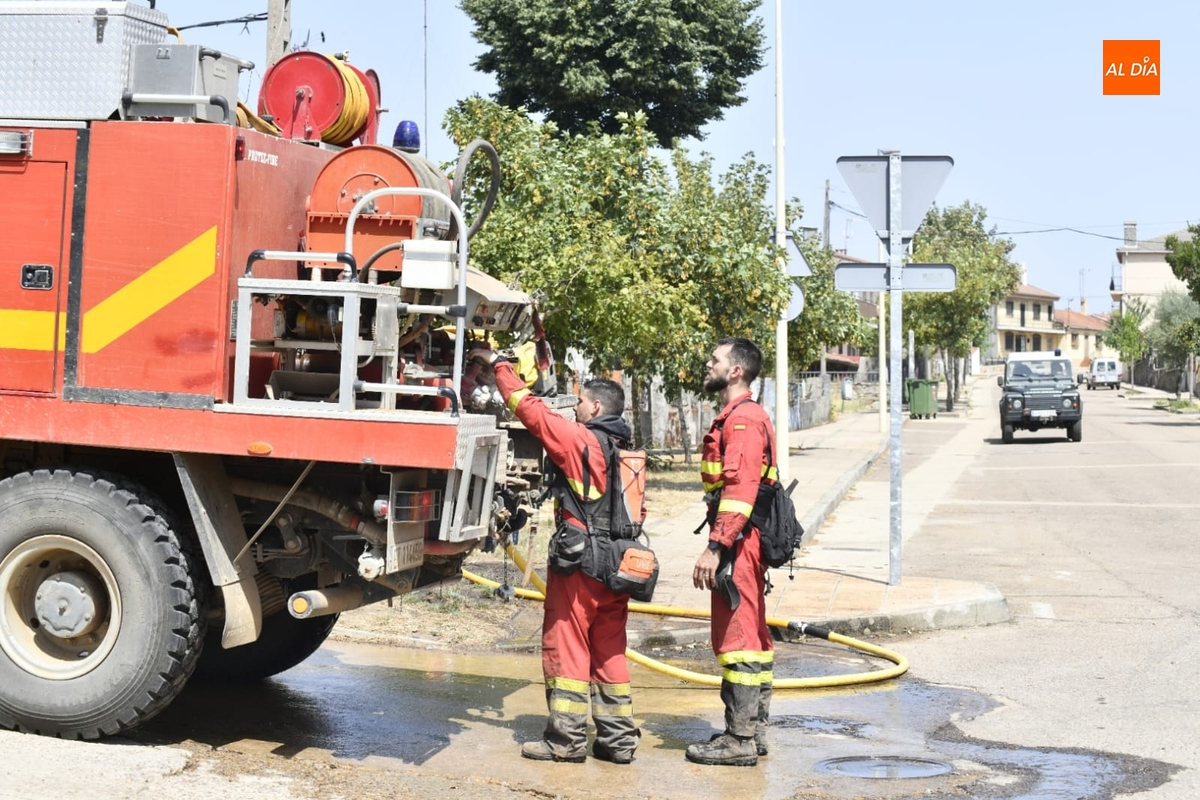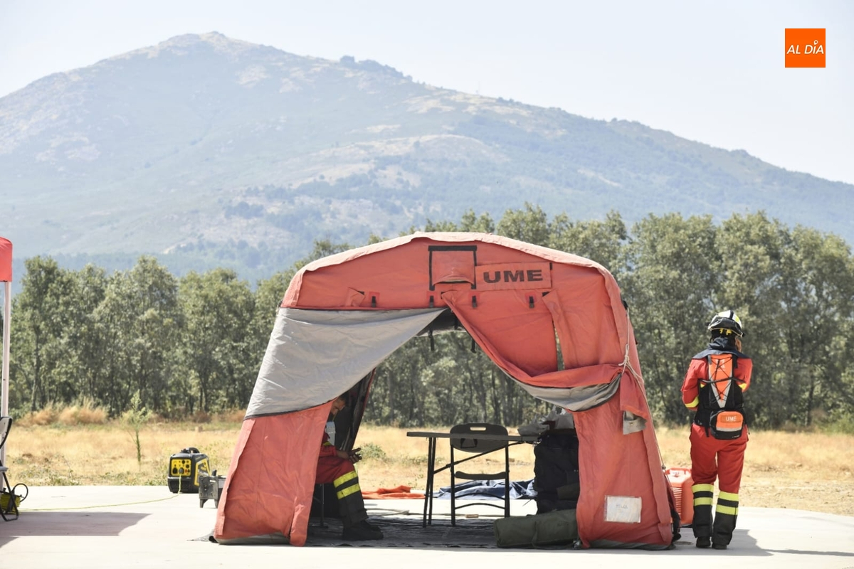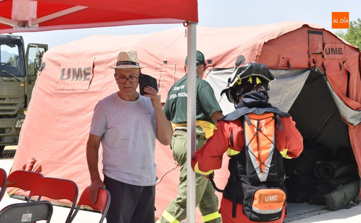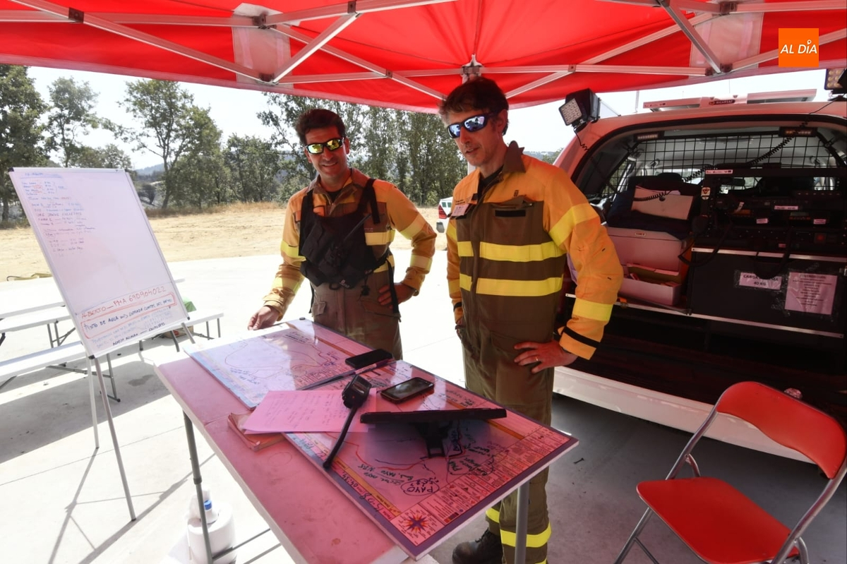 Al estar vacía la localidad, el puesto de mando del incendio se ha situado en un extremo del núcleo urbano, contándose con efectivos de extinción tanto de la Junta de Castilla y León como de la Unidad Militar de Emergencias (UME), que entre sus tareas se está encargando de refrescar la zona para evitar que las llamas puedan afectar en cualquier caso al núcleo urbano.