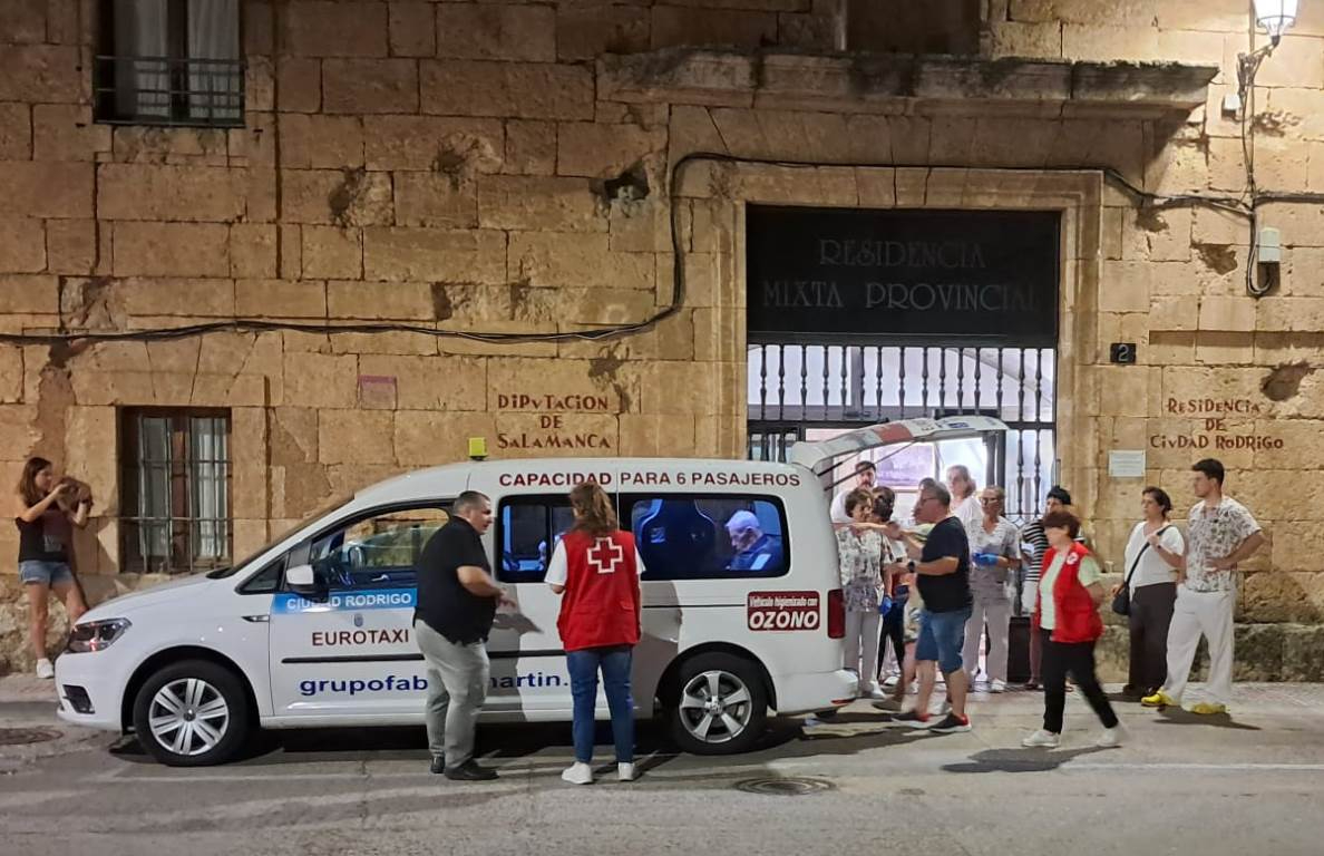 Este grupo de ancianos fue acercado en varios taxis para personas con movilidad reducida hasta la Residencia Mixta Provincial, donde fueron recibidos por profesionales del centro mirobrigense y por voluntarios de Cruz Roja.