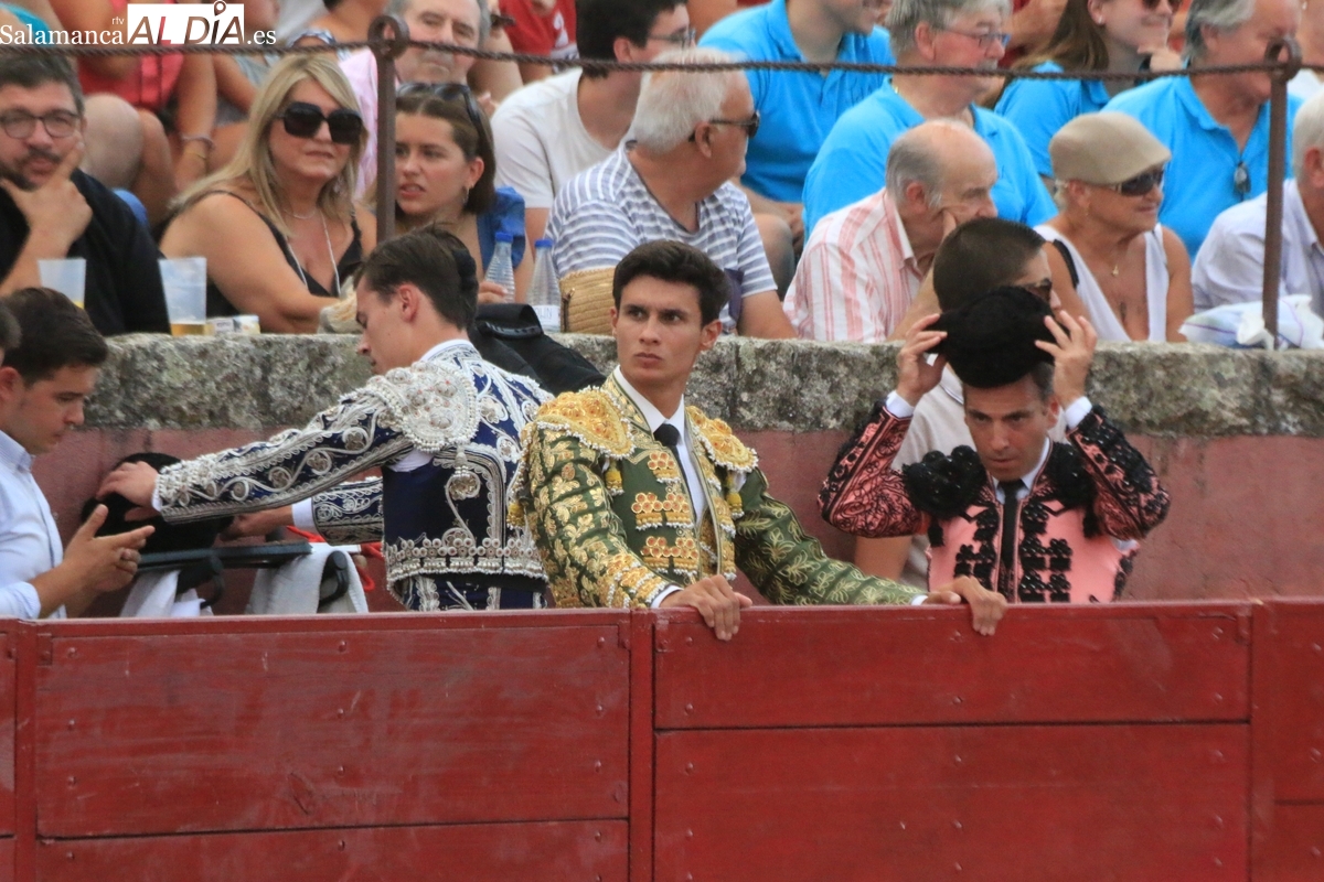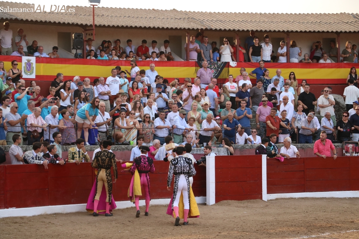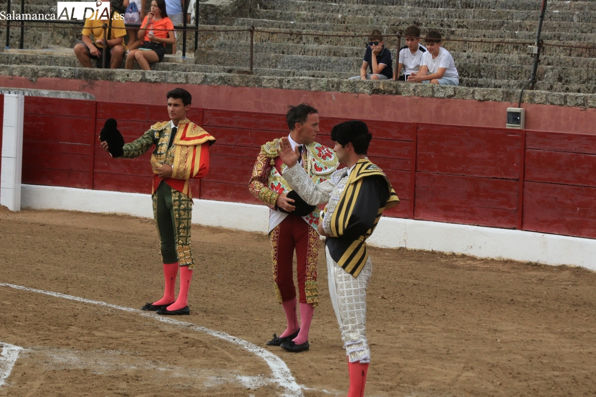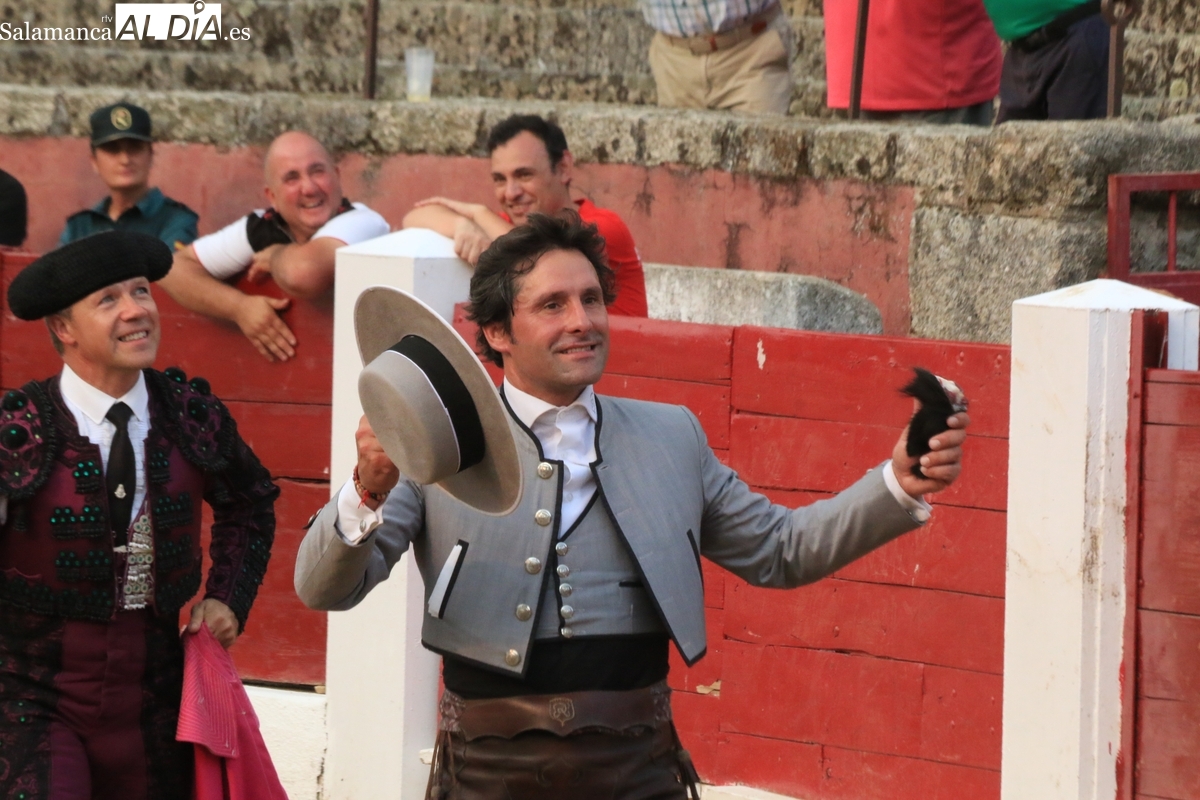 El rejoneador y los dos matadores salmantinos salen a hombros tras cortar dos orejas cada uno a sus oponentes, uno de vuelta al ruedo y tres aplaudidos en el arrastre