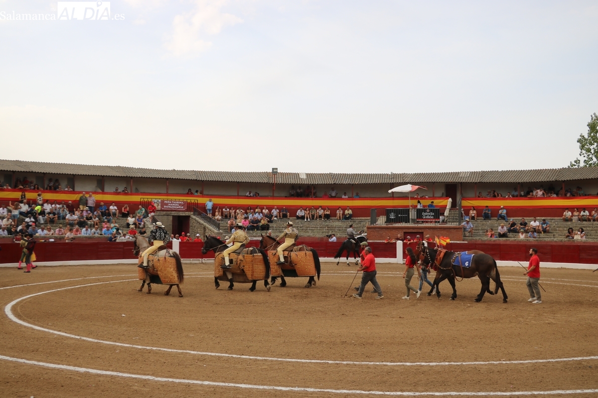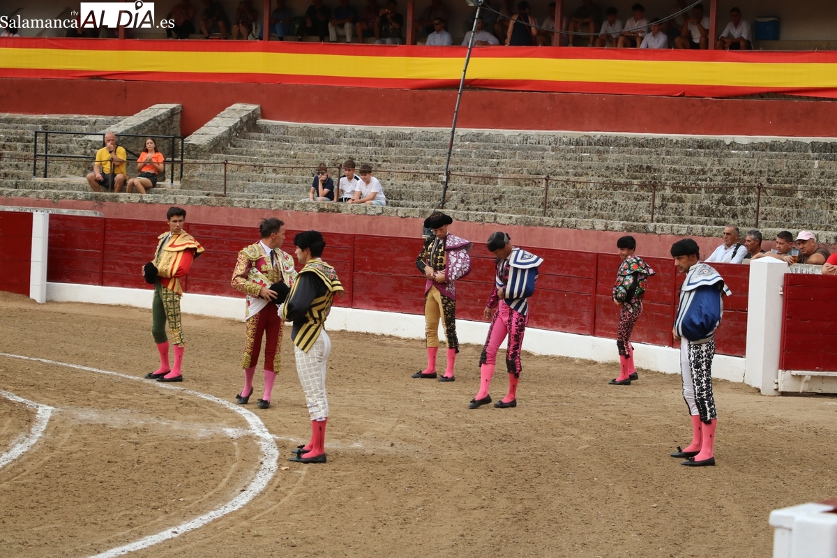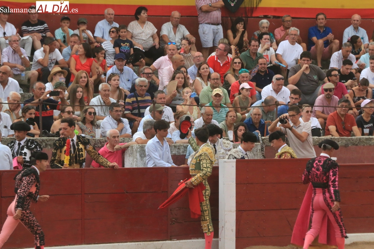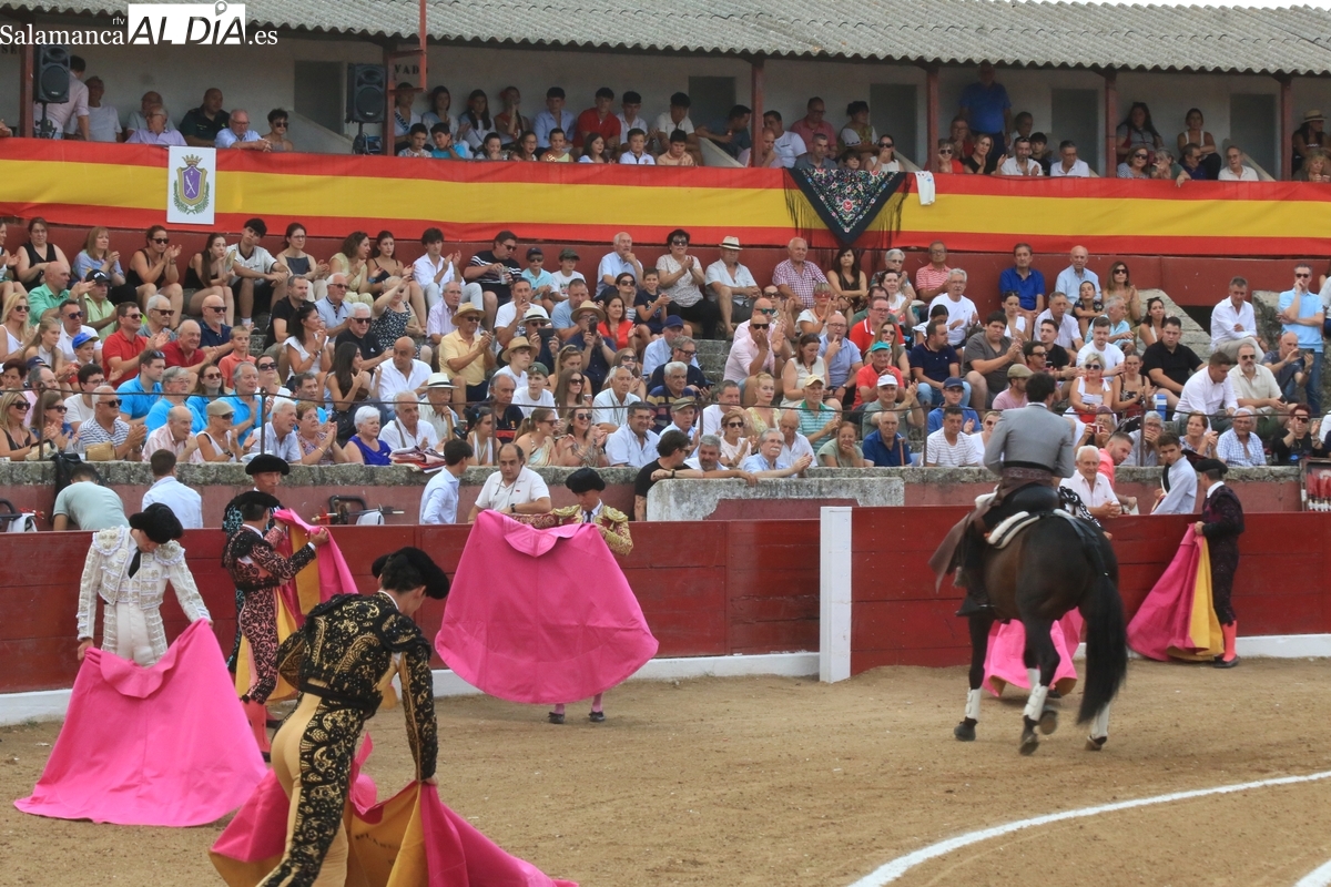 El rejoneador y los dos matadores salmantinos salen a hombros tras cortar dos orejas cada uno a sus oponentes, uno de vuelta al ruedo y tres aplaudidos en el arrastre