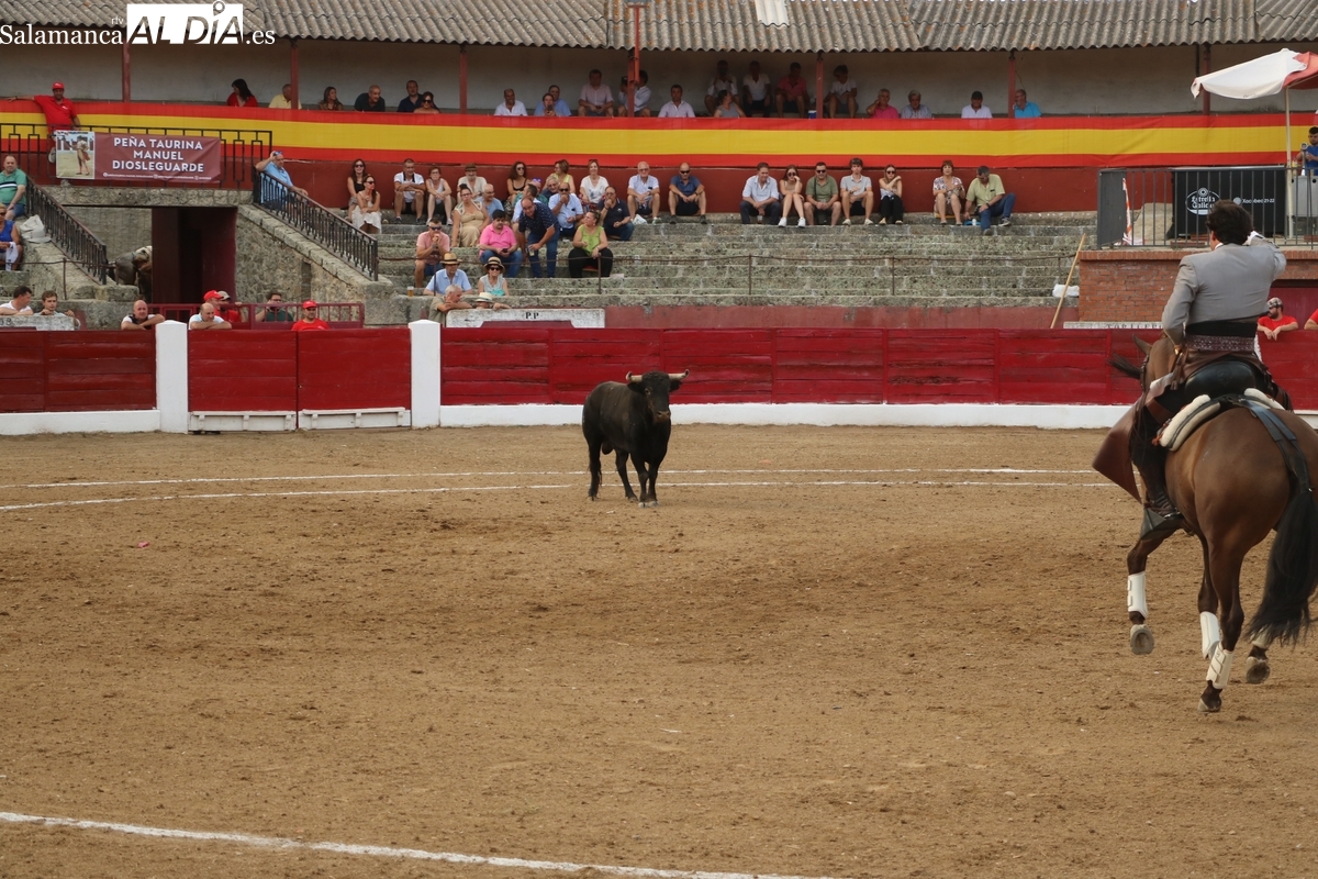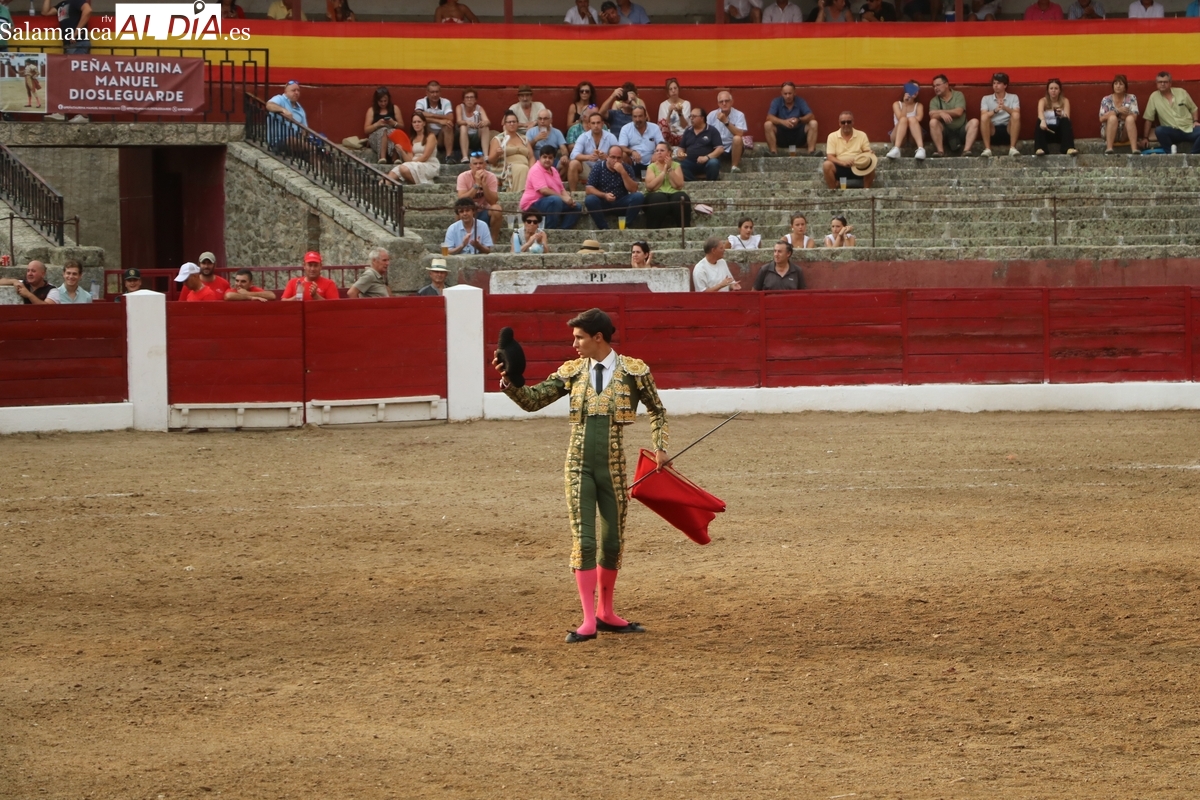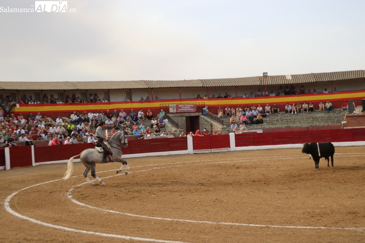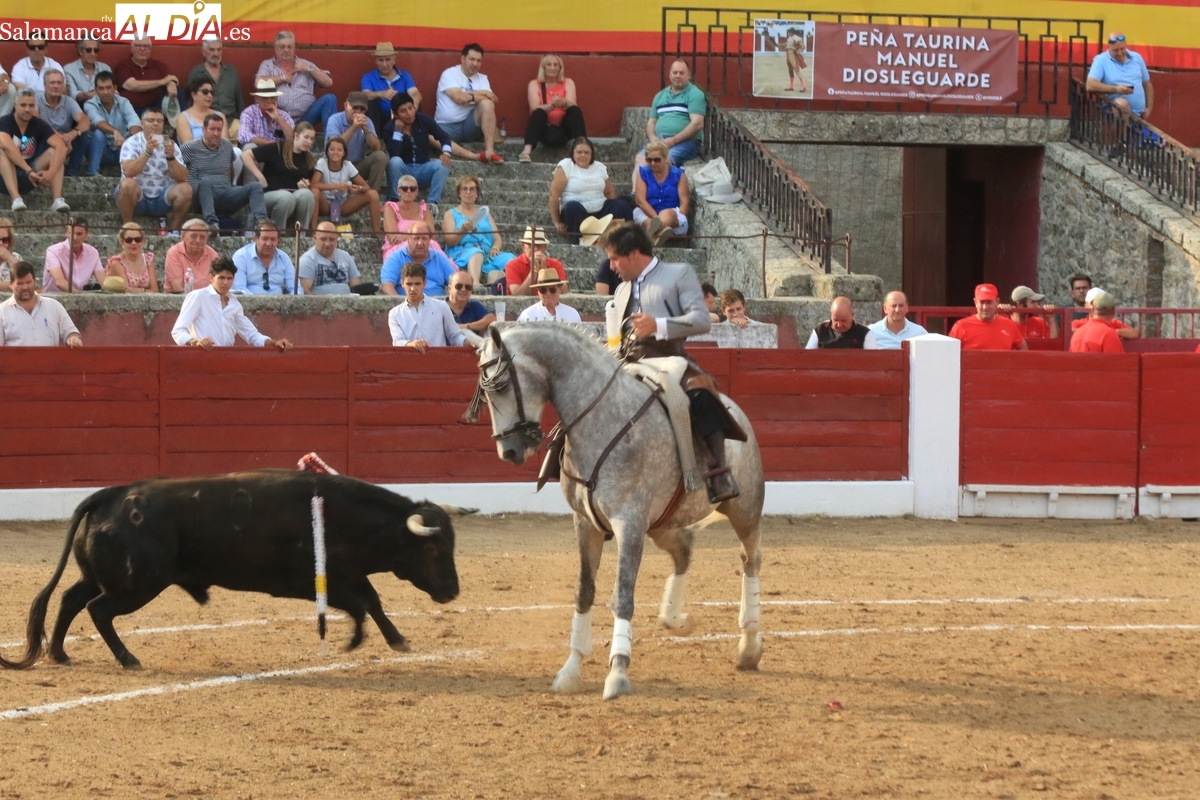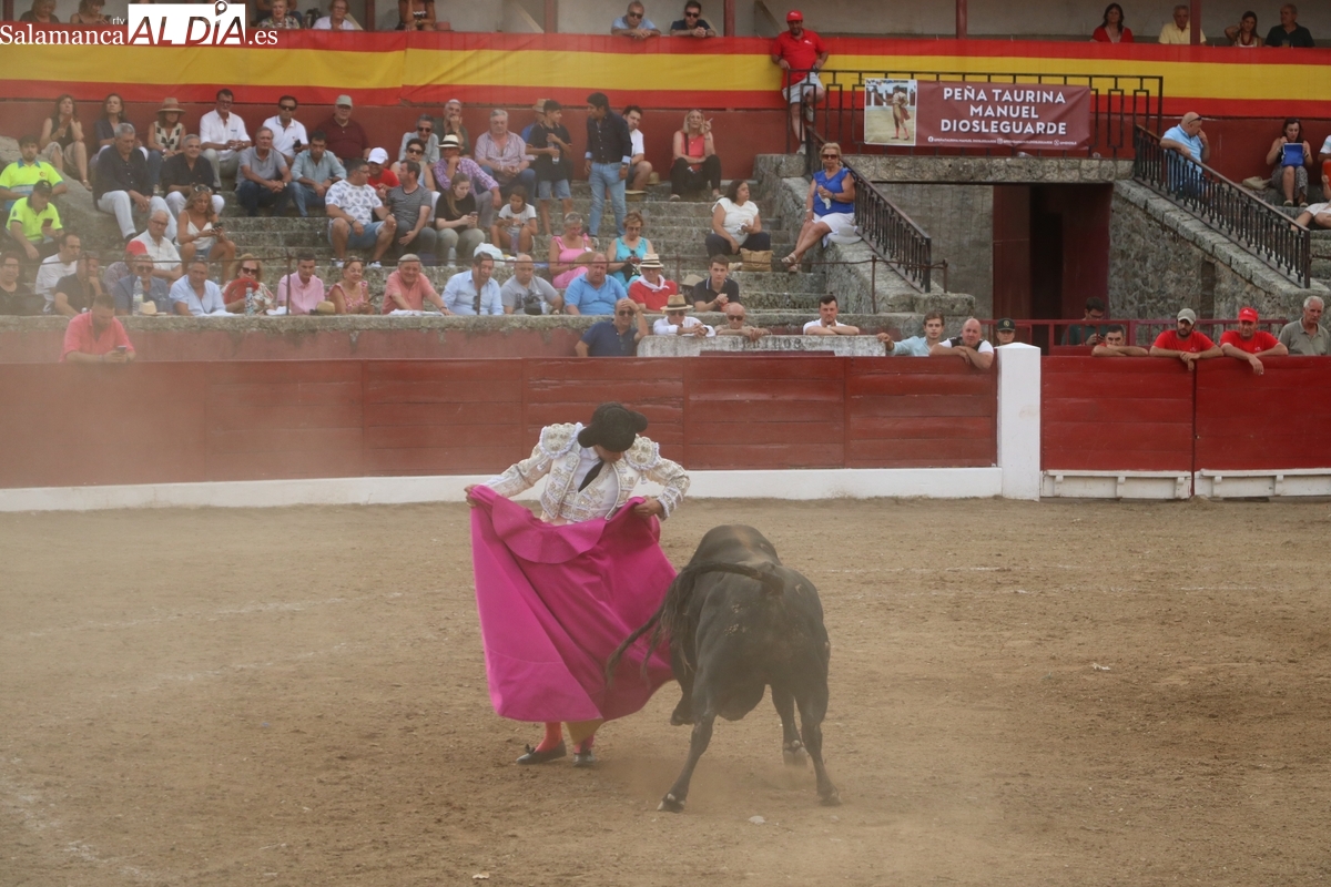 Diosleguarde pudo haber logrado un triunfo de renombre si llega a tener suerte con los aceros en el segundo de su lote y que cerraba plaza. En su primero, el más pequeño del encierro, aunque todos en la línea de Orive, era el sobrero, que reemplazó al titular del festejo tras que se le observara tras el desenjaule un golpe en un ojo, así que se realizó el cambió sin que saliera al ruedo. Lo recibió Diosleguarde con dos largas cambiadas, demostrando que venía a Vitigudino a reivindicarse como matador de toros. Y lo logró. También muy bien la cuadrilla del de Diosleguarde, especialmente ‘Flores’, siempre muy pendiente en la lidia. Gran faena de Diosleguarde a un toro que lo enganchó de lejos y lo fue sometiendo a la muleta con temple y muy torero. Tras una estocada ligeramente tendida, cortó dos orejas y tuvo fuerte petición de rabo, el cual el presidente no concedió y le valió una bronca del respetable. Vuelta al ruedo para el gran torito de Orive. En su segundo, y que cerraba plaza, Diosleguarde tiró de ‘arrimón’ ante un toro nada claro. Se metió entre pitones y le arrancó pases inverosímiles ante el murmullo del público por la emoción de la faena. Lástima que la suerte no le acompañara en los aceros.