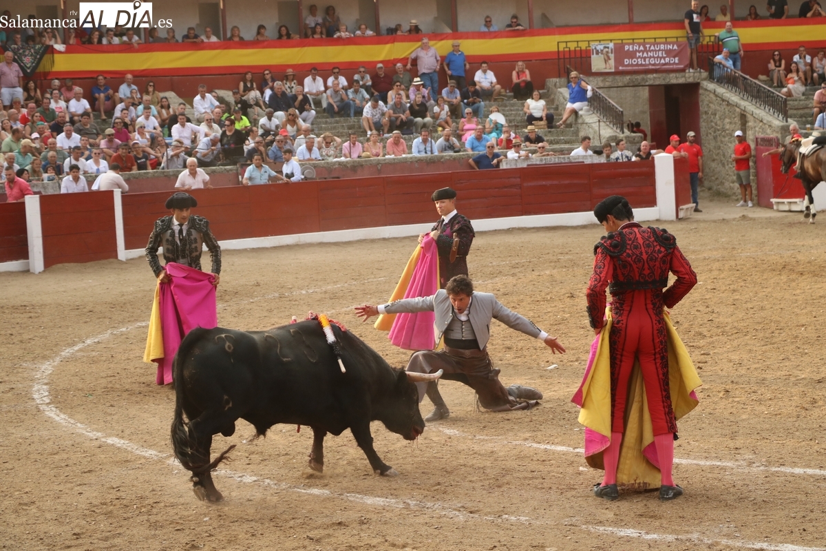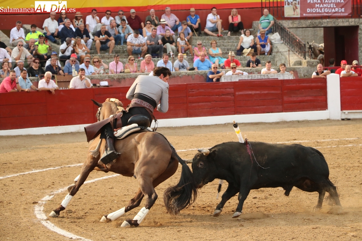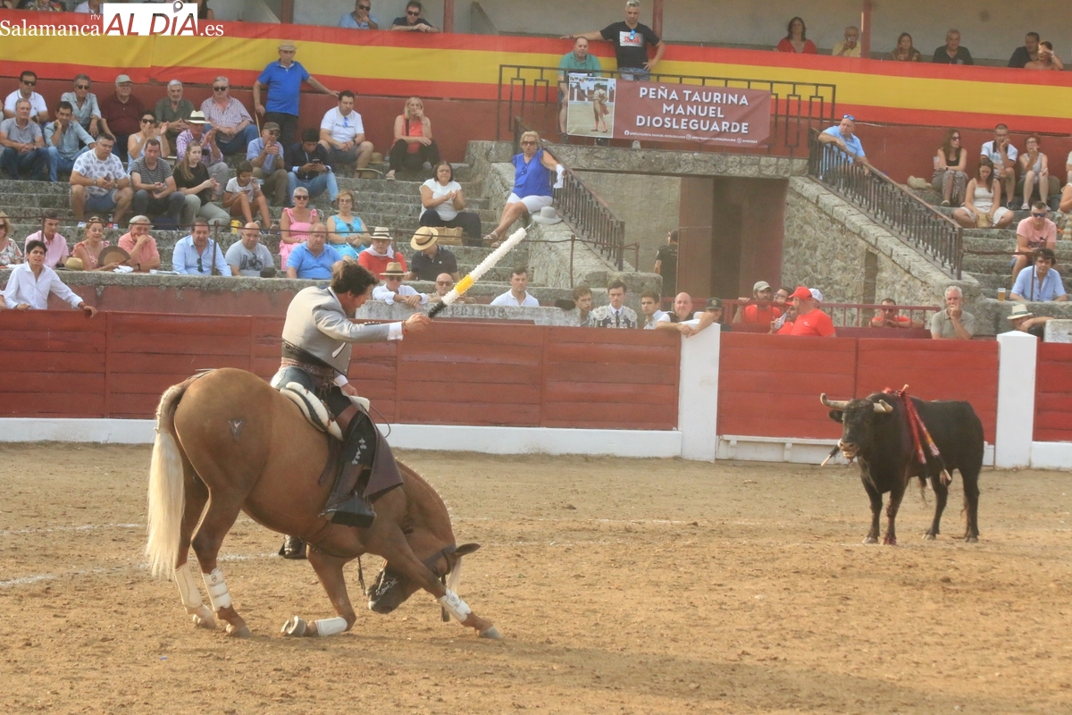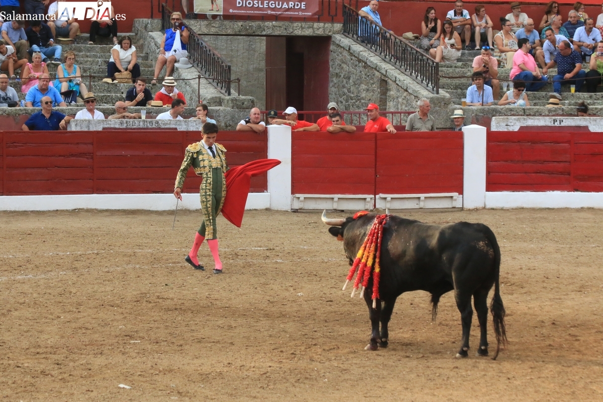 Diosleguarde pudo haber logrado un triunfo de renombre si llega a tener suerte con los aceros en el segundo de su lote y que cerraba plaza. En su primero, el más pequeño del encierro, aunque todos en la línea de Orive, era el sobrero, que reemplazó al titular del festejo tras que se le observara tras el desenjaule un golpe en un ojo, así que se realizó el cambió sin que saliera al ruedo. Lo recibió Diosleguarde con dos largas cambiadas, demostrando que venía a Vitigudino a reivindicarse como matador de toros. Y lo logró. También muy bien la cuadrilla del de Diosleguarde, especialmente ‘Flores’, siempre muy pendiente en la lidia. Gran faena de Diosleguarde a un toro que lo enganchó de lejos y lo fue sometiendo a la muleta con temple y muy torero. Tras una estocada ligeramente tendida, cortó dos orejas y tuvo fuerte petición de rabo, el cual el presidente no concedió y le valió una bronca del respetable. Vuelta al ruedo para el gran torito de Orive. En su segundo, y que cerraba plaza, Diosleguarde tiró de ‘arrimón’ ante un toro nada claro. Se metió entre pitones y le arrancó pases inverosímiles ante el murmullo del público por la emoción de la faena. Lástima que la suerte no le acompañara en los aceros.