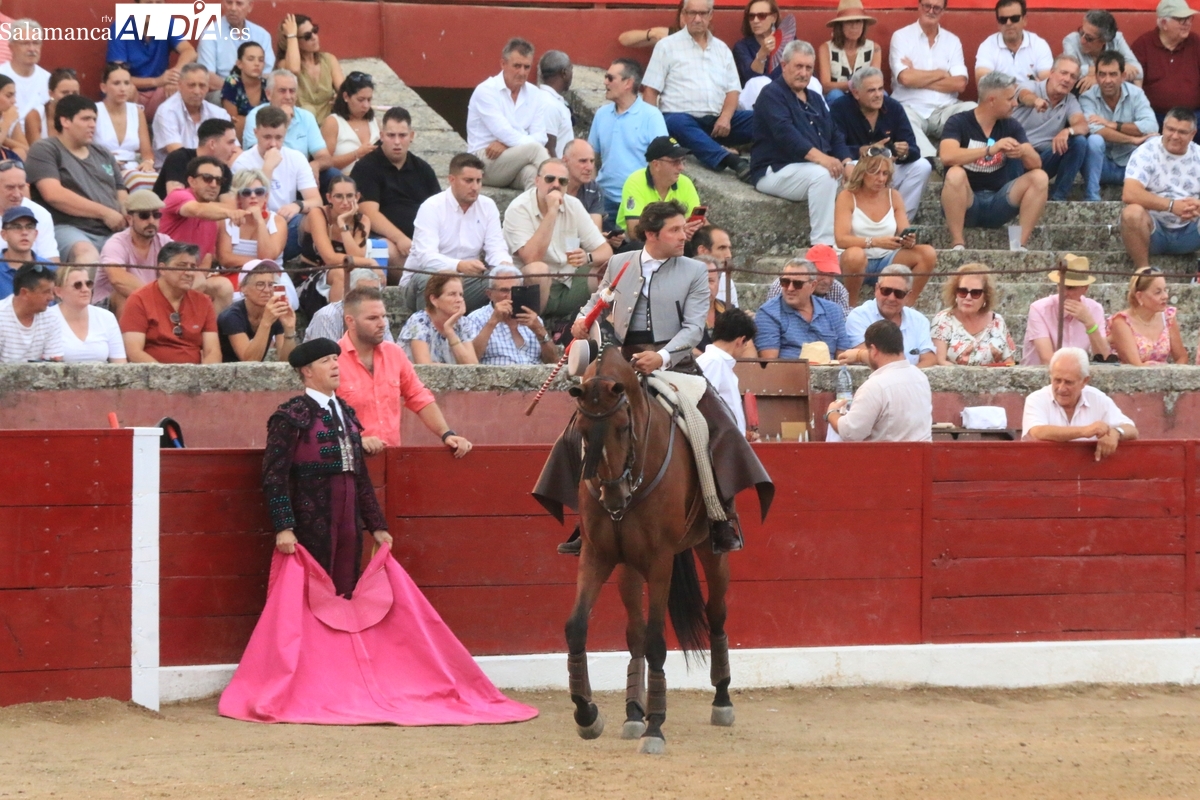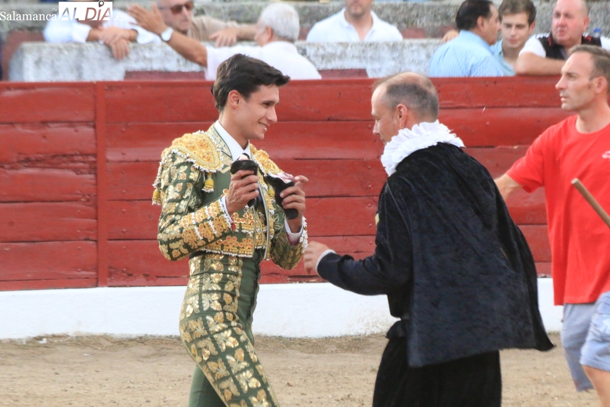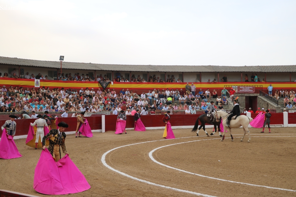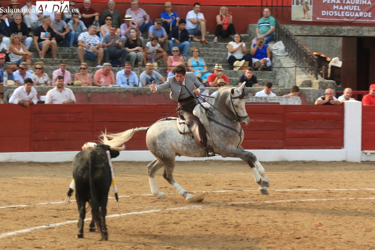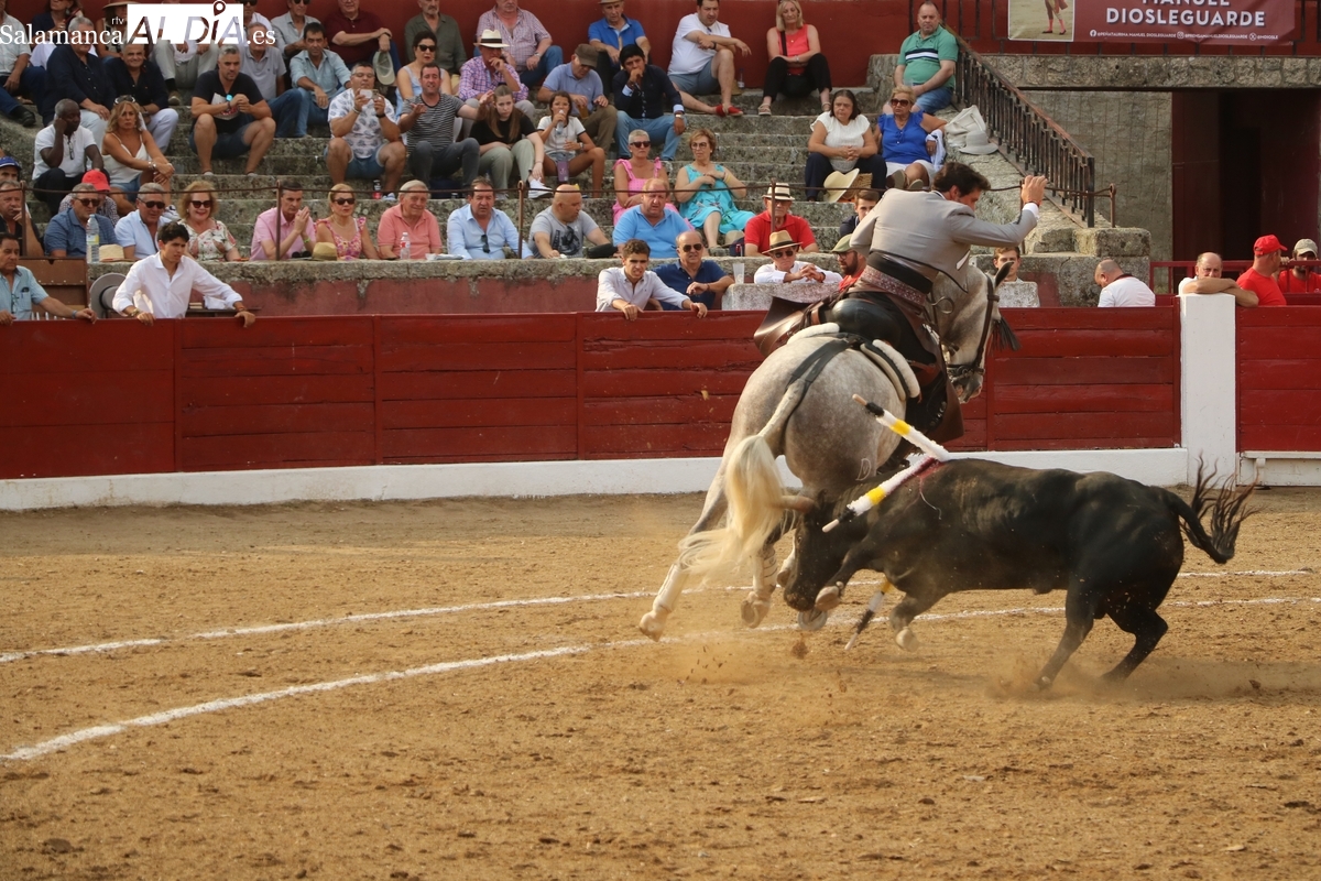 Diosleguarde pudo haber logrado un triunfo de renombre si llega a tener suerte con los aceros en el segundo de su lote y que cerraba plaza. En su primero, el más pequeño del encierro, aunque todos en la línea de Orive, era el sobrero, que reemplazó al titular del festejo tras que se le observara tras el desenjaule un golpe en un ojo, así que se realizó el cambió sin que saliera al ruedo. Lo recibió Diosleguarde con dos largas cambiadas, demostrando que venía a Vitigudino a reivindicarse como matador de toros. Y lo logró. También muy bien la cuadrilla del de Diosleguarde, especialmente ‘Flores’, siempre muy pendiente en la lidia. Gran faena de Diosleguarde a un toro que lo enganchó de lejos y lo fue sometiendo a la muleta con temple y muy torero. Tras una estocada ligeramente tendida, cortó dos orejas y tuvo fuerte petición de rabo, el cual el presidente no concedió y le valió una bronca del respetable. Vuelta al ruedo para el gran torito de Orive. En su segundo, y que cerraba plaza, Diosleguarde tiró de ‘arrimón’ ante un toro nada claro. Se metió entre pitones y le arrancó pases inverosímiles ante el murmullo del público por la emoción de la faena. Lástima que la suerte no le acompañara en los aceros.