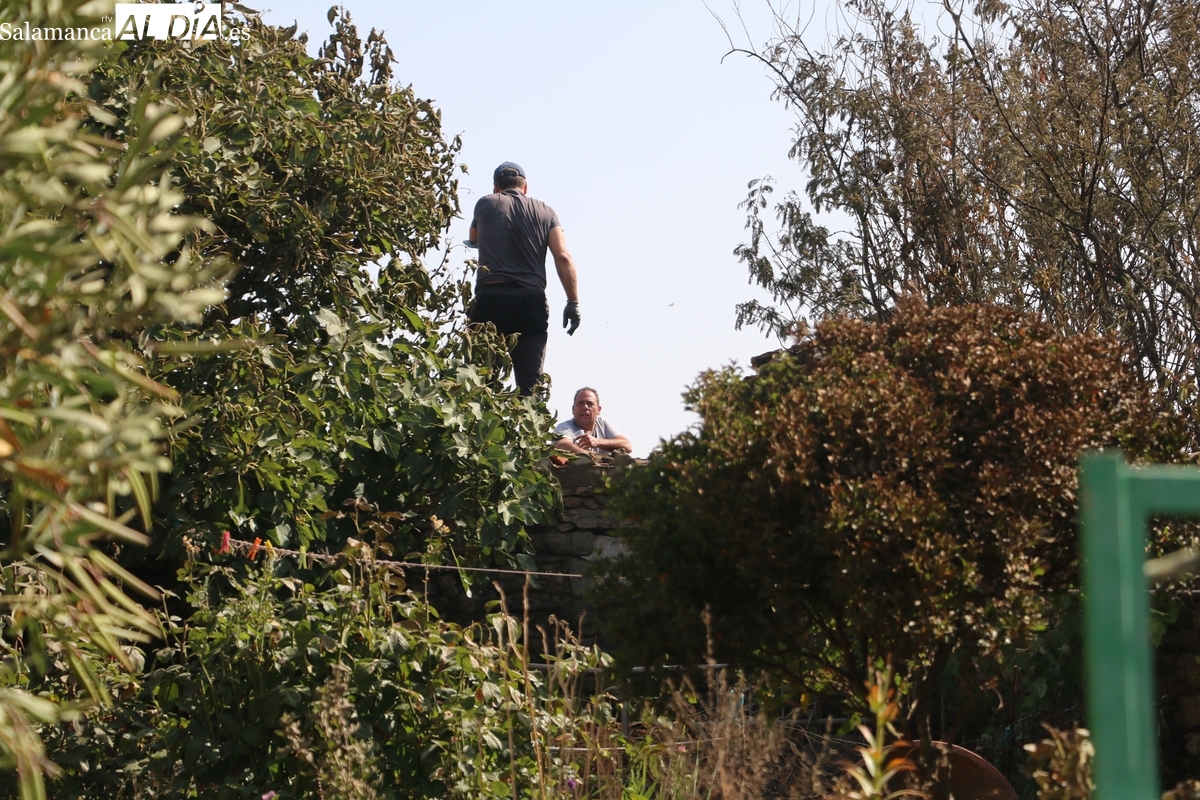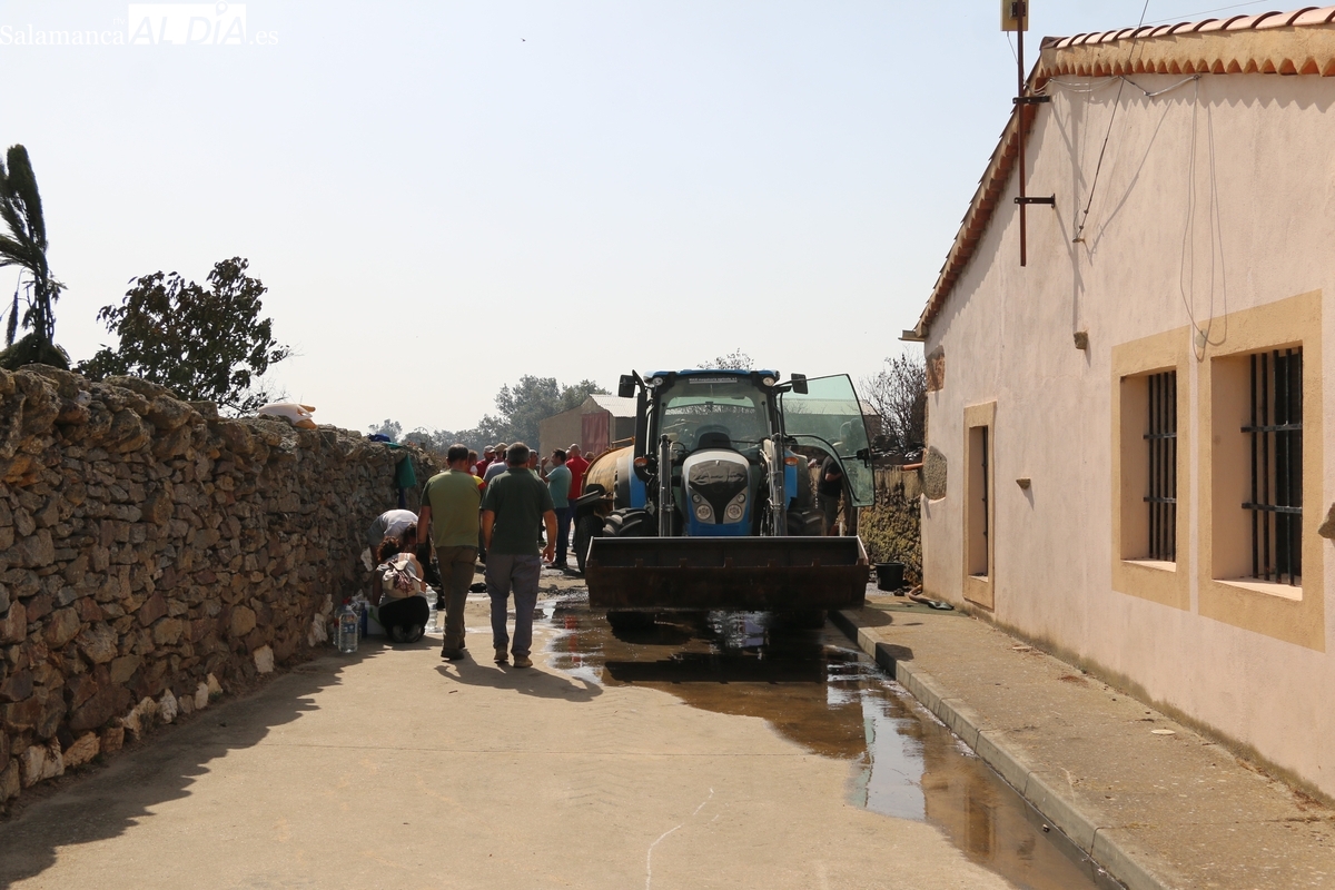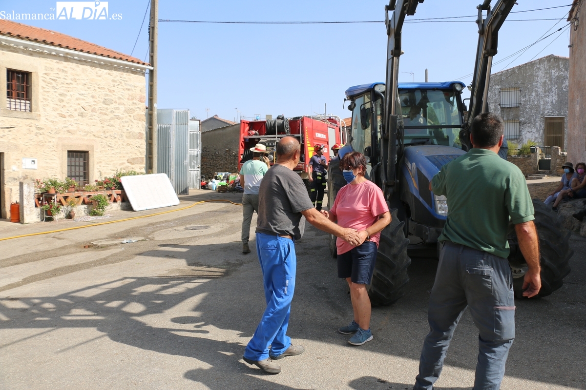 La cara más amenazadora del incendio se ha vivido en los núcleos urbanos. En Jejo de los Reyes, ya en la comarca de Ledesma, los vecinos hablan de "milagro" después de que las llamas devoraran varios locales abandonados a tan solo tres metros de las viviendas habitadas. Tras ser desalojados durante la noche, algunos confirmaron haberse quedado para defender sus propiedades.
