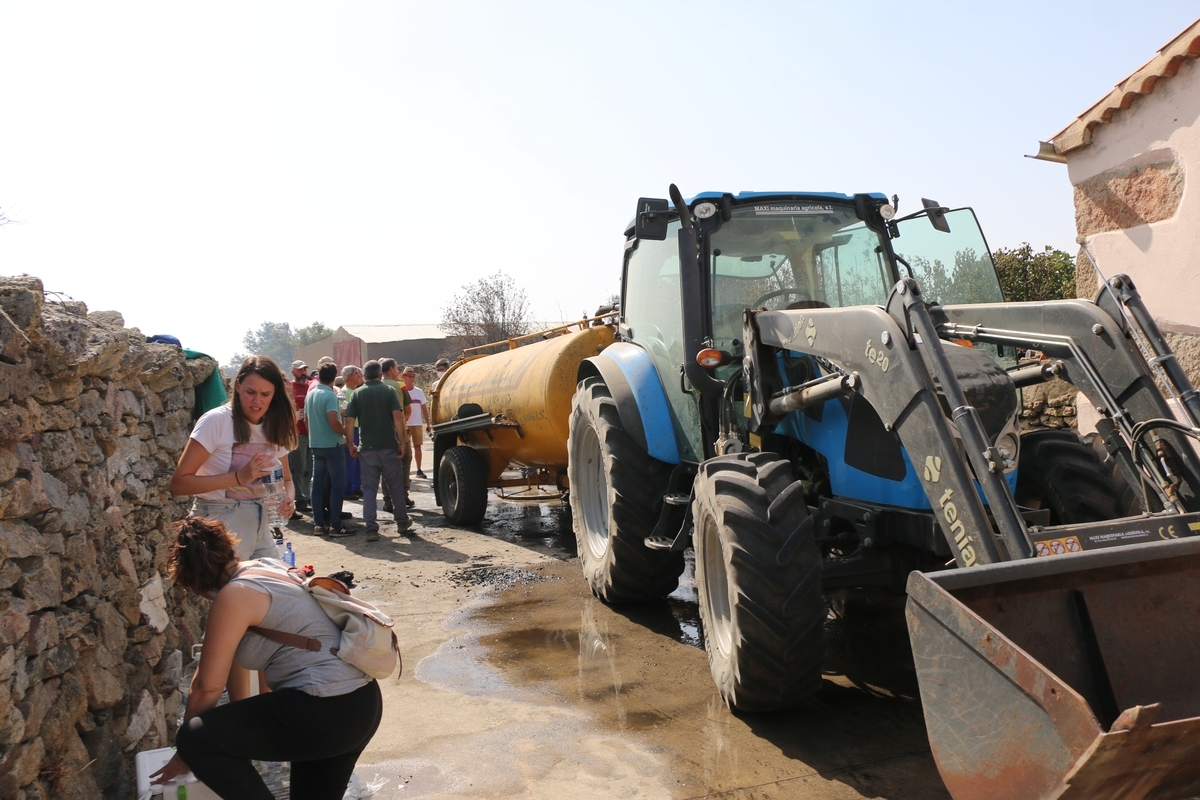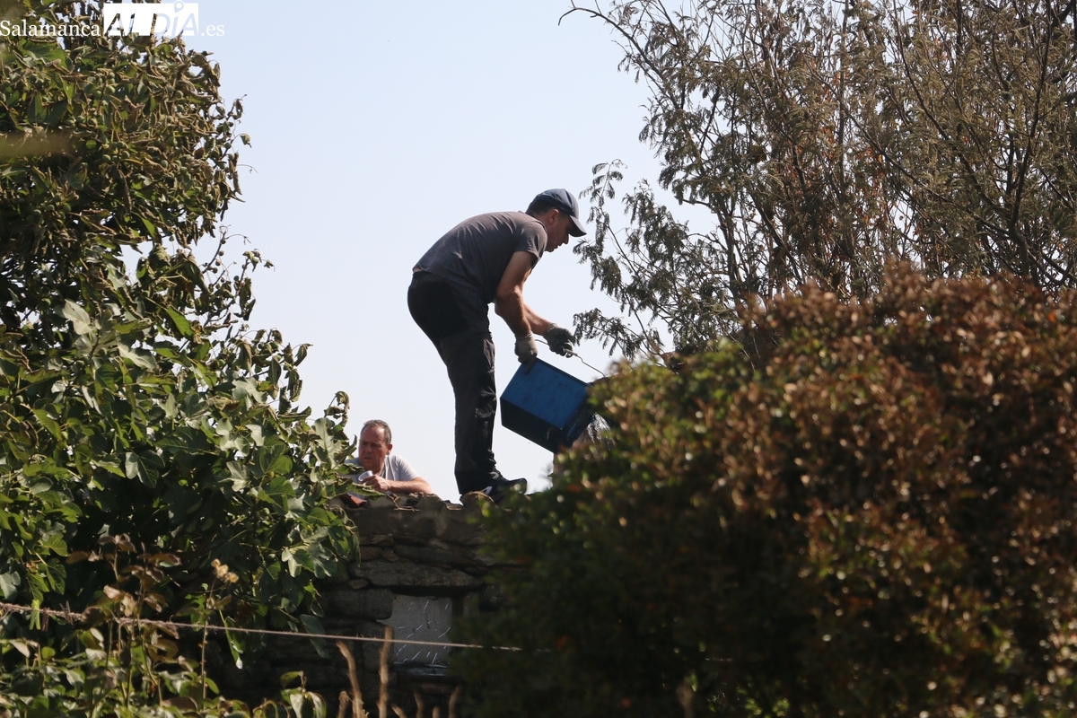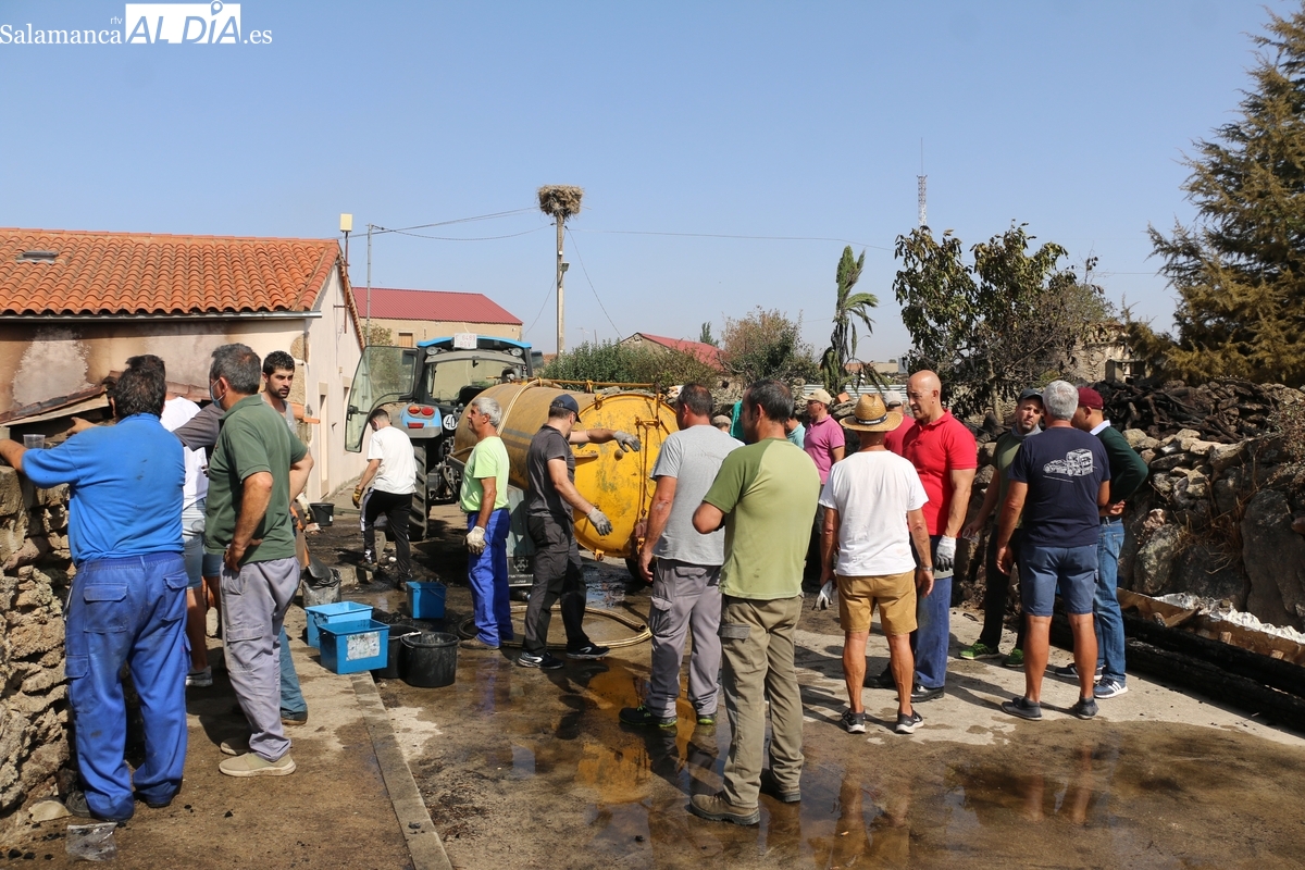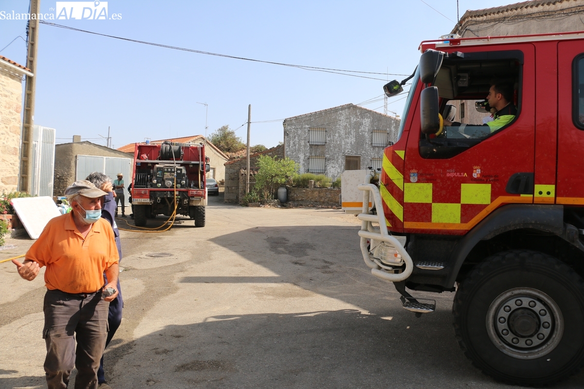 La cara más amenazadora del incendio se ha vivido en los núcleos urbanos. En Jejo de los Reyes, ya en la comarca de Ledesma, los vecinos hablan de "milagro" después de que las llamas devoraran varios locales abandonados a tan solo tres metros de las viviendas habitadas. Tras ser desalojados durante la noche, algunos confirmaron haberse quedado para defender sus propiedades.
